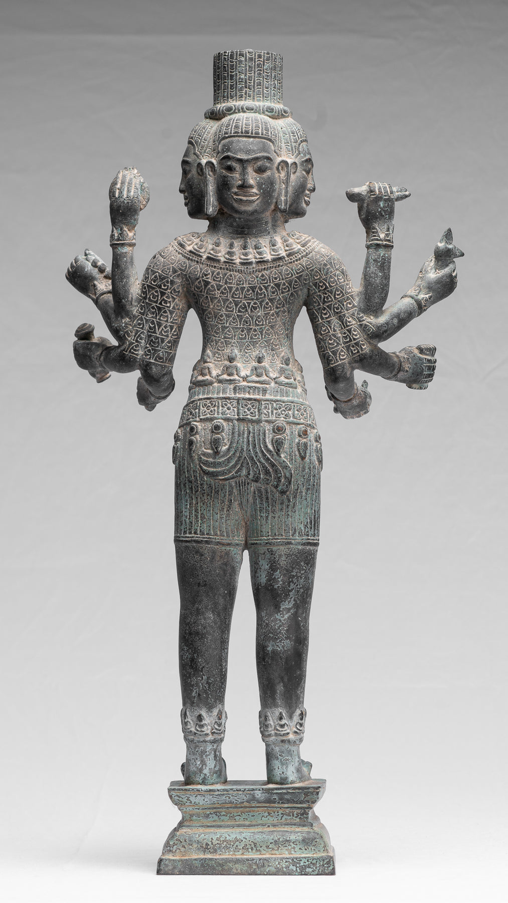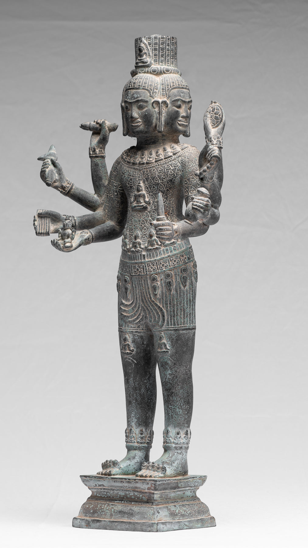 Antique Khmer Style Bronze Bayon Standing Lokeshvara Statue - 53cm/21"
