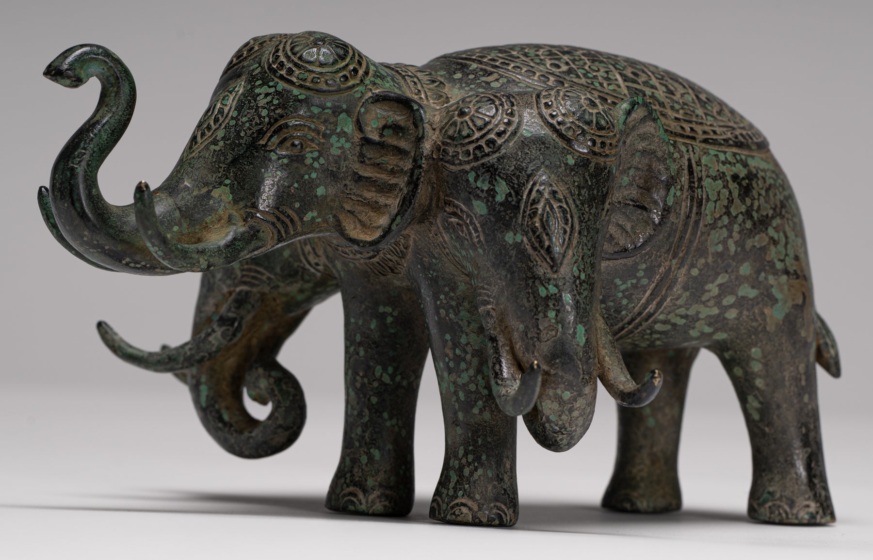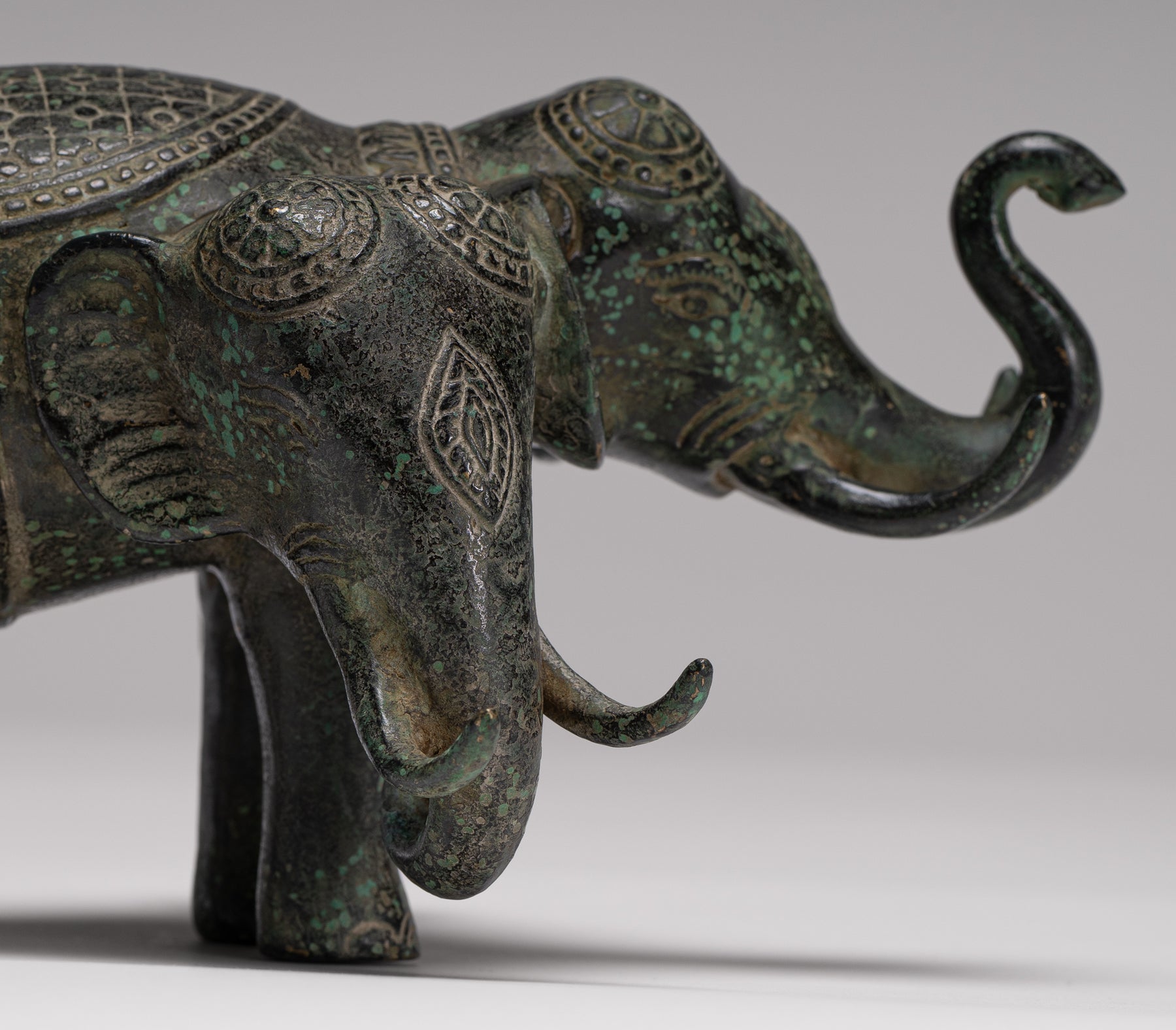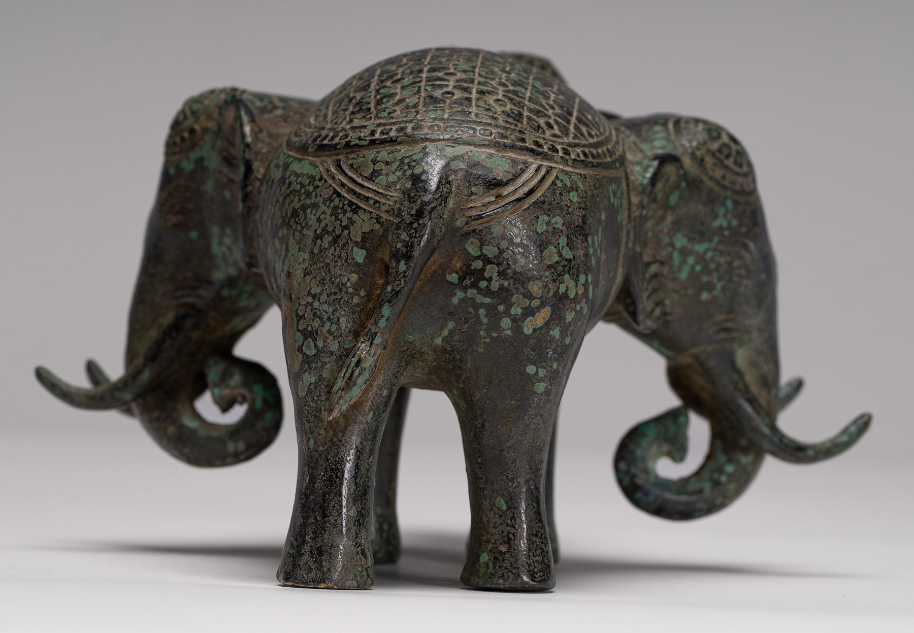• Antique Khmer Style Bronze Erawan Airavata or Elephant Statue - 11.5cm/5" Tall