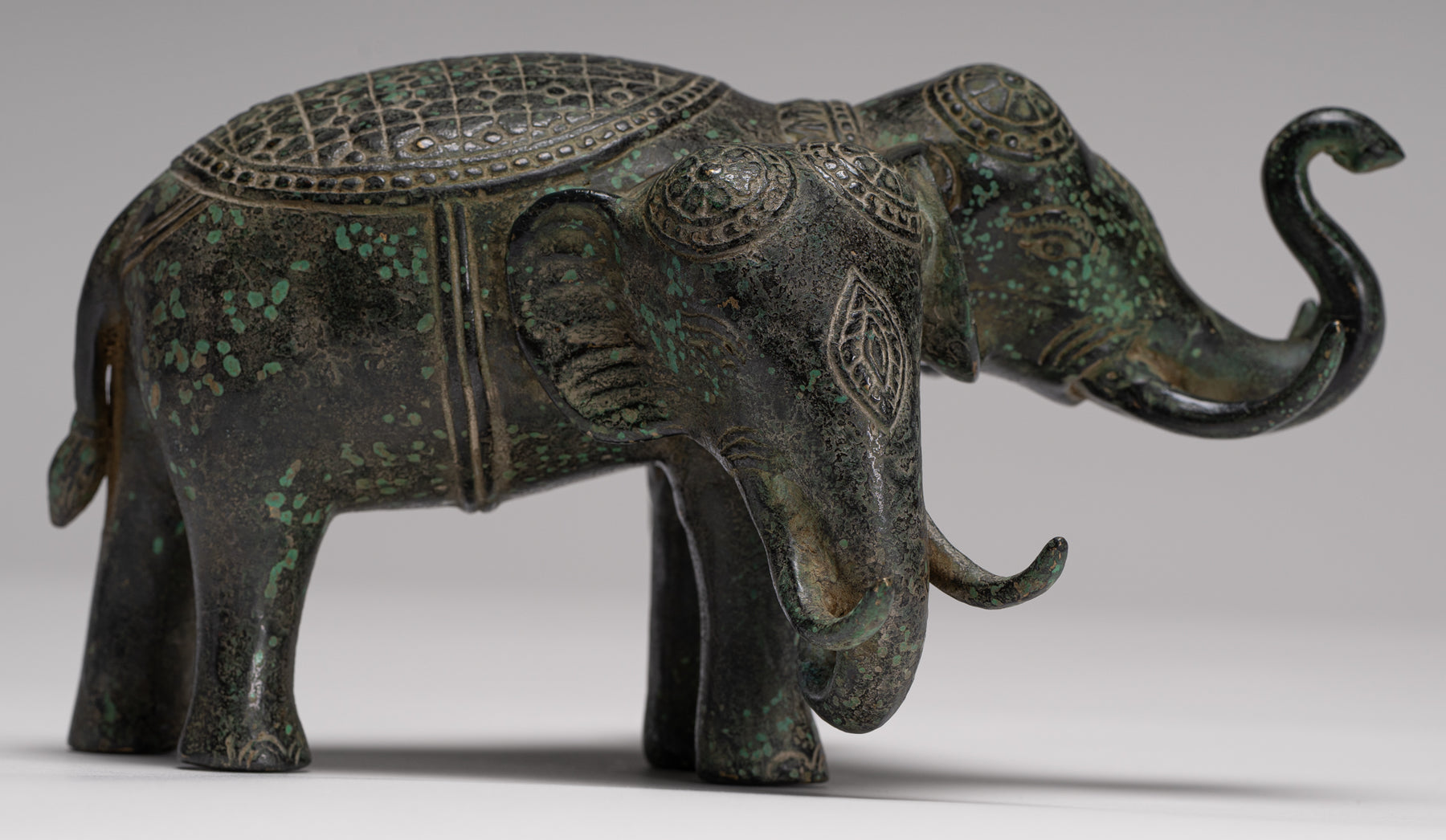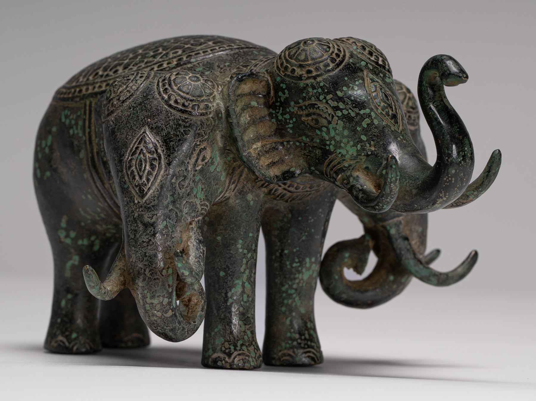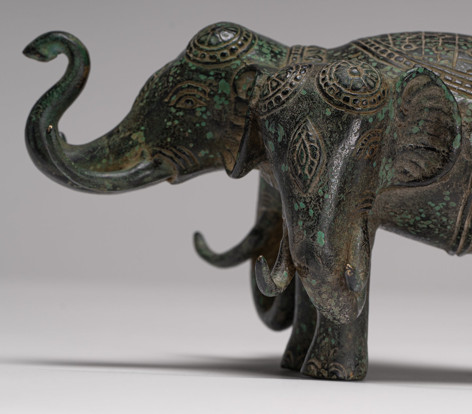 • Antique Khmer Style Bronze Erawan Airavata or Elephant Statue - 11.5cm/5" Tall