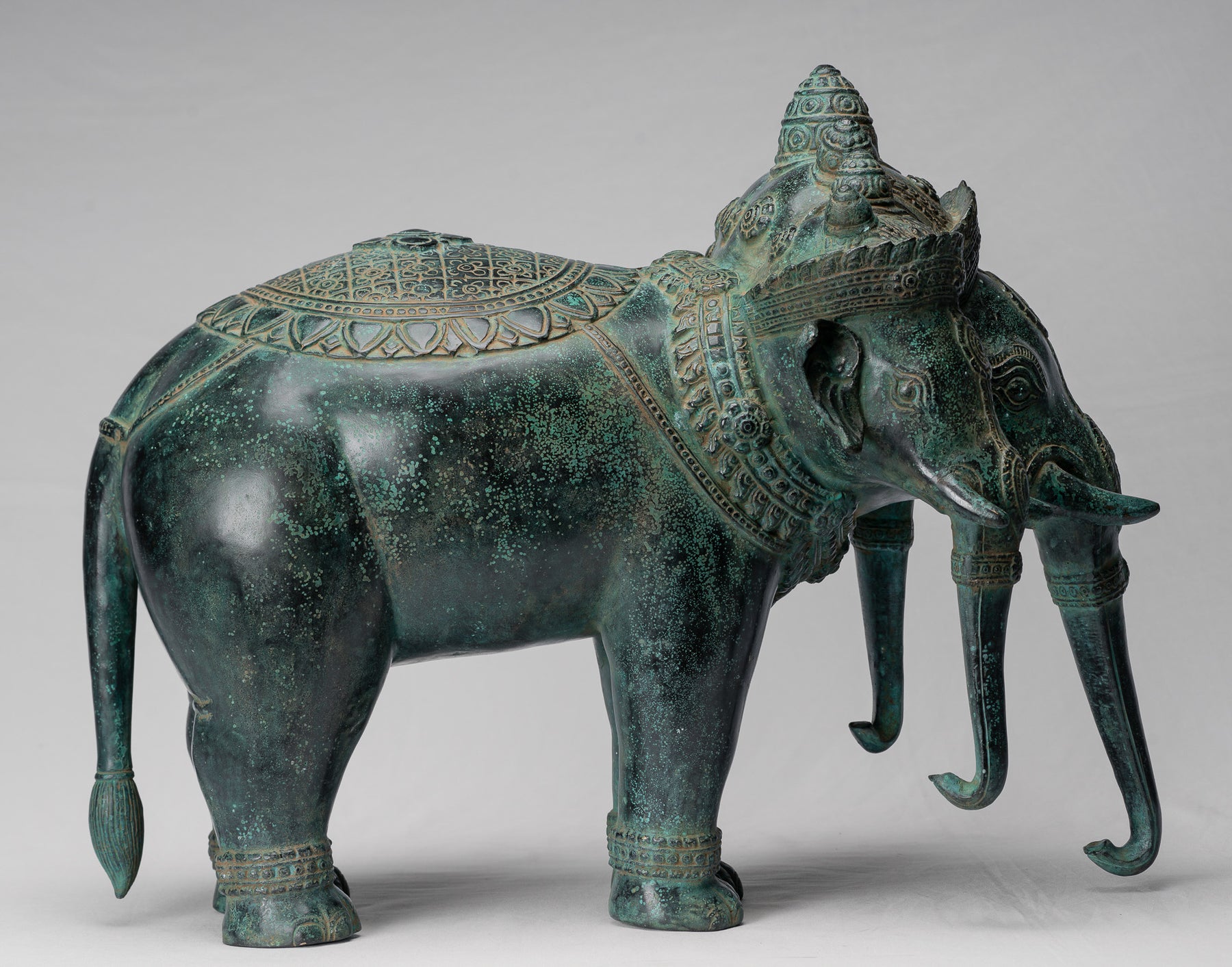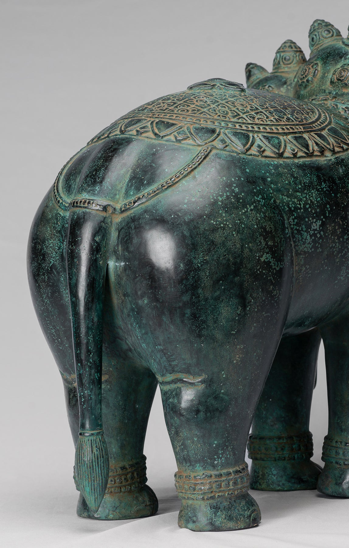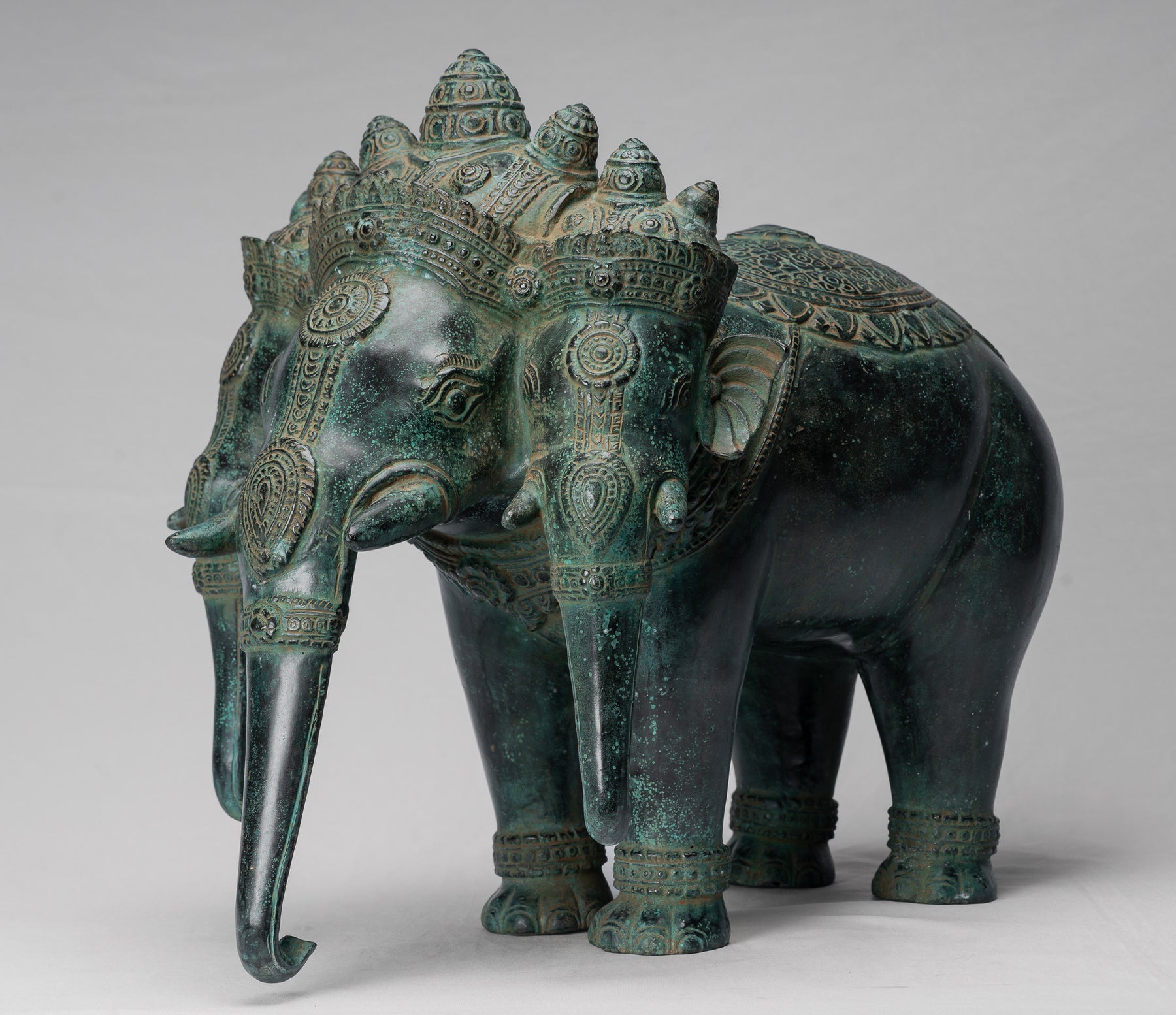 • Antique Khmer Style Bronze Erawan Airavata or Elephant Statue - 44cm/18" Tall