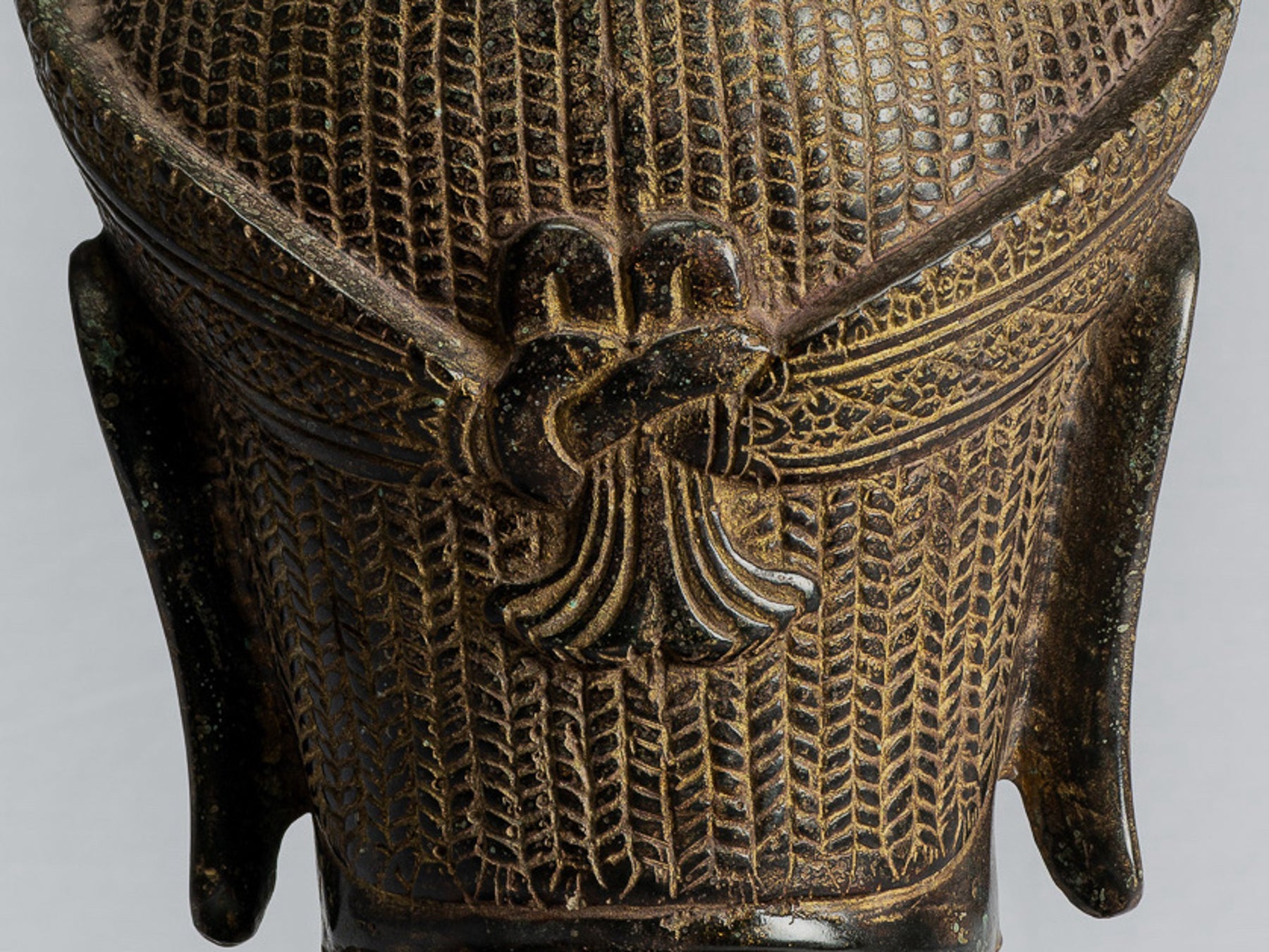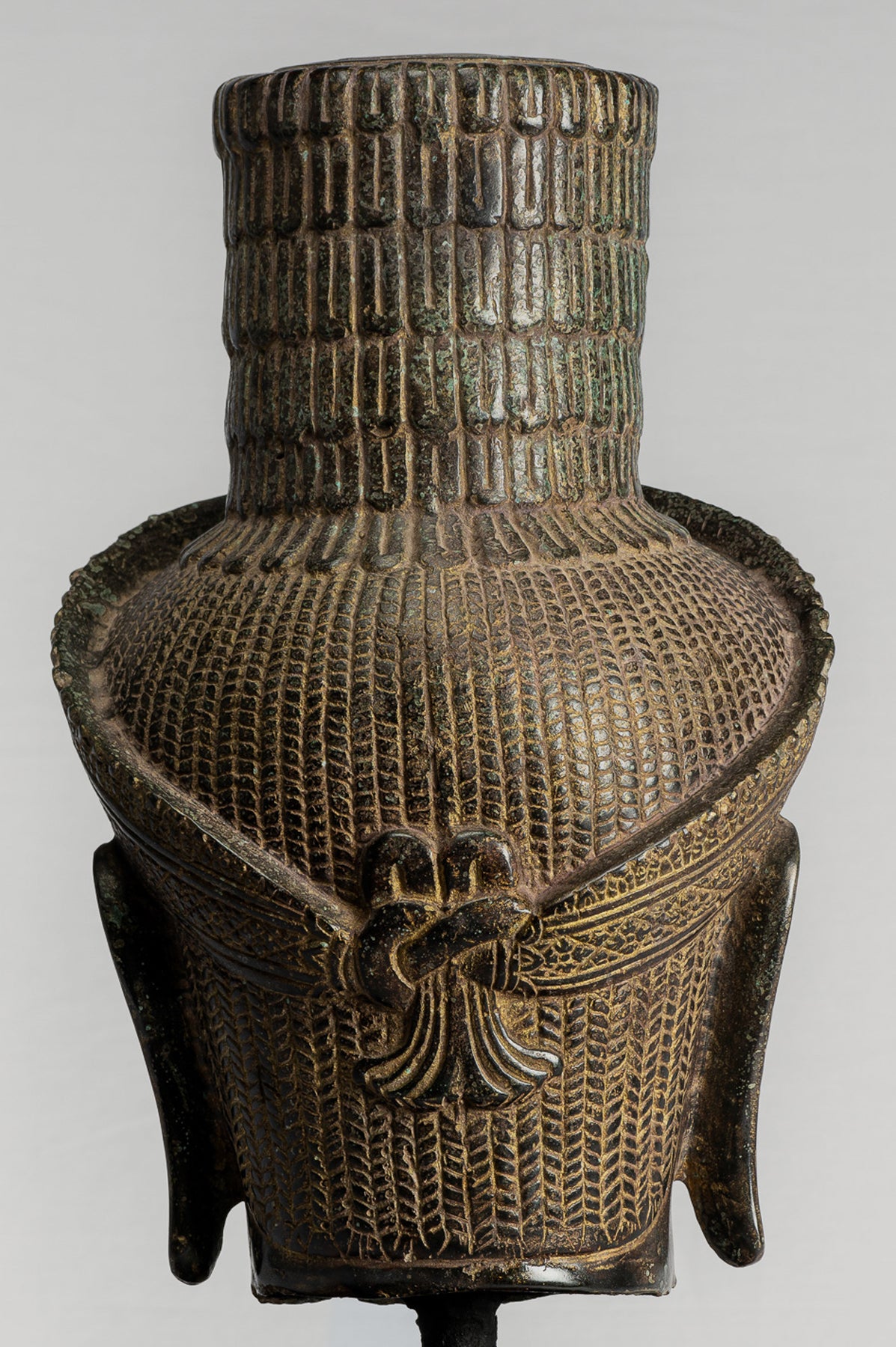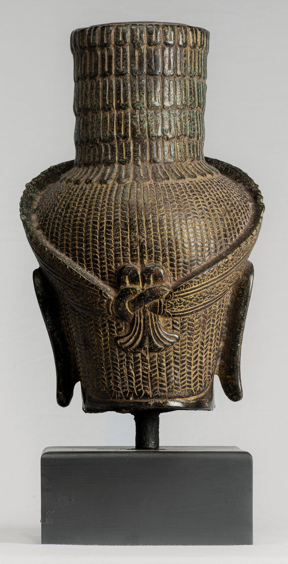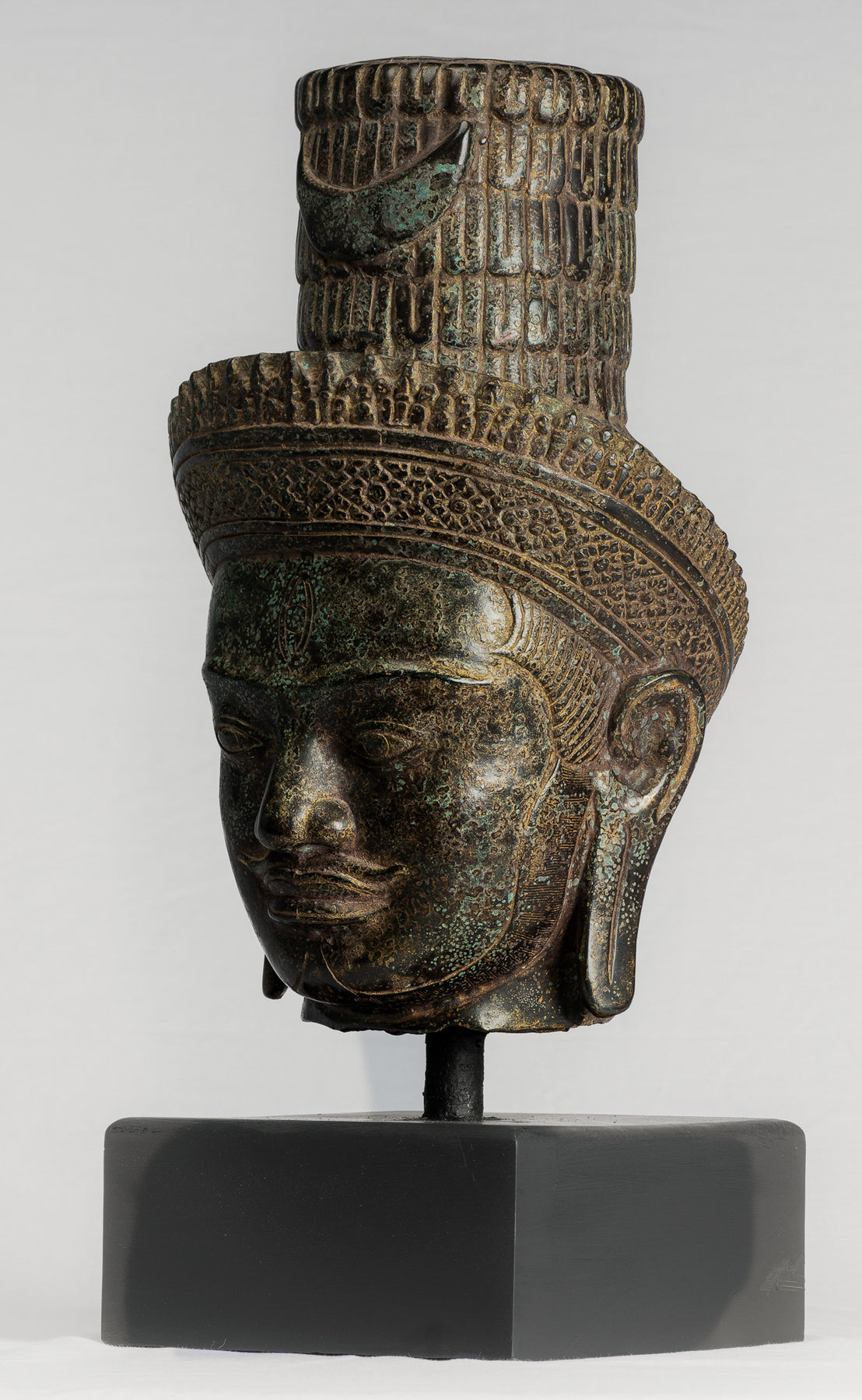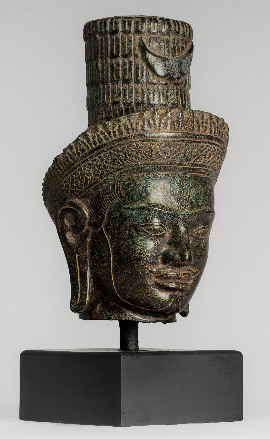 • Antique Khmer Style Mounted Bronze Bakheng Shiva Head Statue - 47cm/19"