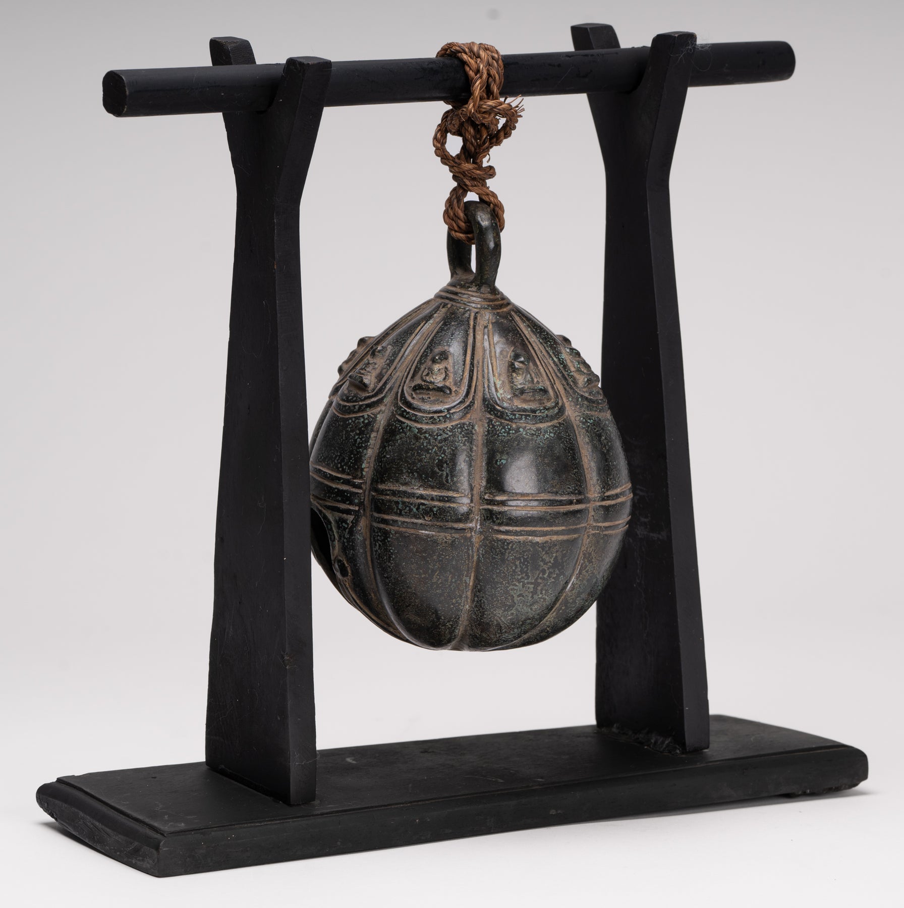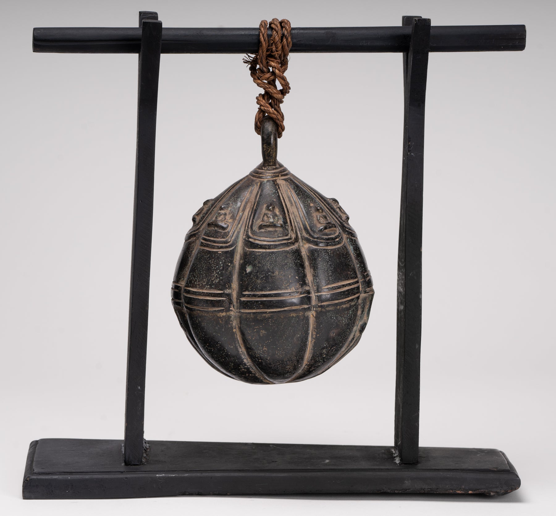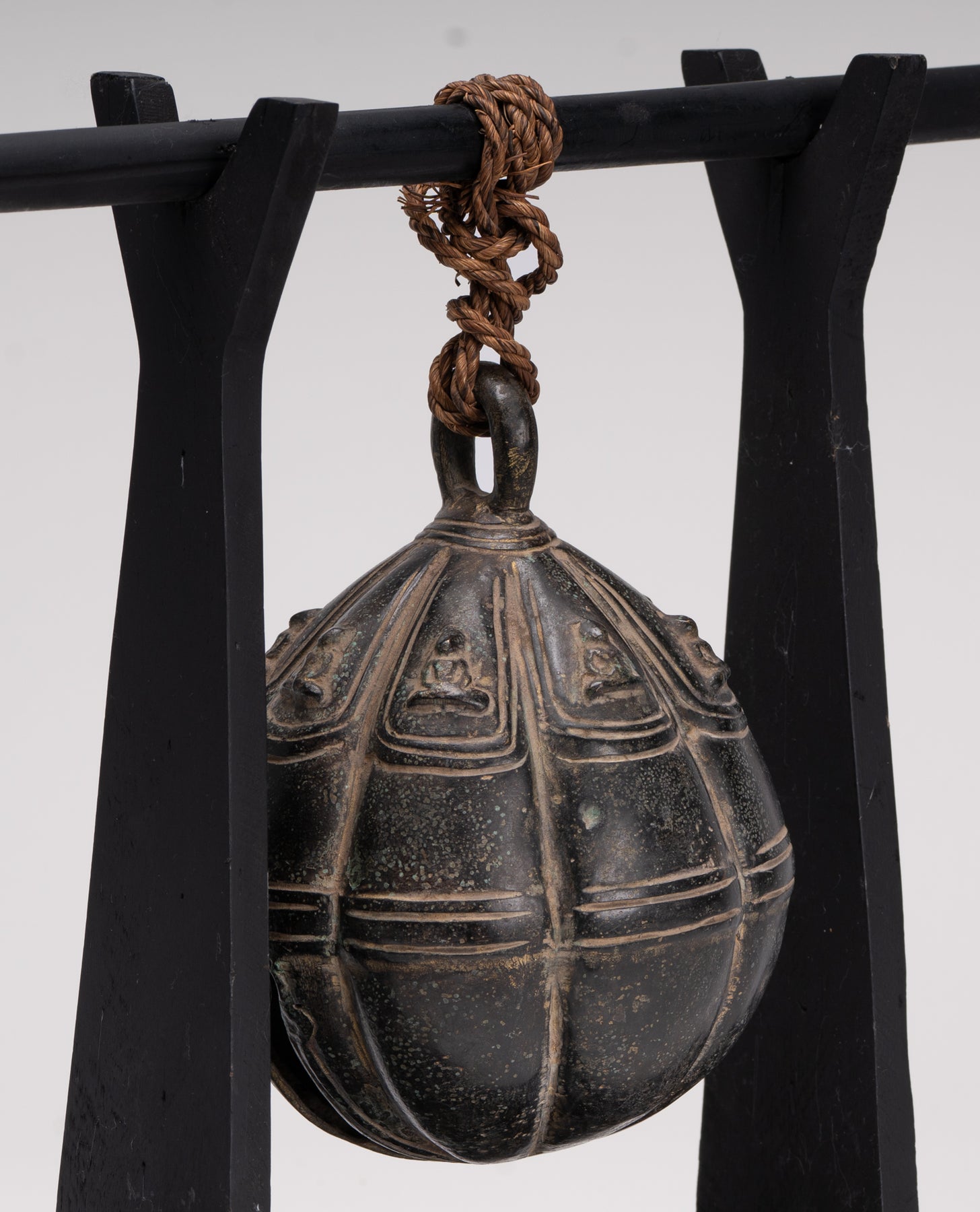 Antique Khmer Style Bronze Mounted Buddha Bell - 29cm/12"