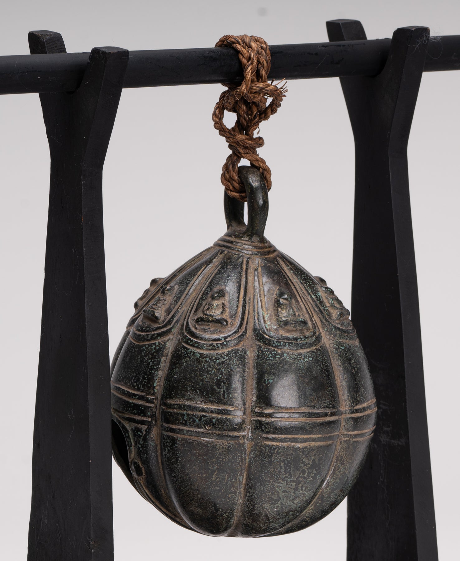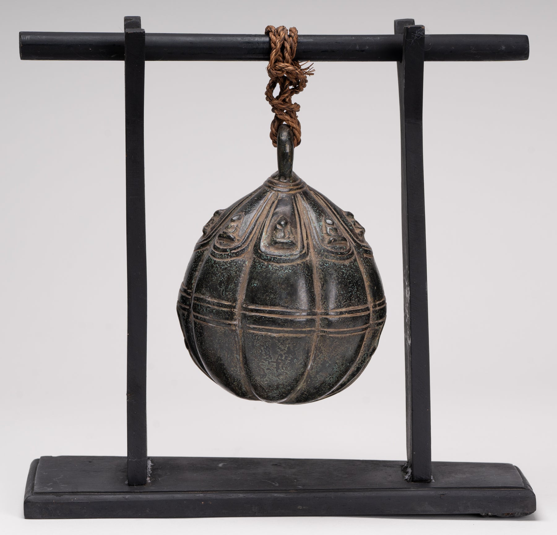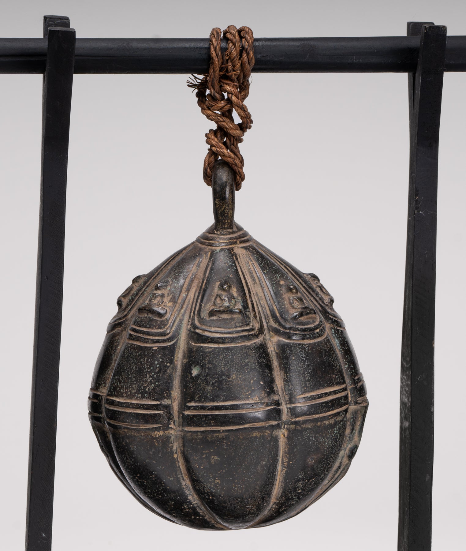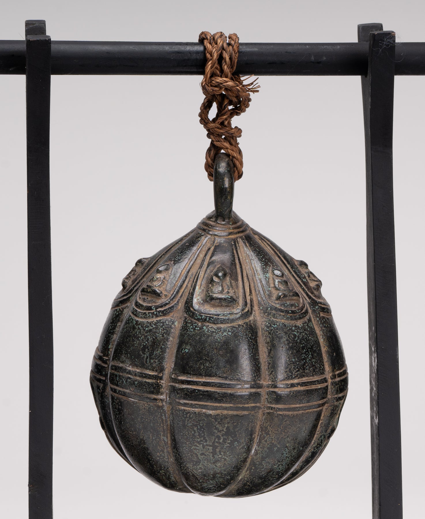Antique Khmer Style Bronze Mounted Buddha Bell - 29cm/12"