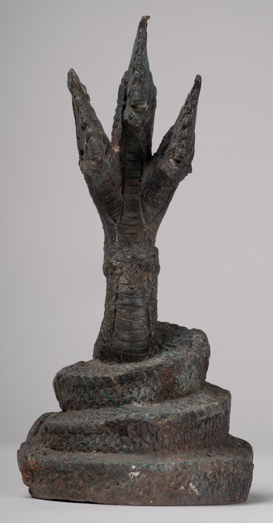 Antique Thai Style Bronze Three Headed Protective Naga, Snake or Serpent Statue - 28cm/11"