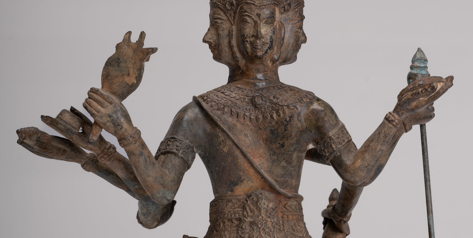 • Antique Thai Style Bronze Brahma - Hindu God Creation - 27cm/11"