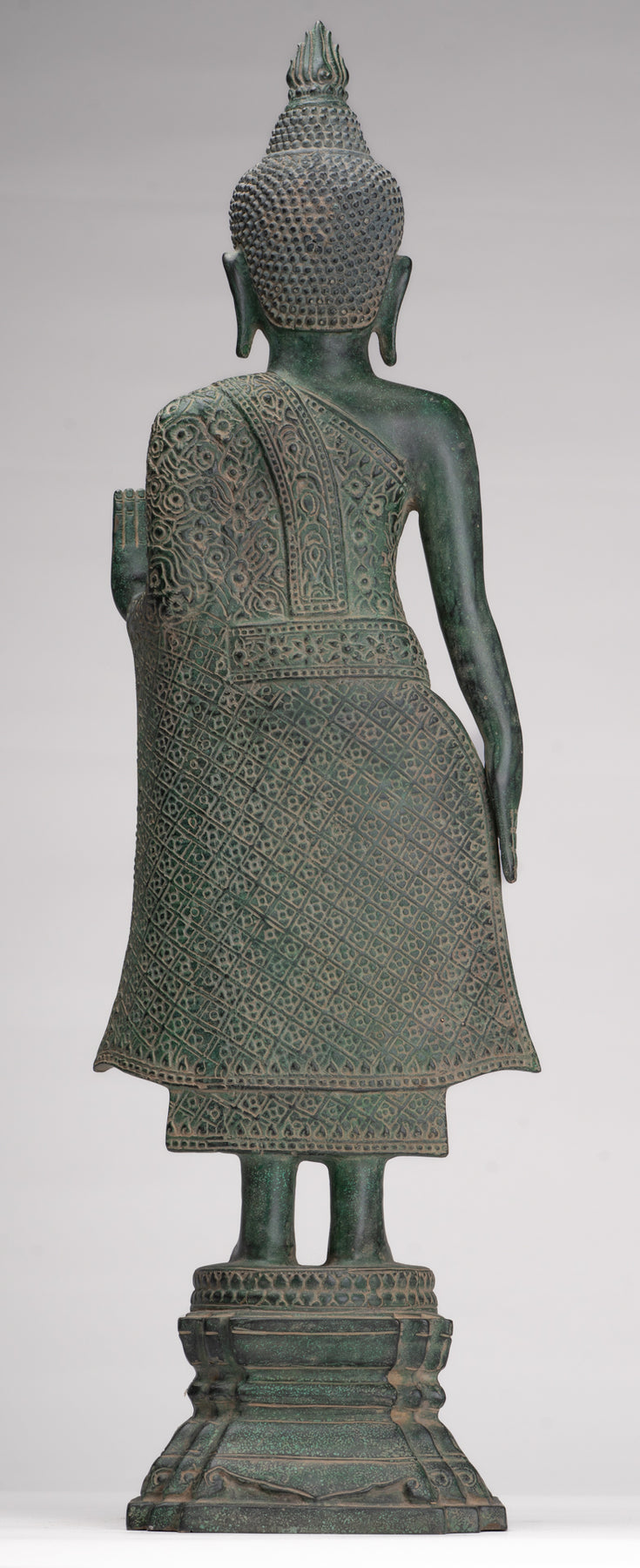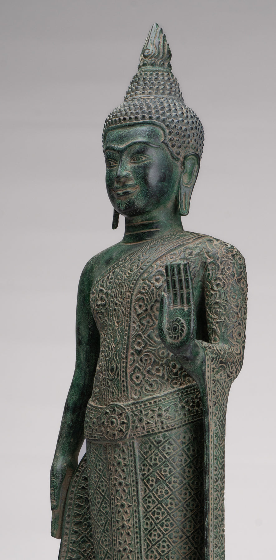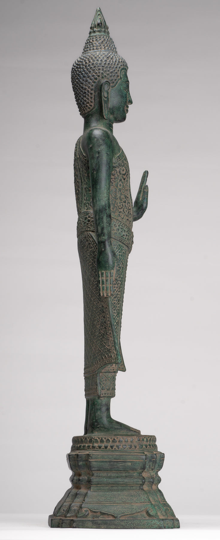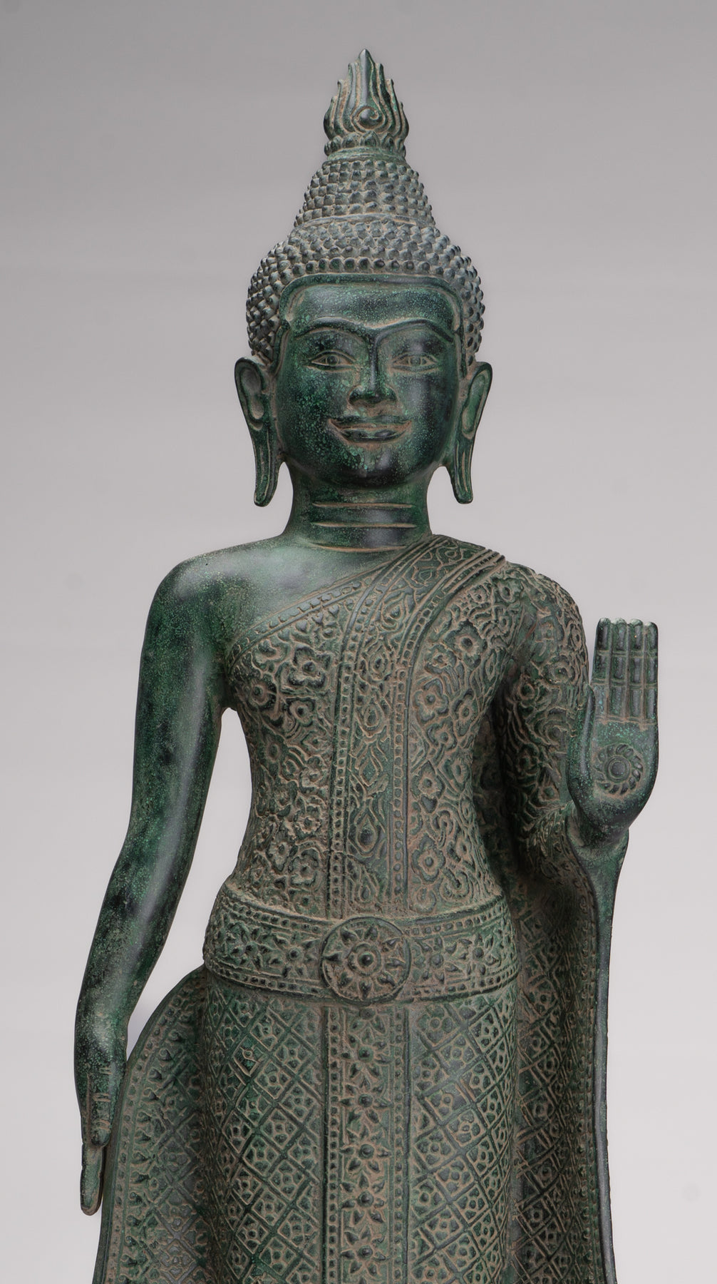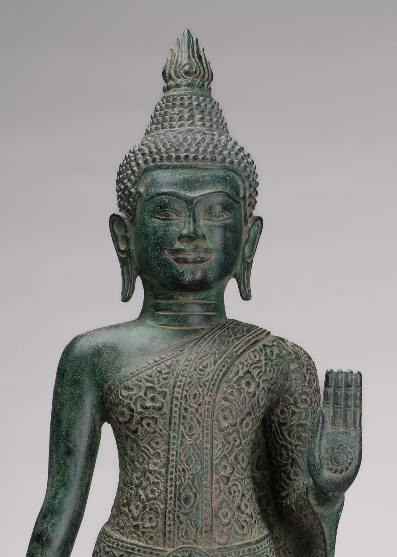 Buddha Statue - Antique Khmer Style Bronze Standing Abhaya Protection Buddha Statue - 64cm/26"