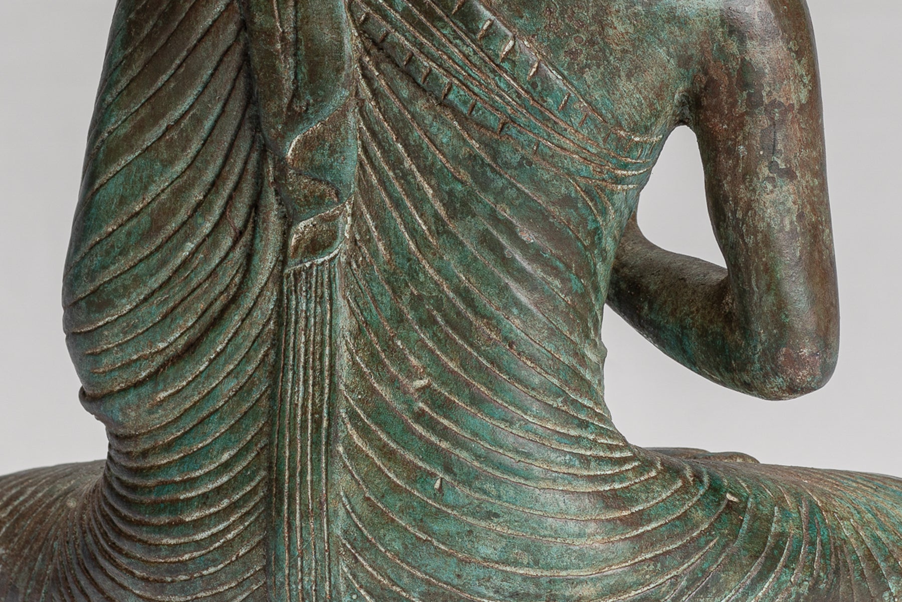 Buddha Statue - Antique Sri Lanka Style Seated Bronze Teaching Buddha Statue - 25cm/10"