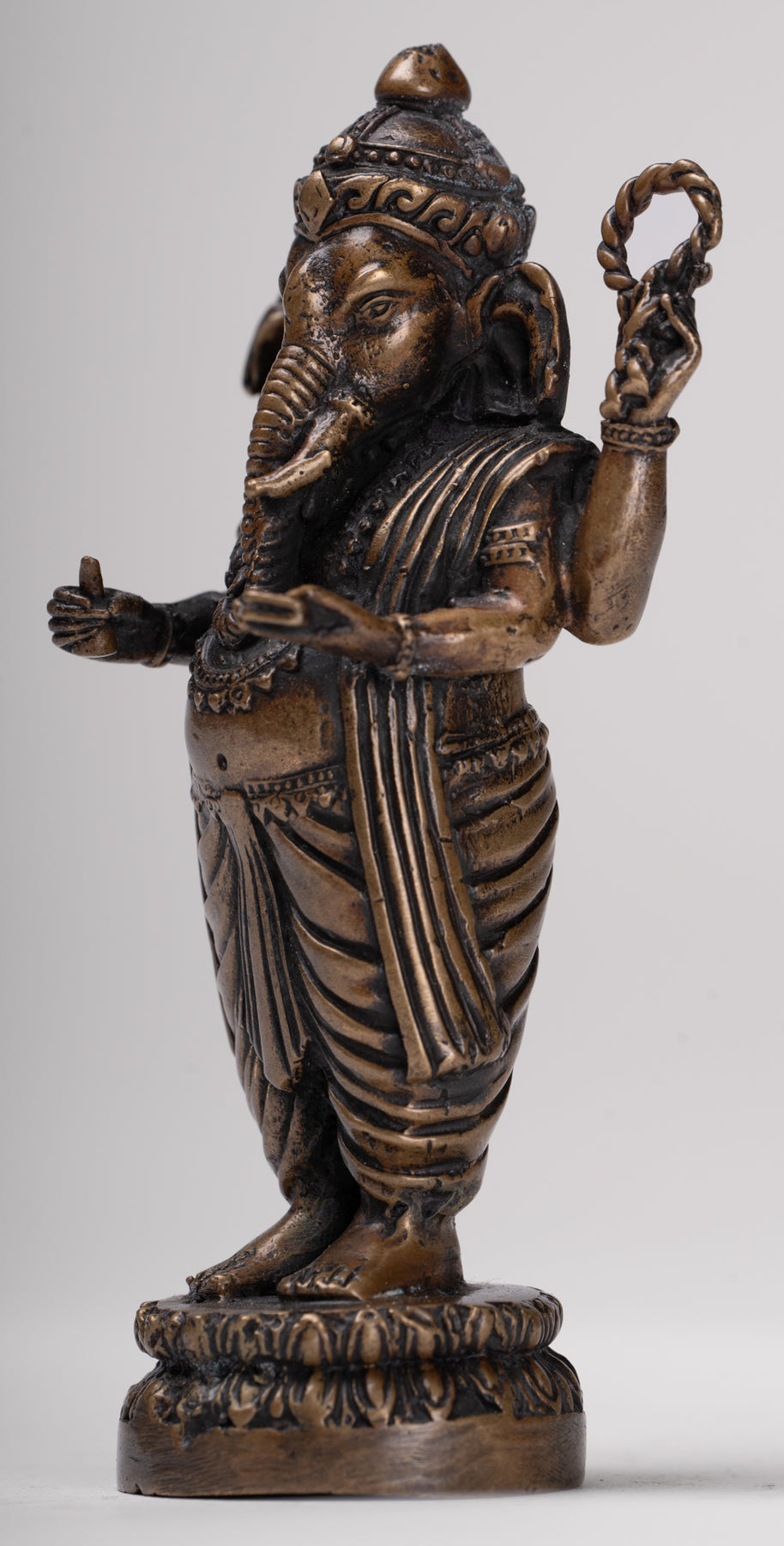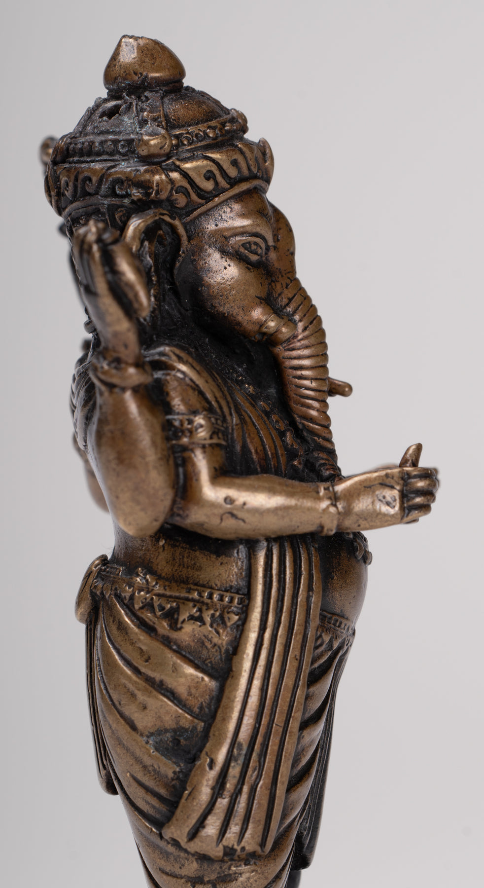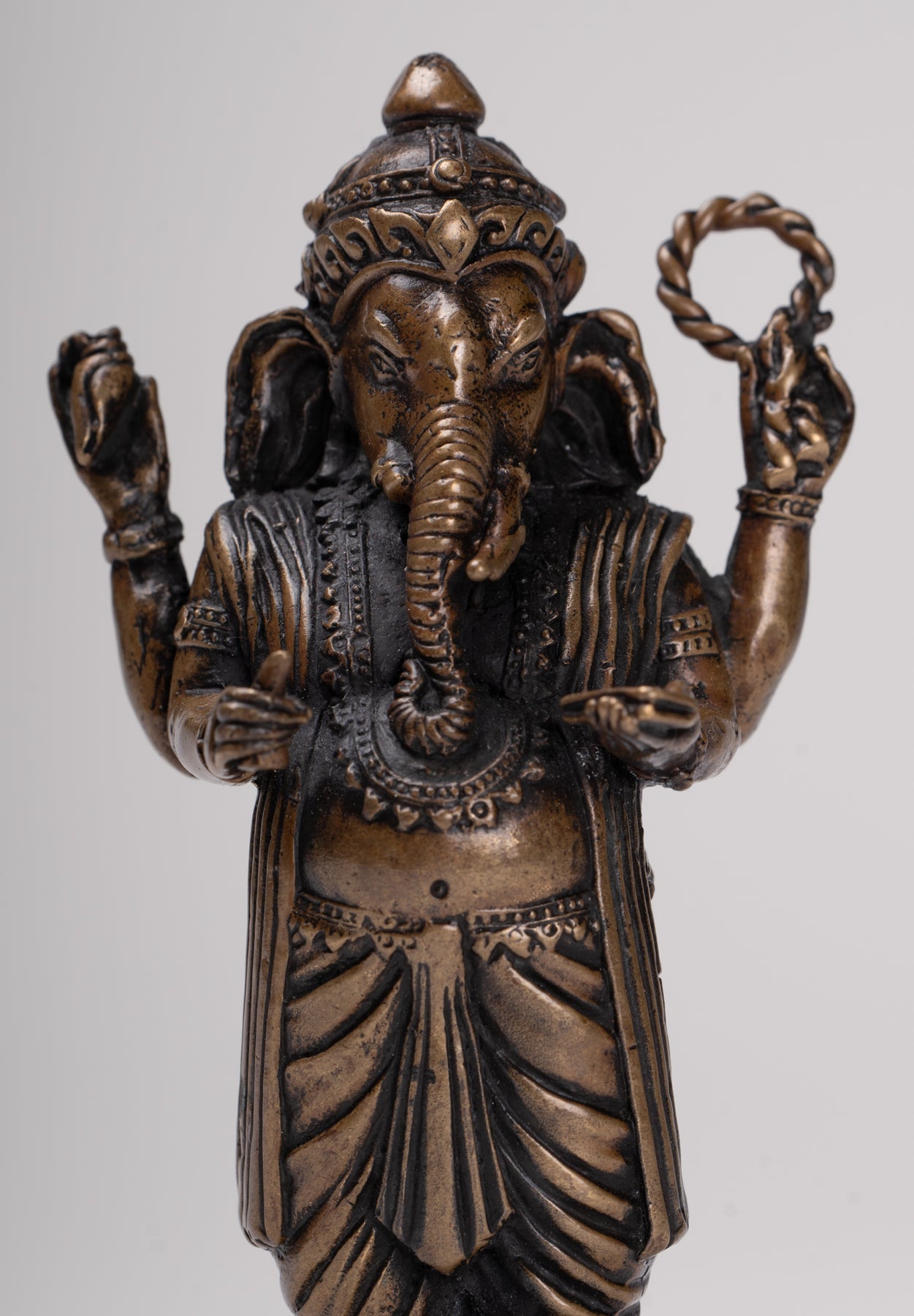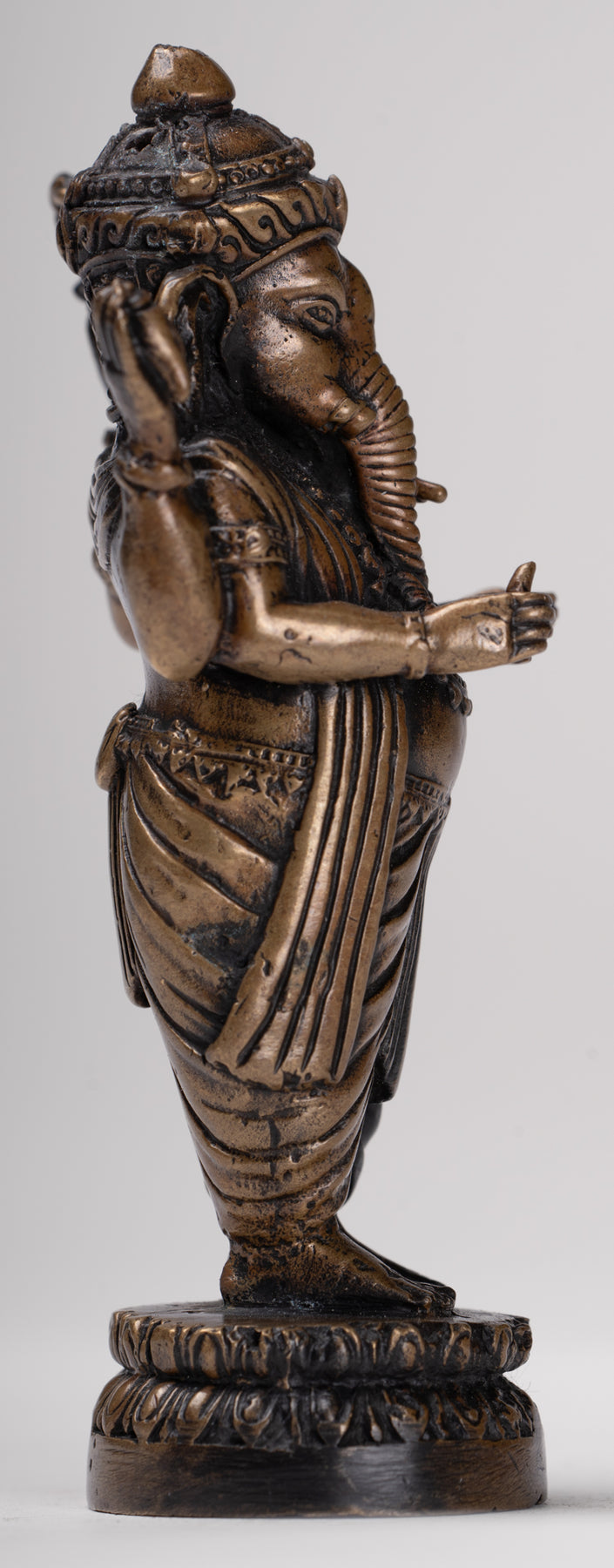 An expressively cast Antique Thai style brass standing 4-arm Ganesha.