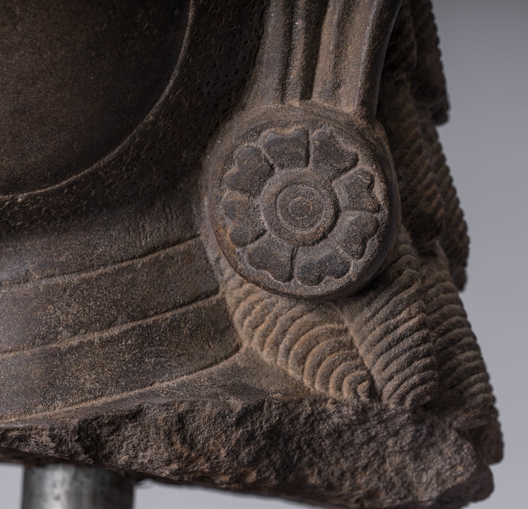 The Yaksha is carved in the style of those seen at the great Banteay Srei temple in Cambodia - a 10th-century Cambodian temple dedicated to the Hindu god Shiva, located in the area of Angkor.