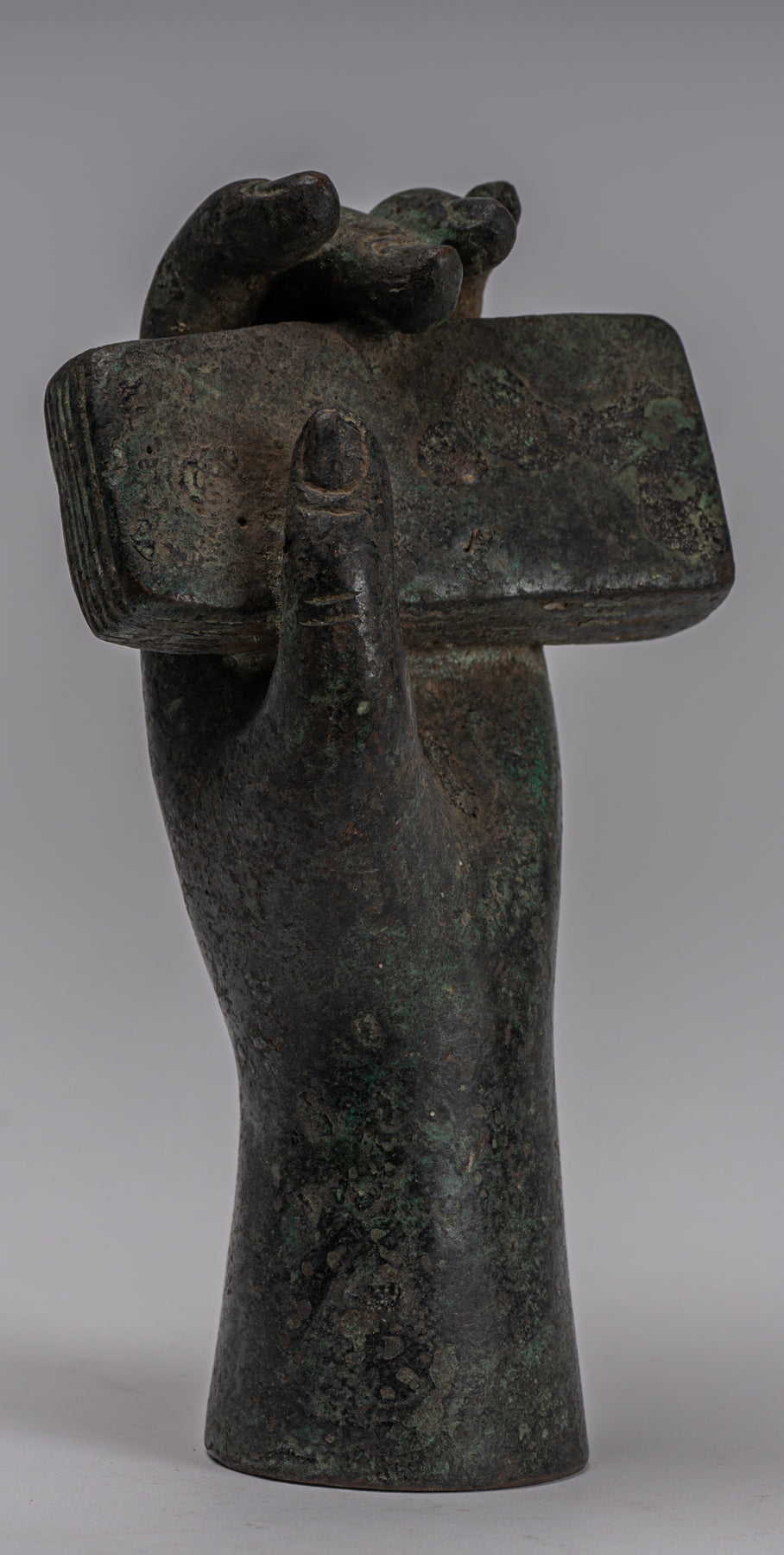 Free Standing Antique Khmer Style Southeast Asia Bronze Hand & Sutra - 16cm/6"
