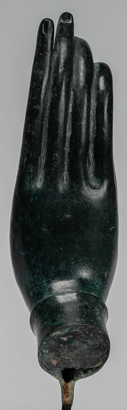 Antique Khmer Style Southeast Asia Bronze Mounted Hand - 40cm/16"