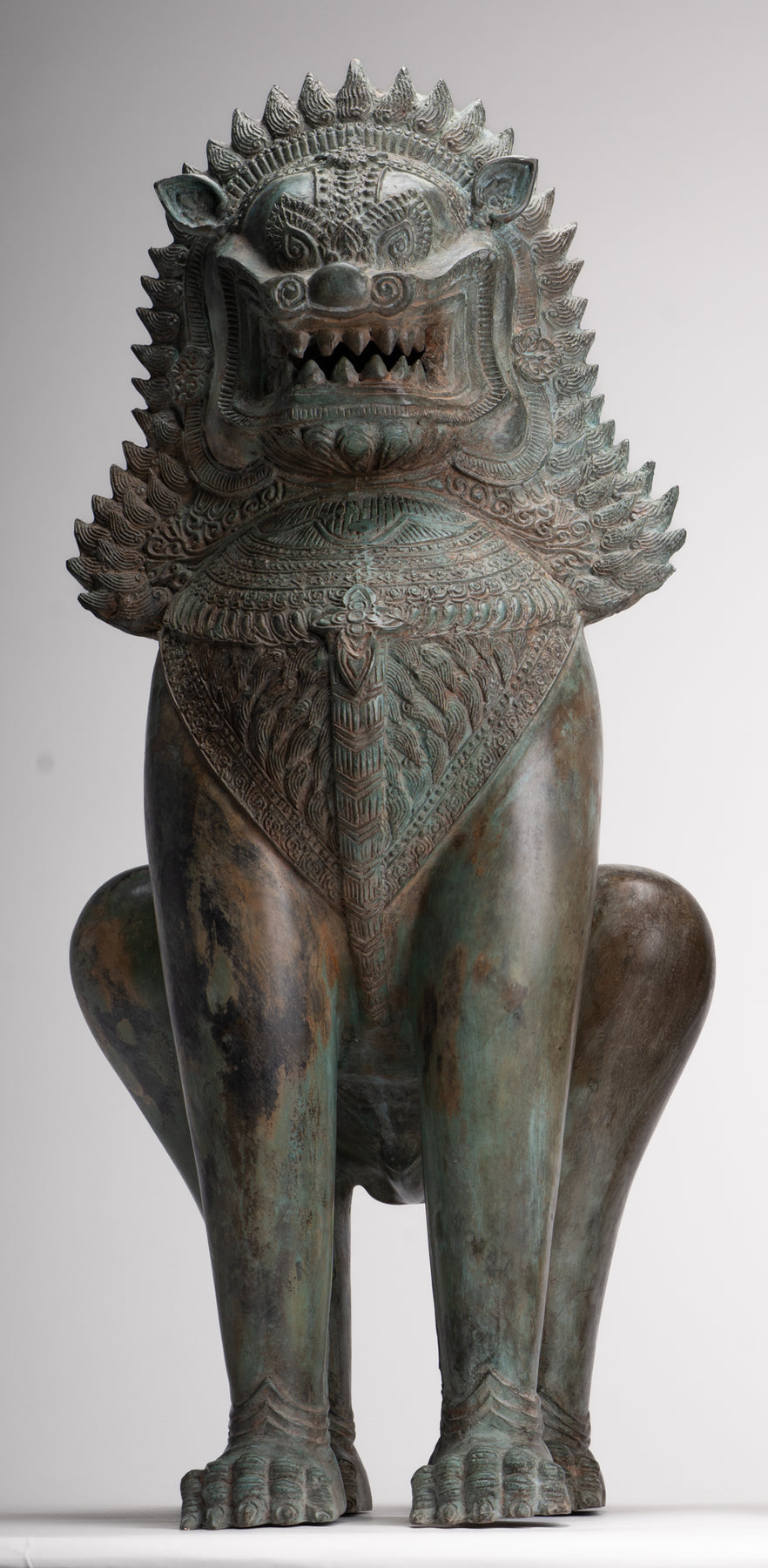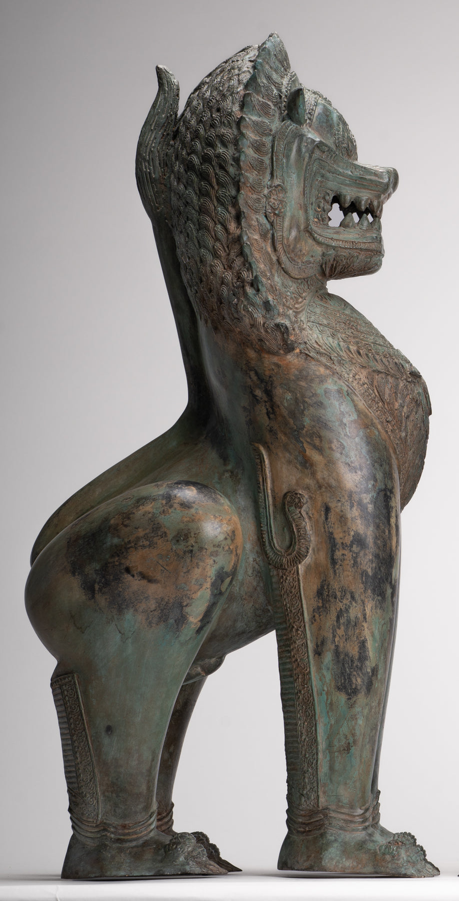• Temple Lion - Antique Thai Style Bronze Standing Singha Temple Guardians or Lions - 61cm/24" (Pair)