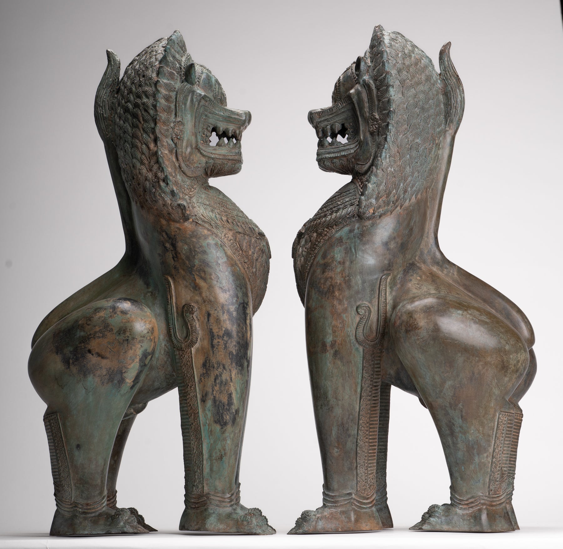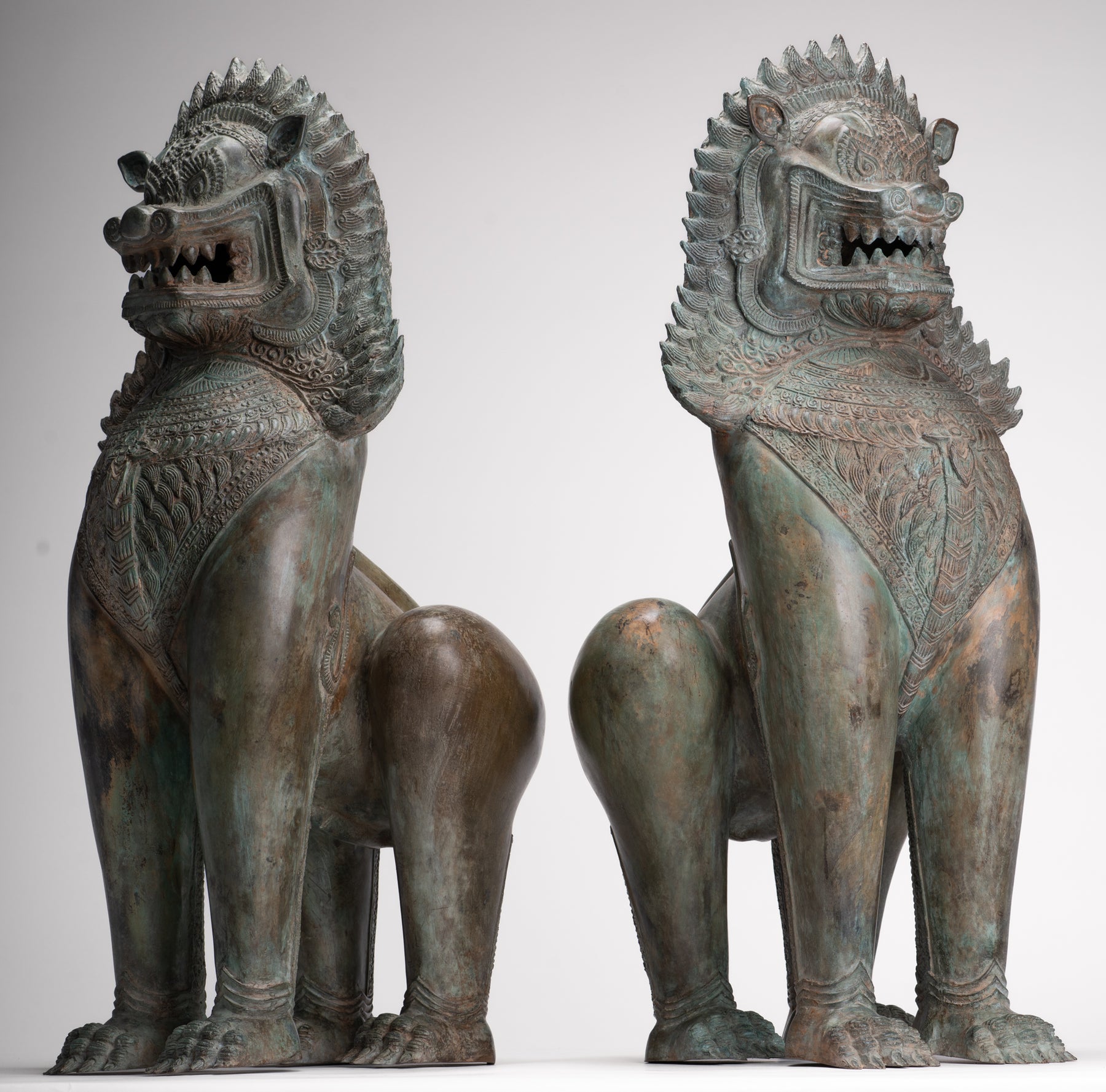 Temple Lion - Antique Thai Style Bronze Standing Singha Temple Guardians or Lions - 61cm/24" (Pair)
