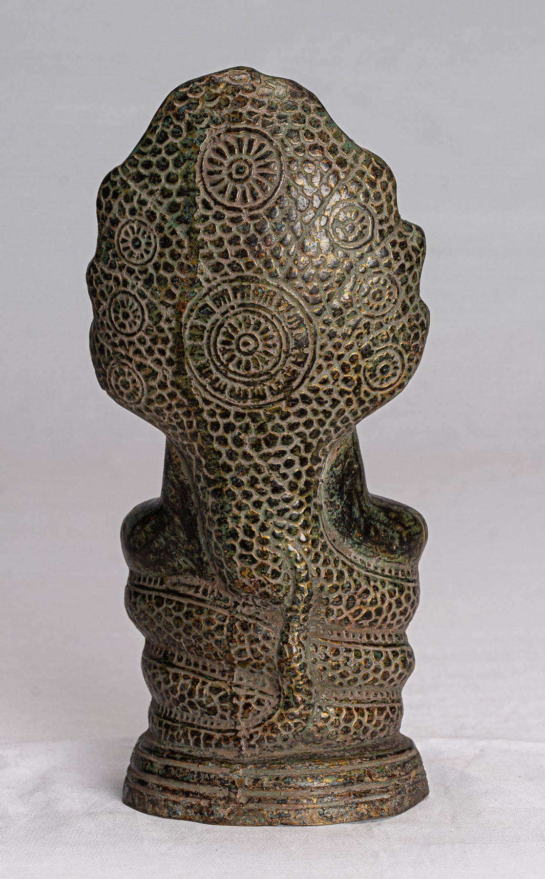 Antique Bayon Style Khmer Seated Bronze Naga Meditation Buddha - 21cm/8"