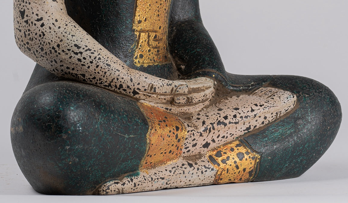 The carving is beautiful as you can see in the fine details of the face. Each detail is rendered perfectly. The distinctive patina of the piece is also particularly delightful. The Buddha is seated in the half lotus position with his hands in the Dhyana mudra or 'Meditation Position'. This hand gesture promotes the energy of meditation, deep contemplation and unity with higher energy.