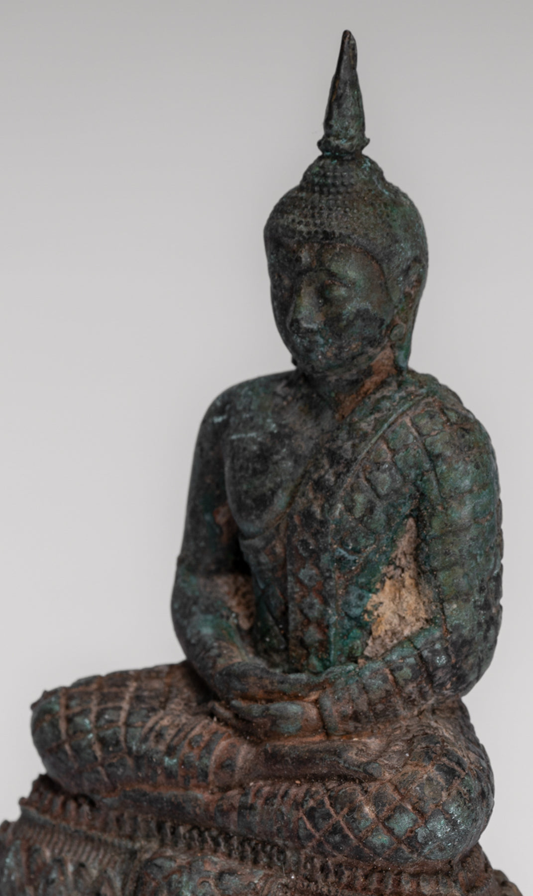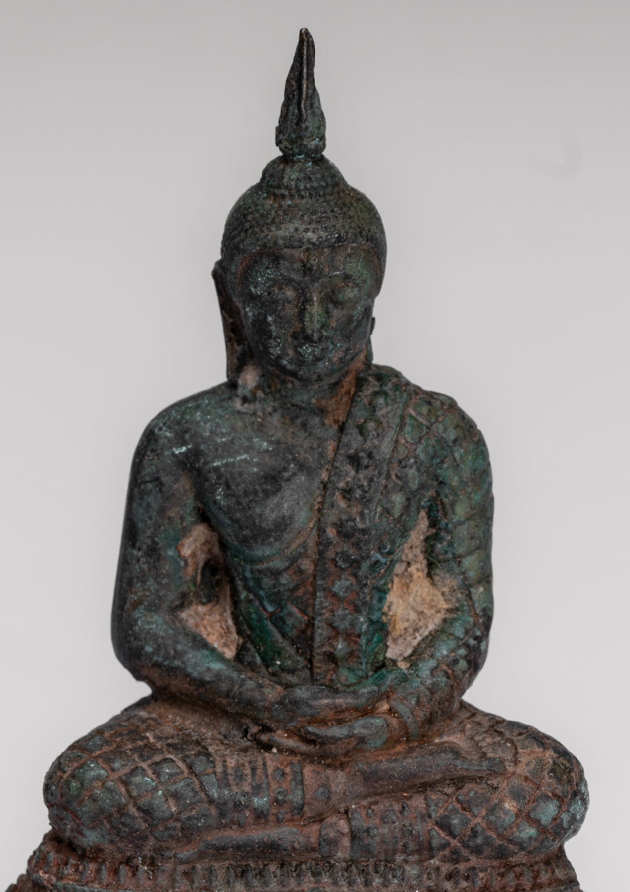 Antique Thai Style Seated Bronze Meditation Buddha Statue - 12.5cm/5"
