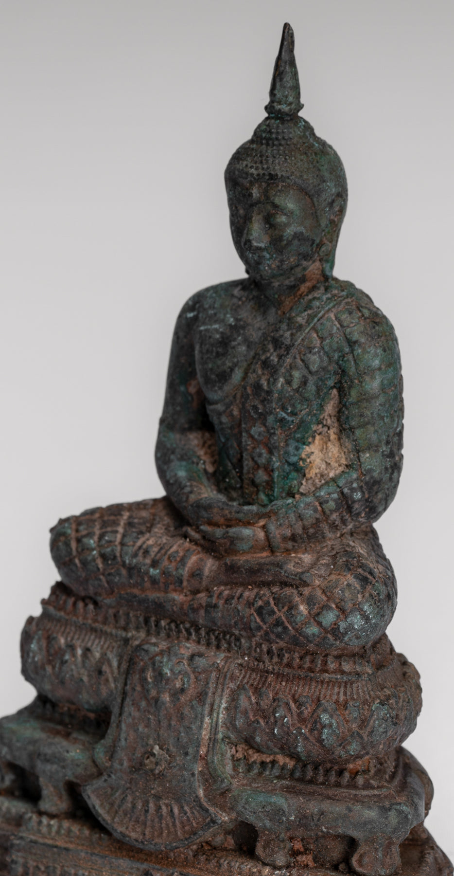 Antique Thai style seated bronze Meditation Buddha in the Sukhothai style.