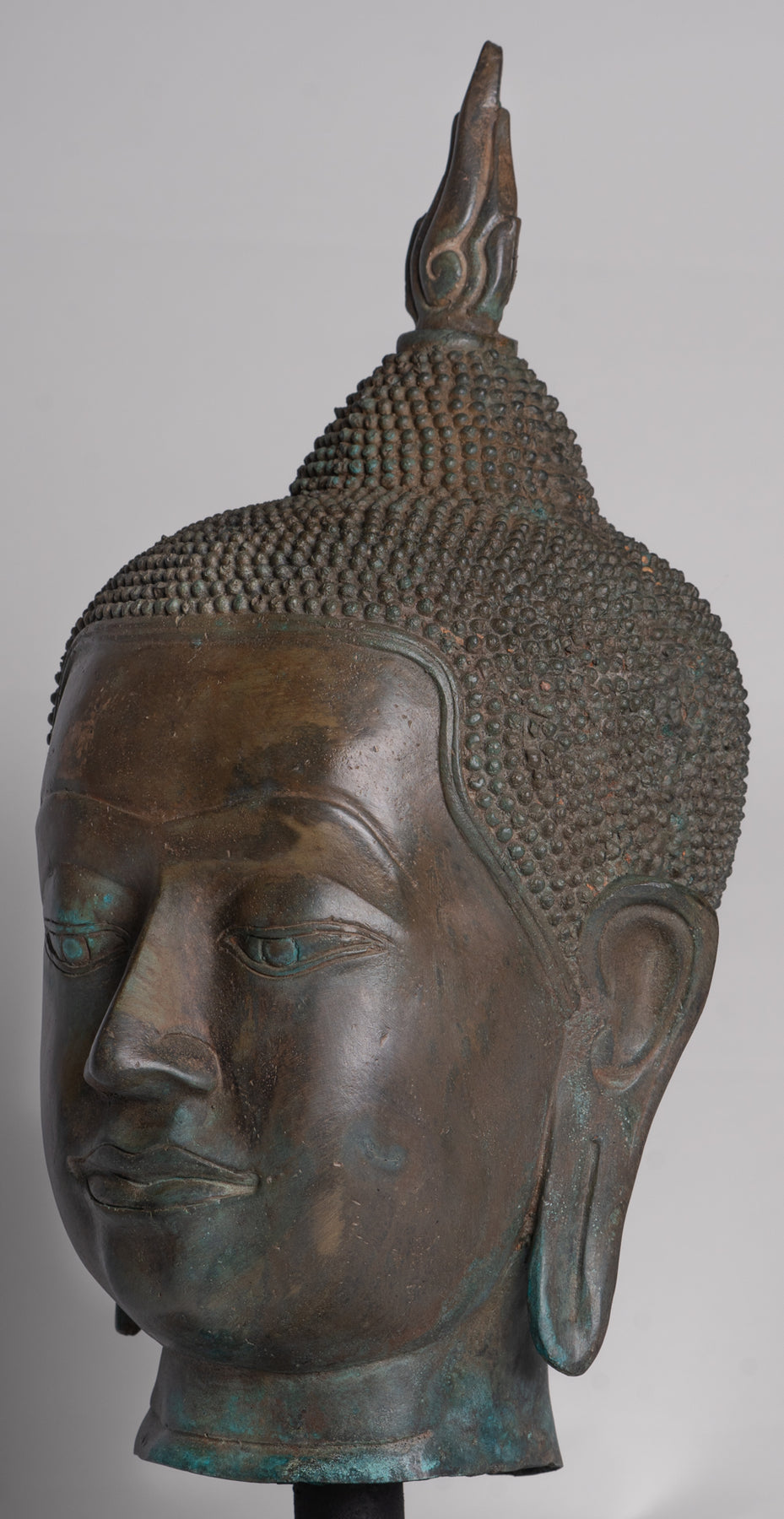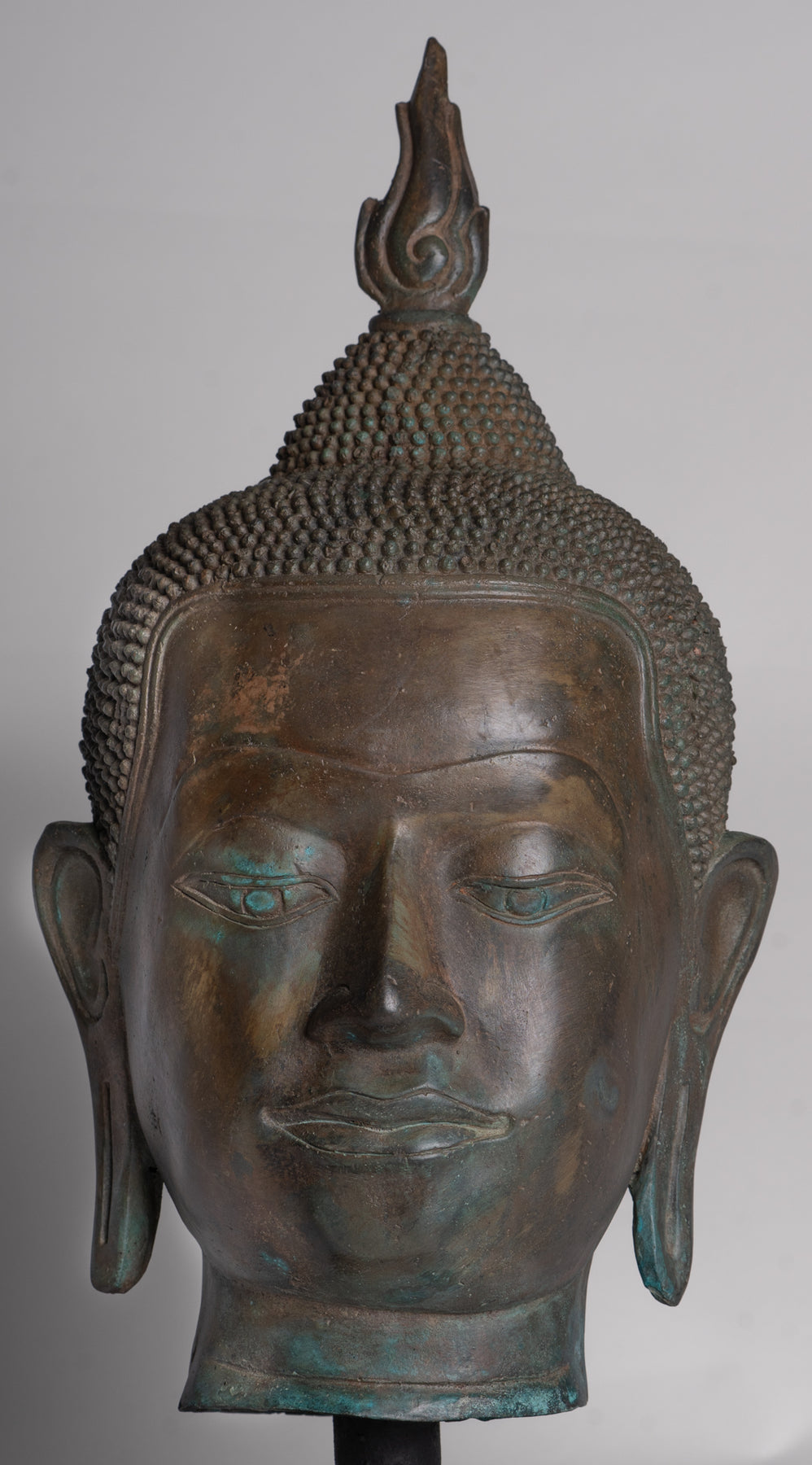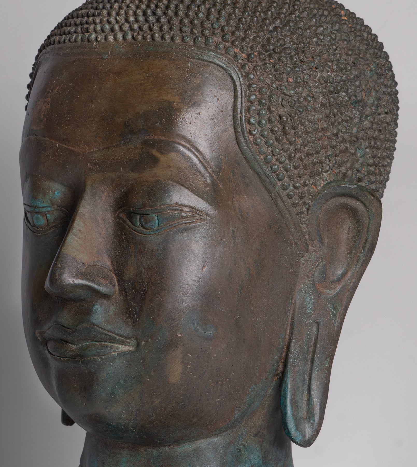 Buddha Statue - Antique U Thong Style Bronze Enlightenment Buddha Head - 47cm/19"