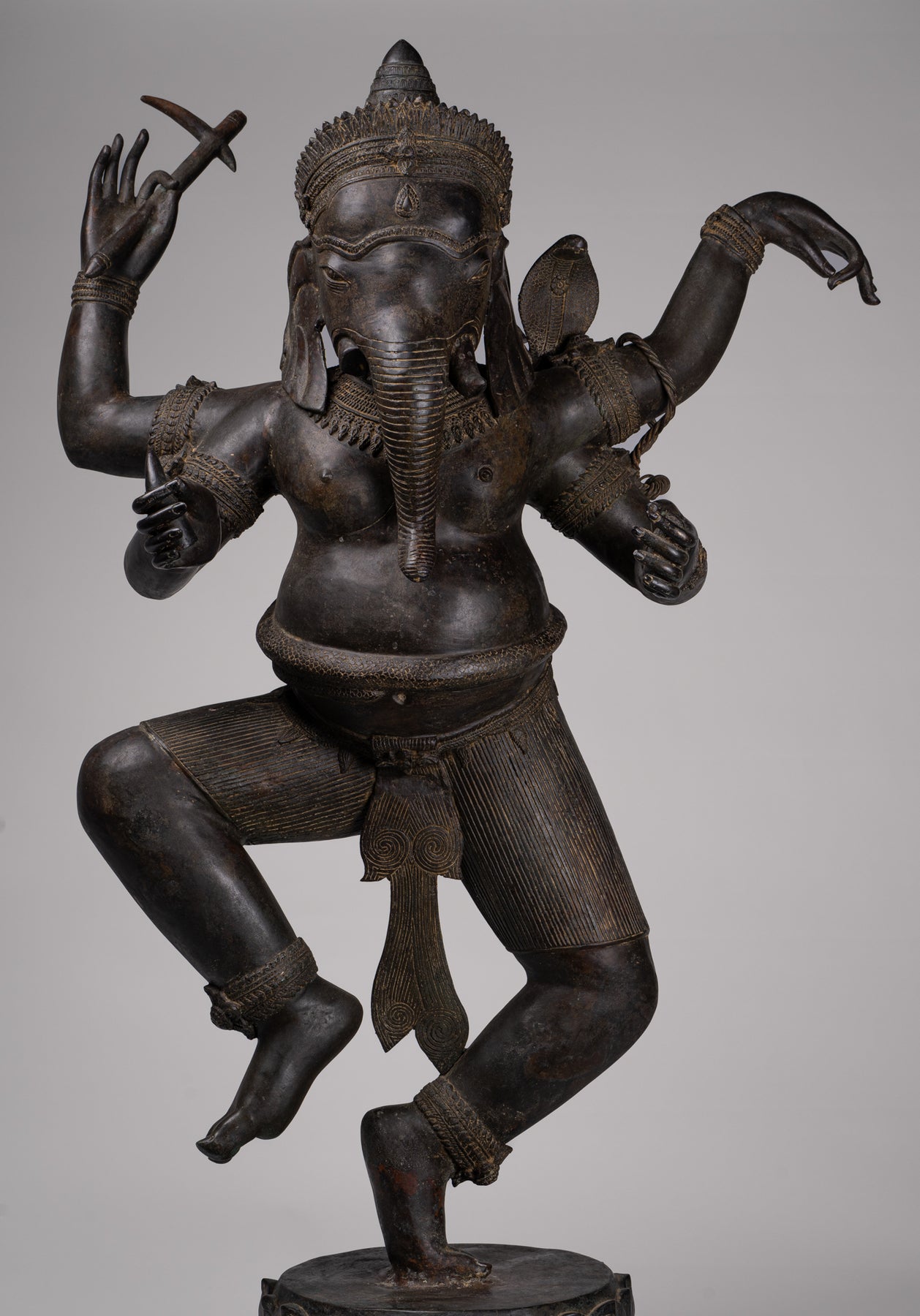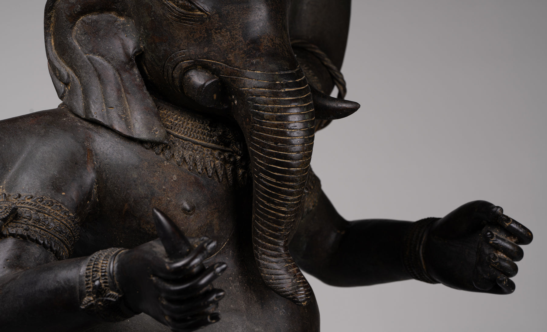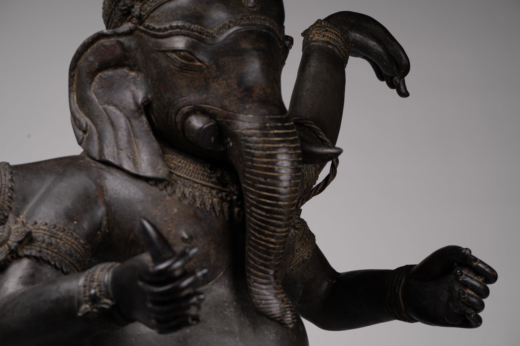 A magnificent antique Thai style bronze dancing Ganesha. The distinctive patina of the piece is particularly delightful. Ganesha is the elephant headed son of Shiva.