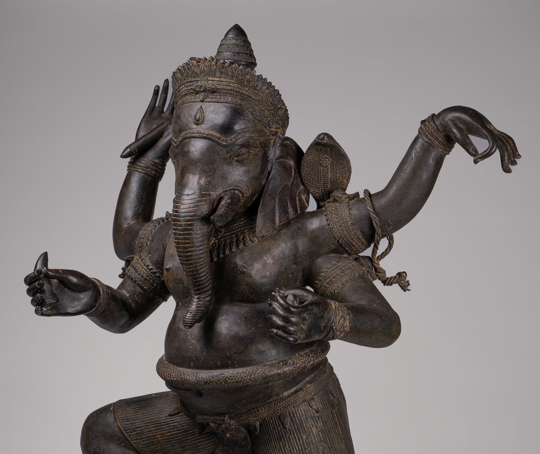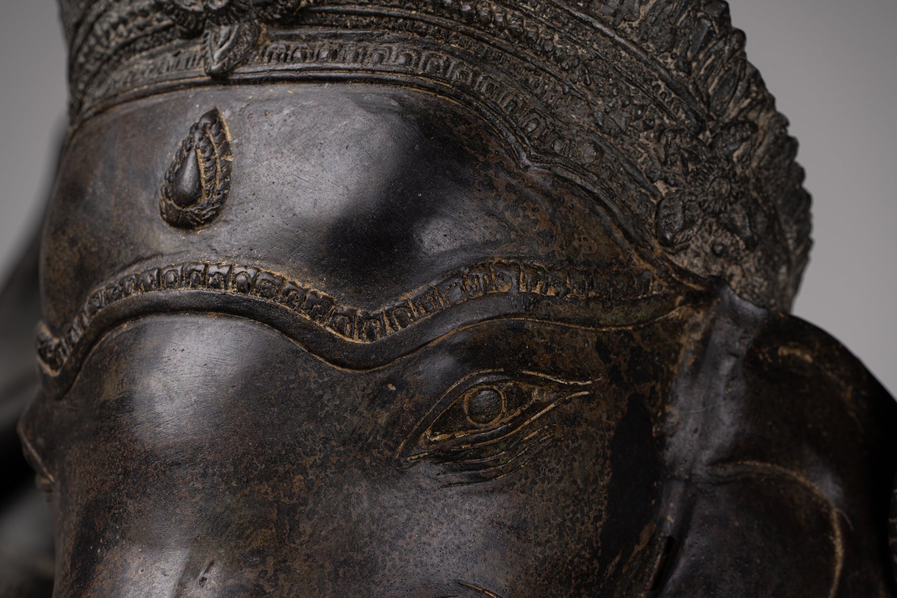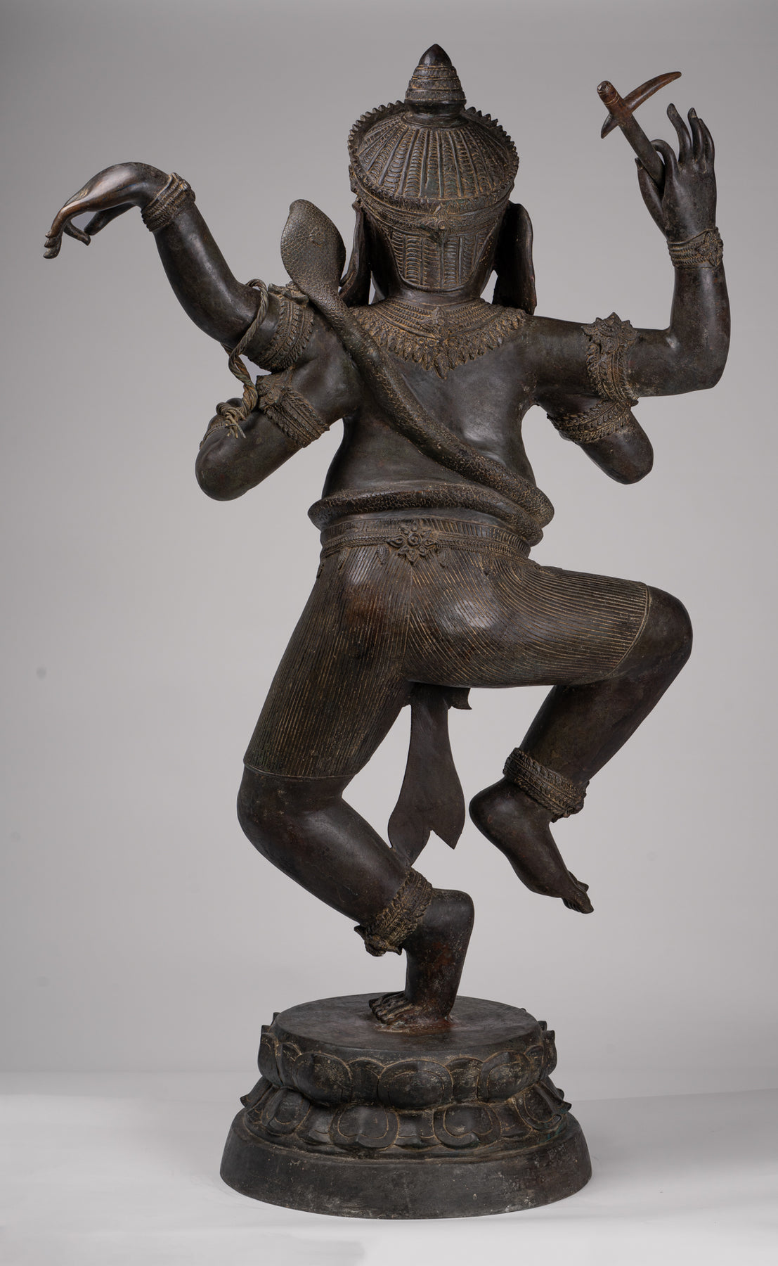 A magnificent antique Thai style bronze dancing Ganesha. The distinctive patina of the piece is particularly delightful. Ganesha is the elephant headed son of Shiva.