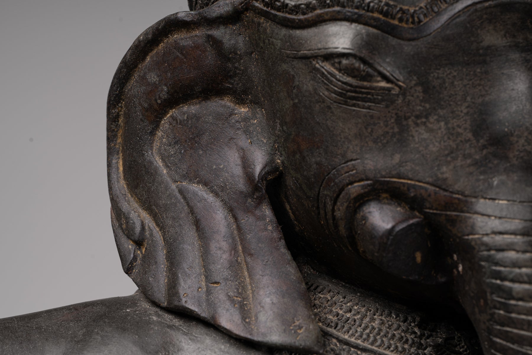 Ganesha Statue - Antique Khmer Style Enthroned Angkor Wat 8 Arm Ganesh Statue - 22cm/9"