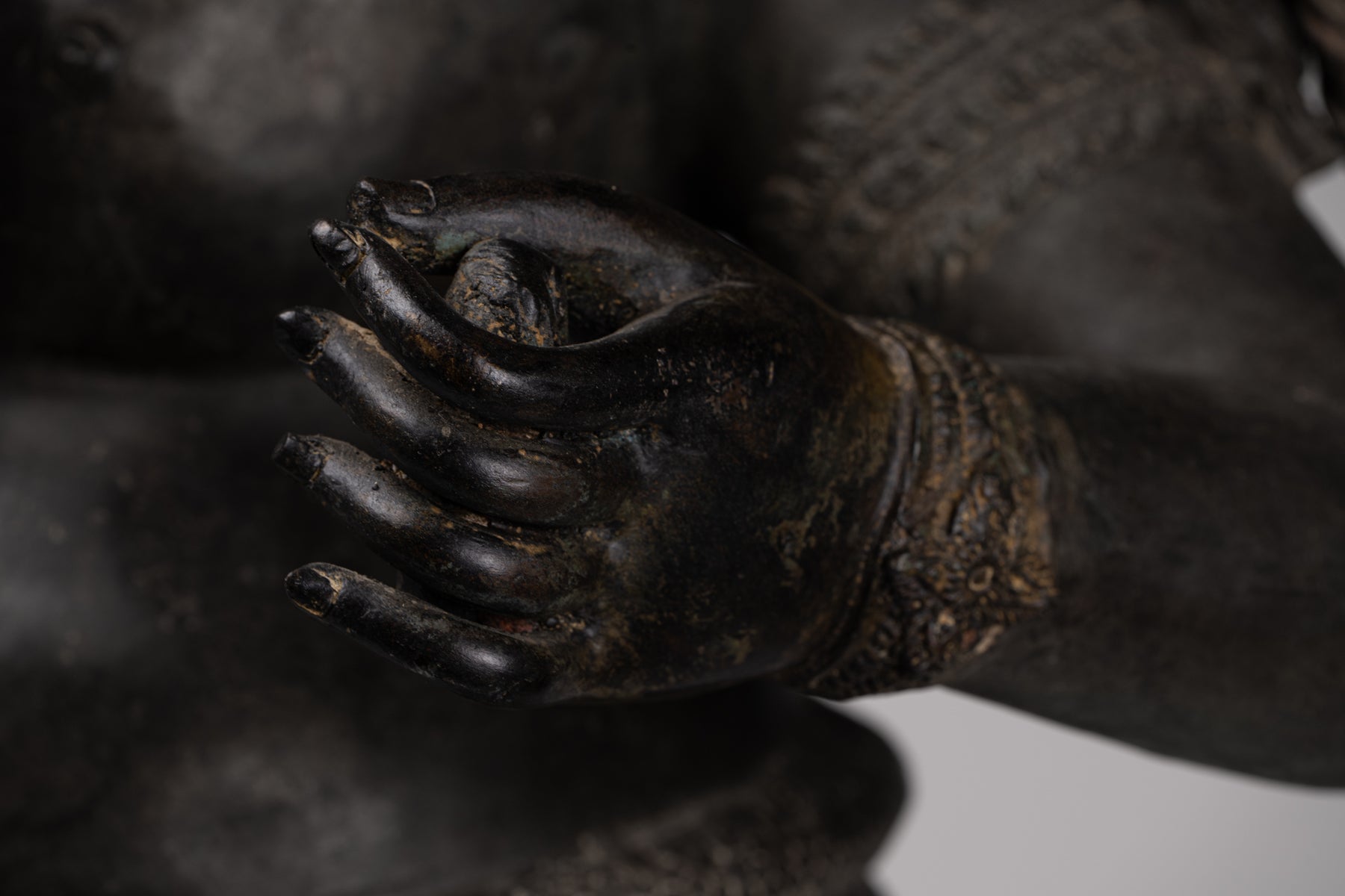 Buddha Sculpture - Antique Khmer Style Wood Seated Buddha Statue Dhyana Meditation Mudra - 26cm/11"