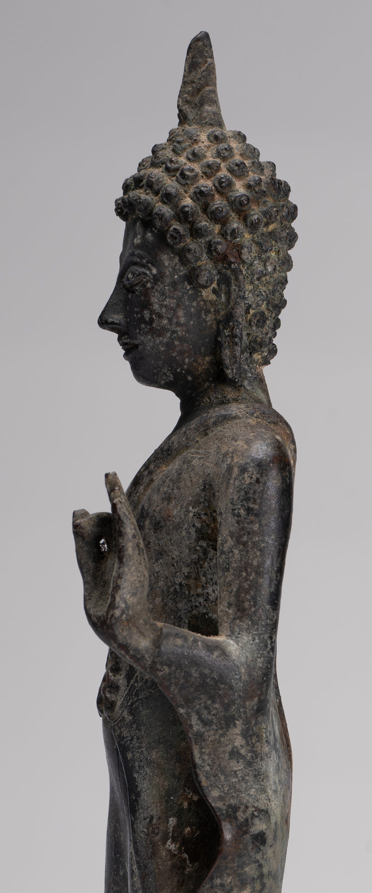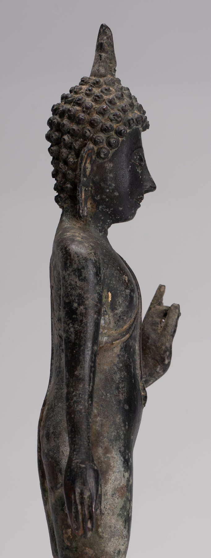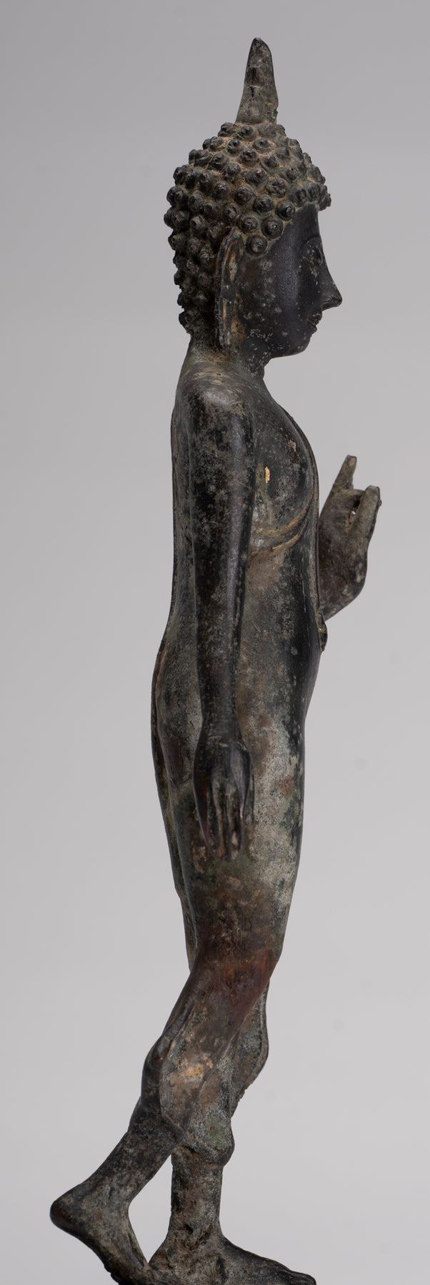 Antique Sukhothai Style Standing Bronze Protection Walking Buddha Statue - 31cm/12"