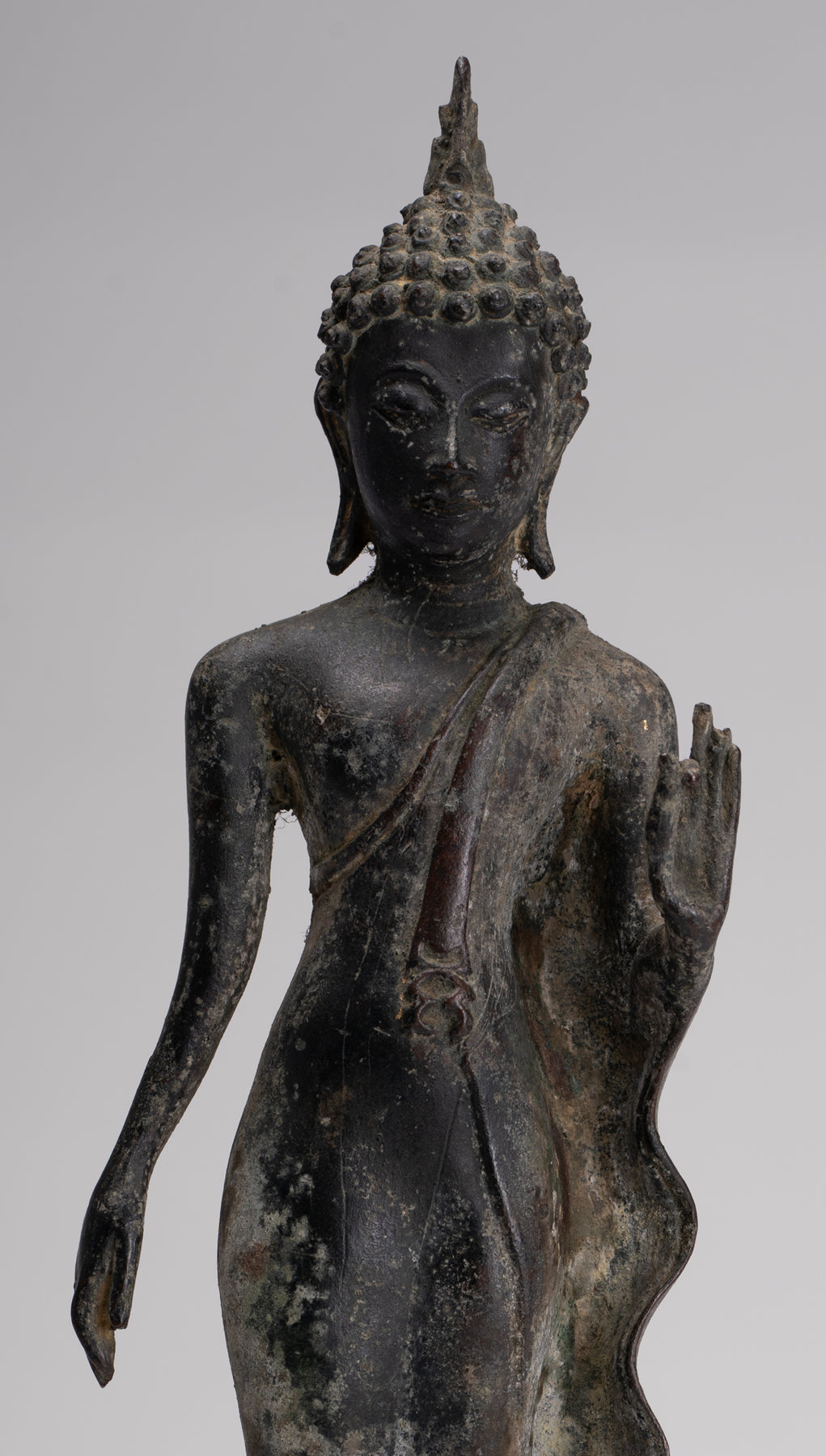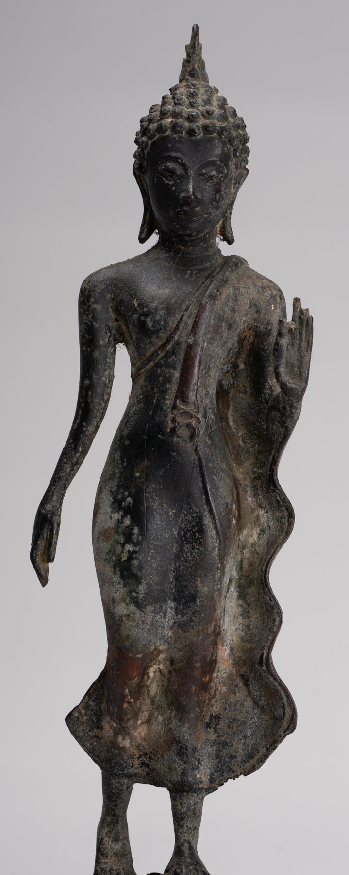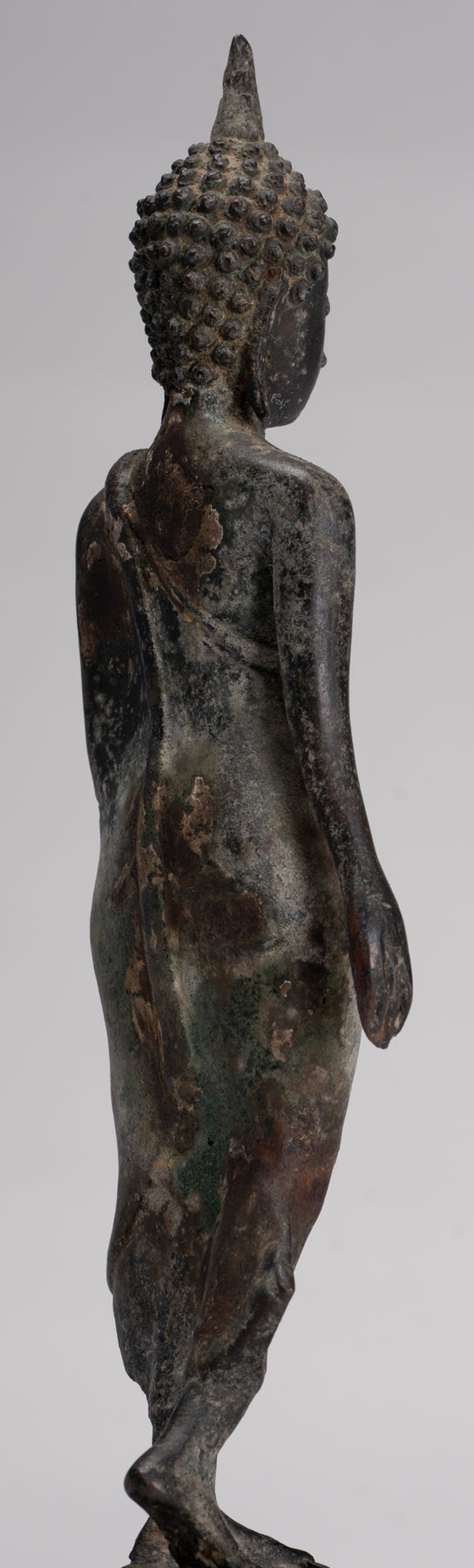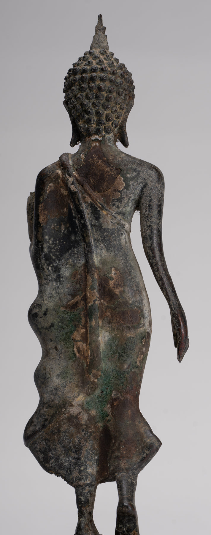 A stunning antique Sukhothai style Walking Buddha from Thailand.
