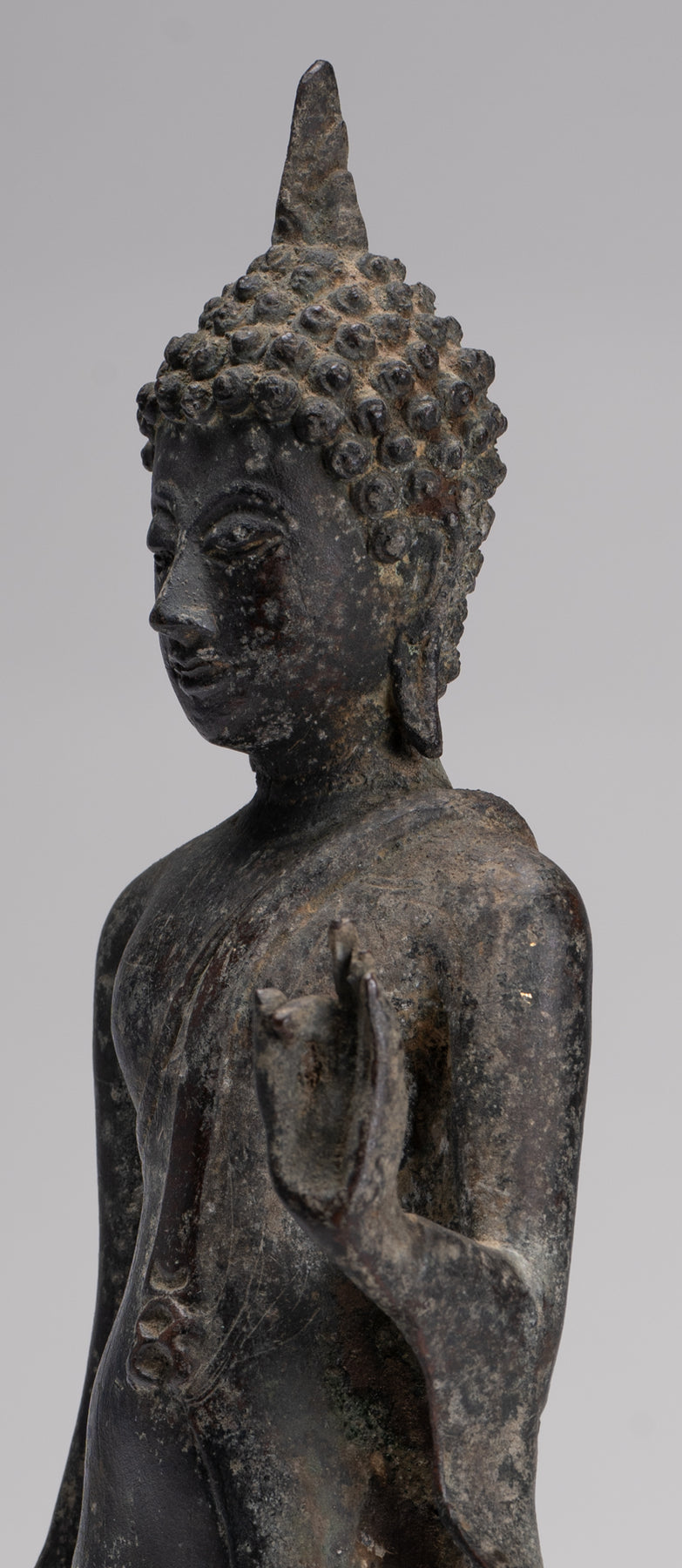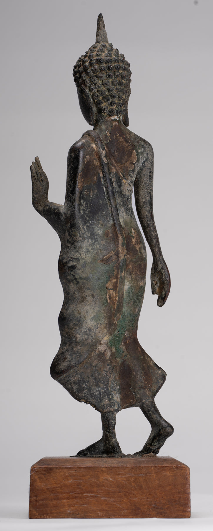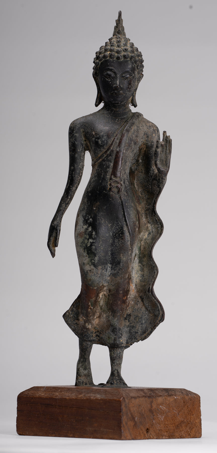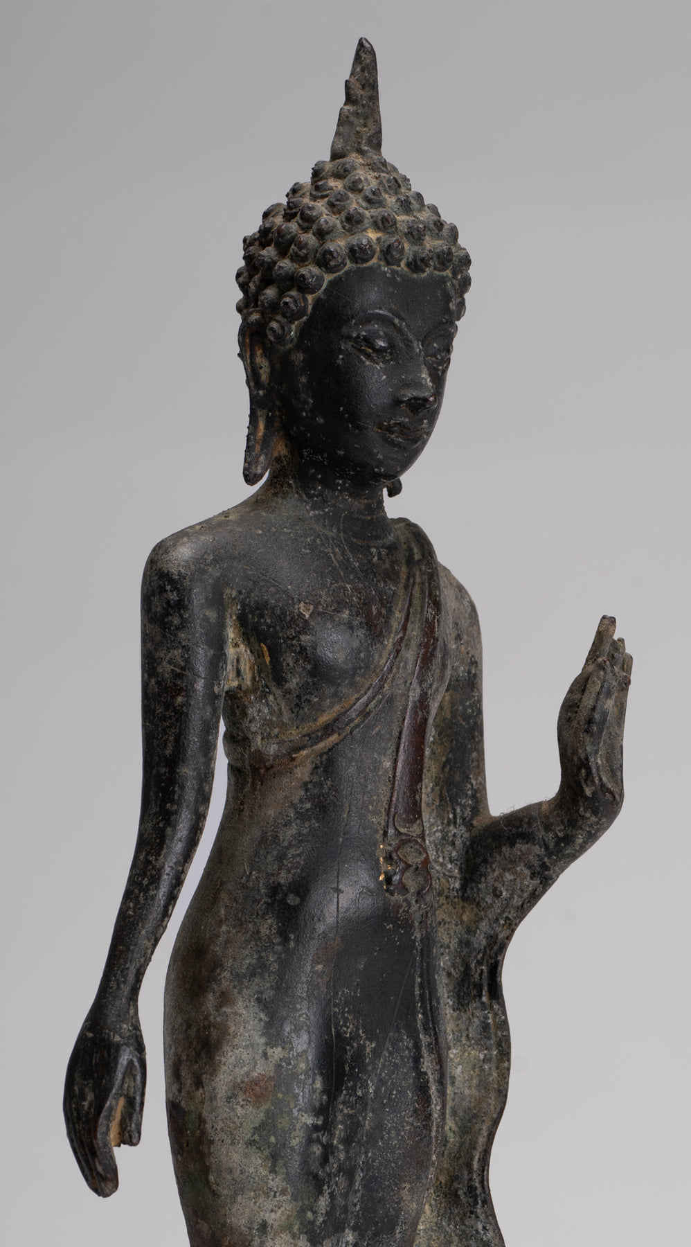 A stunning antique Sukhothai style Walking Buddha from Thailand.