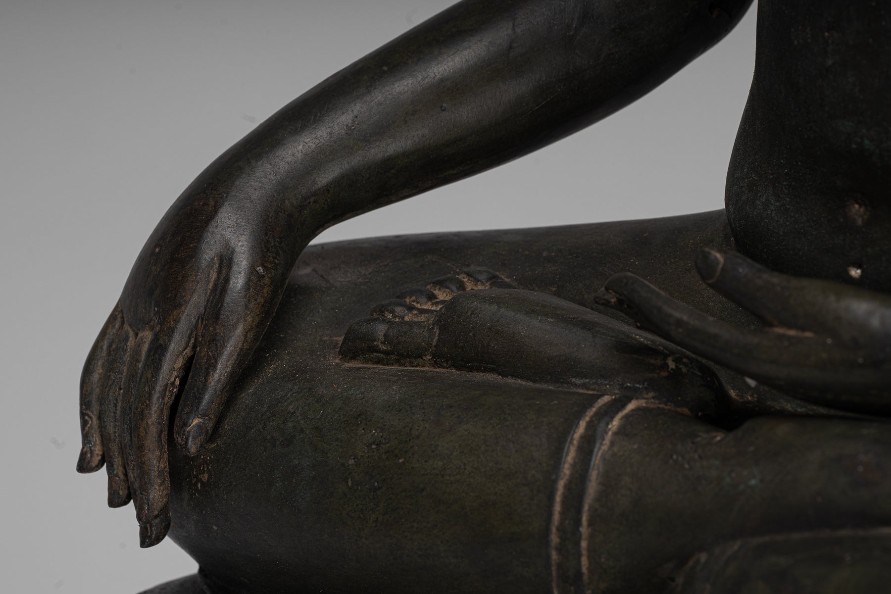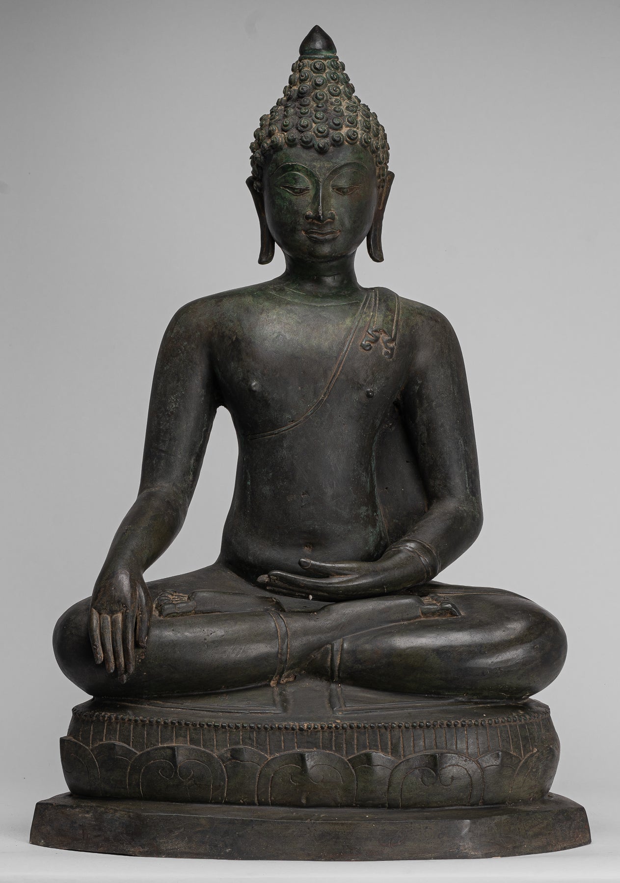 Large Buddha Statue - Antique Thai Style Bronze Chiang Saen Enlightenment Buddha Statue - 80cm/32"