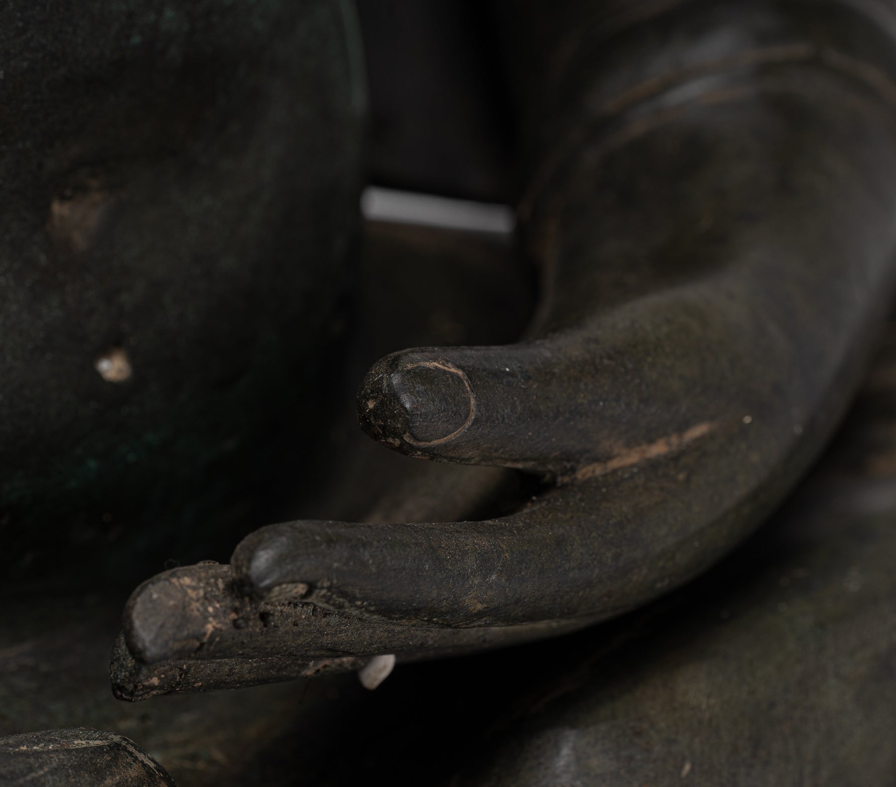 The casting is beautiful as you can see in the fine details of the fingers and toes. Each detail is rendered perfectly. The distinctive patina of the piece is also particularly delightful. This traditional in appearance piece is sure to bring serenity to your home, office or sacred space.