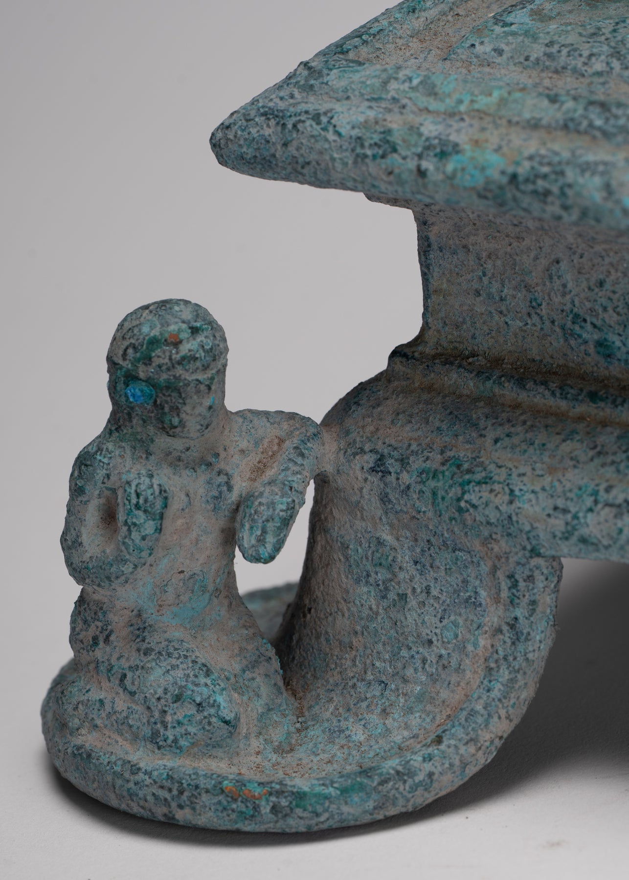 A rare and unusual sculpture both for its completeness, condition and the early period it represents offering a spirited presentation of this important deity.