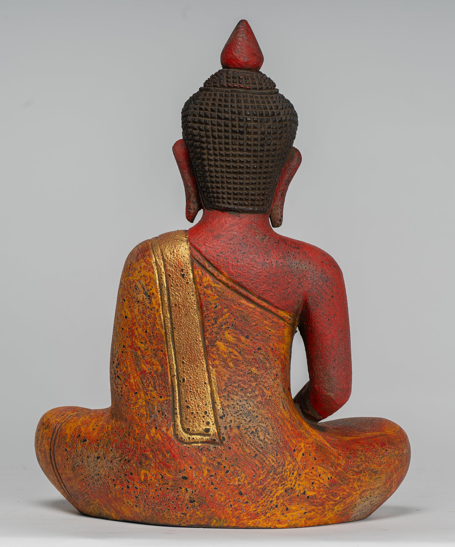 Buddha Sculpture - Antique Khmer Style Wood Seated Buddha Statue Dhyana Meditation Mudra - 27cm/11"