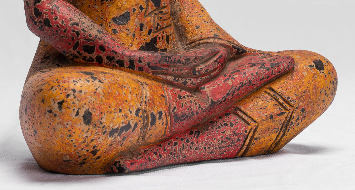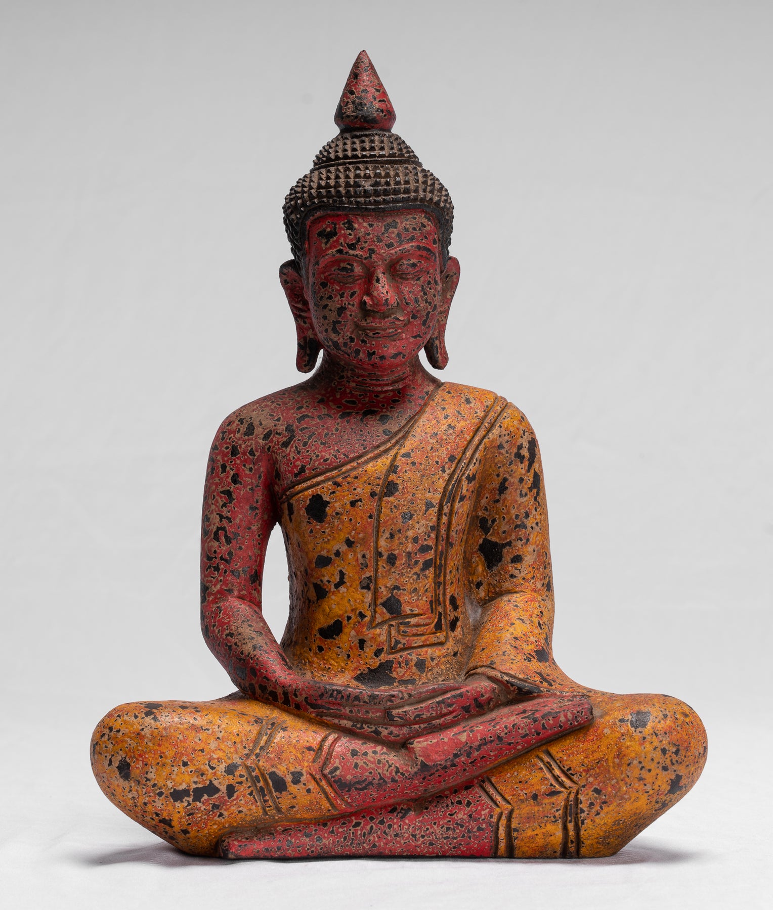 Buddha Sculpture - Antique Khmer Style Wood Seated Buddha Statue Dhyana Meditation Mudra - 32cm/13"
