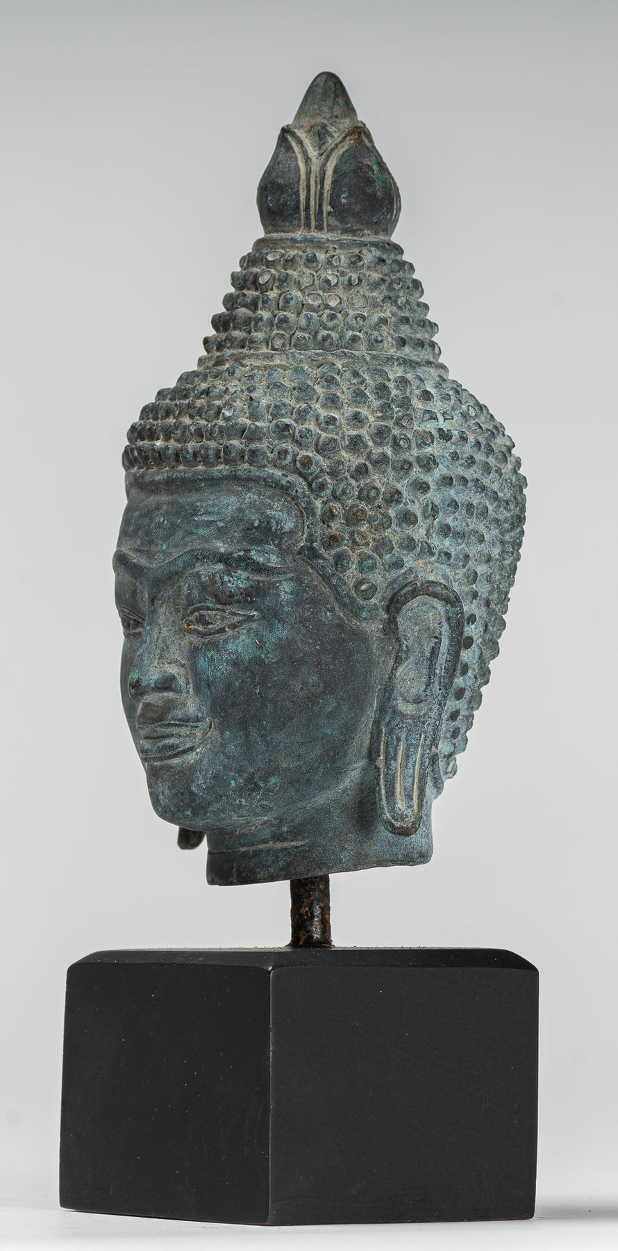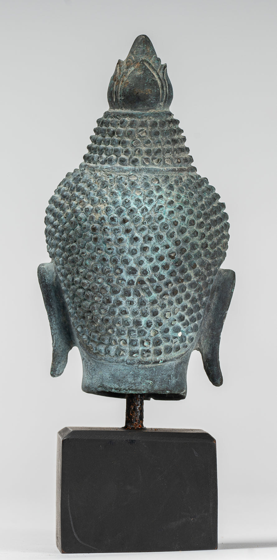 Antique Khmer Style Khmer Lotus Flower Buddha Head - 22cm/9"