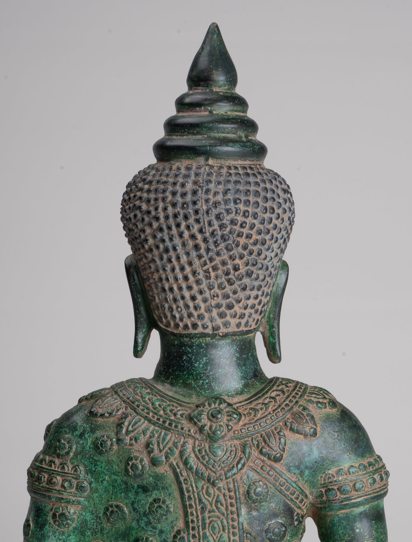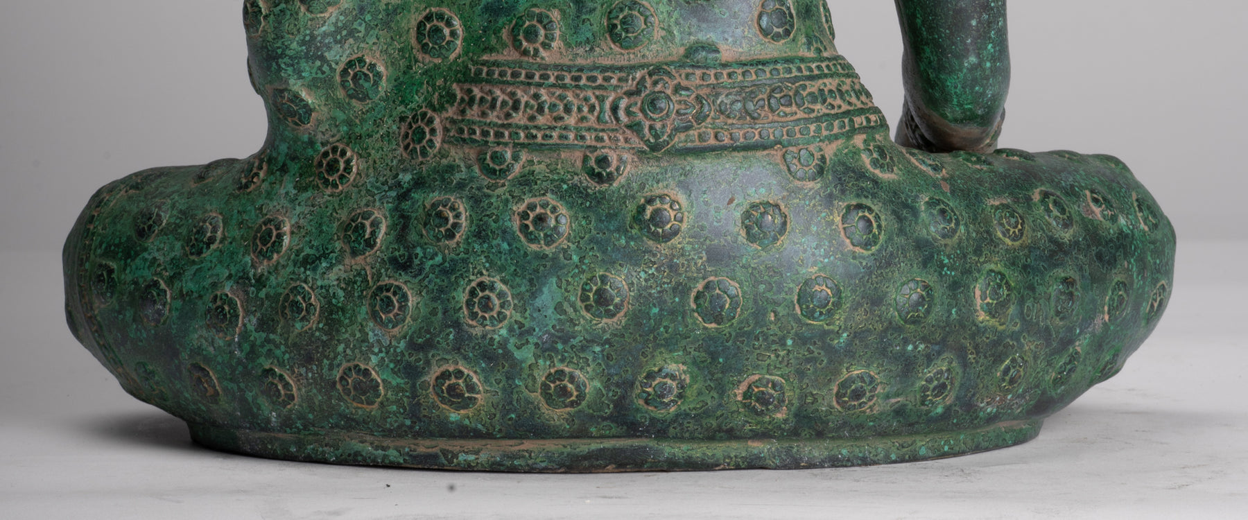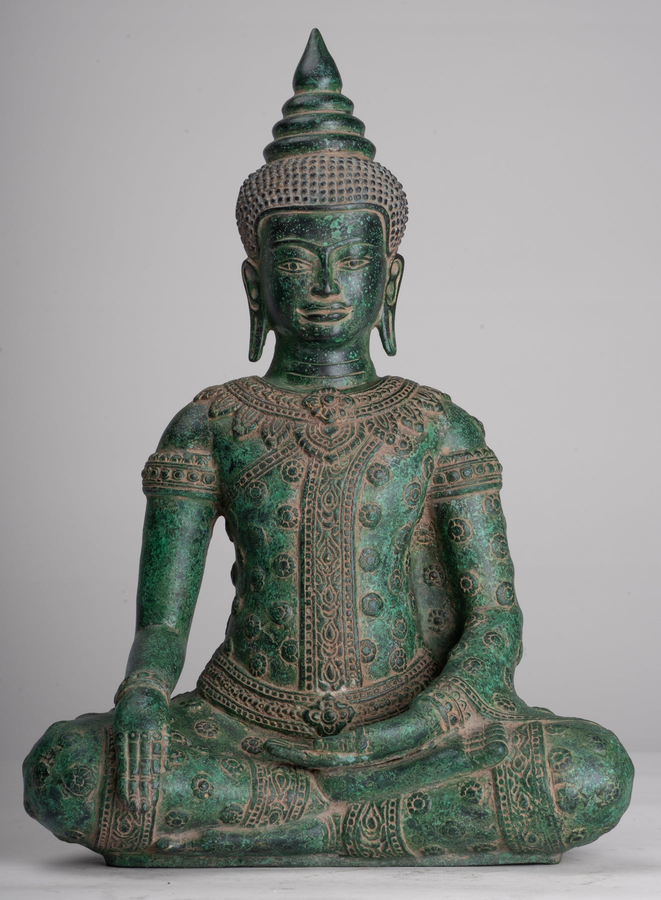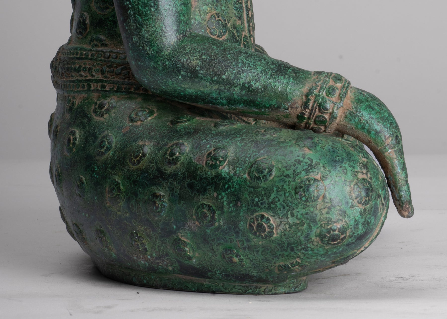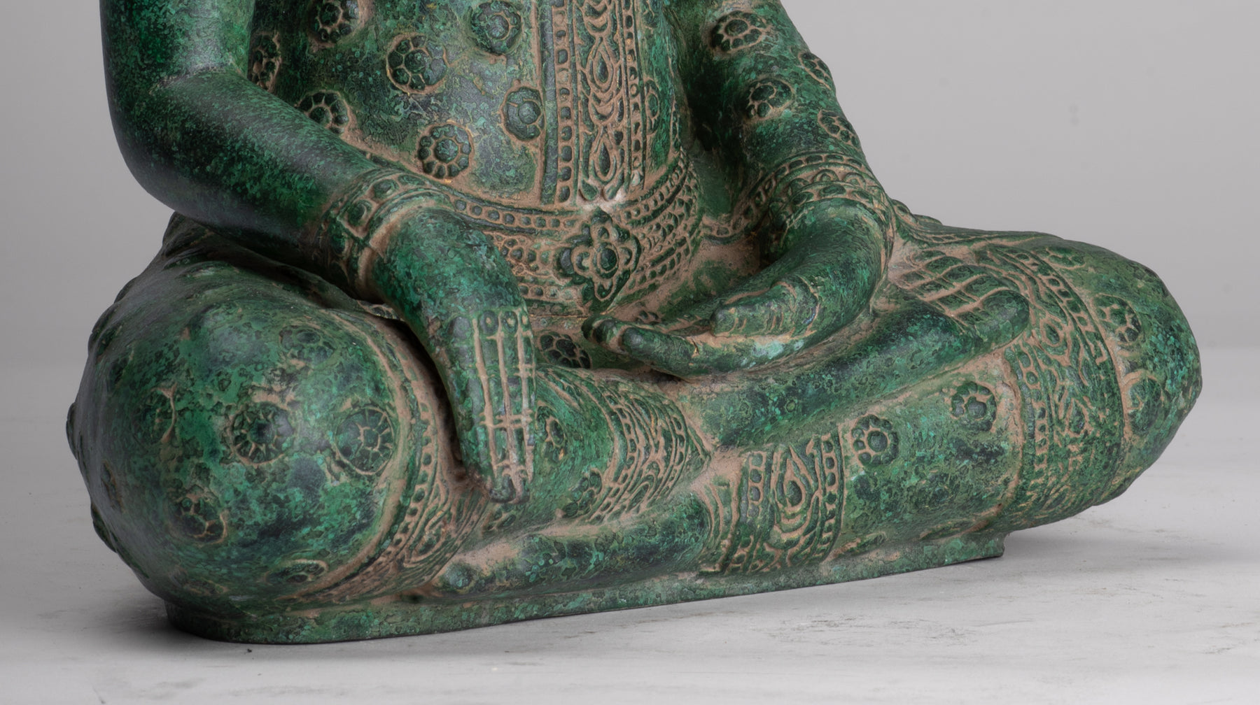Antique Khmer Style Bronze Seated Enlightenment Buddha Statue - 37cm/15"