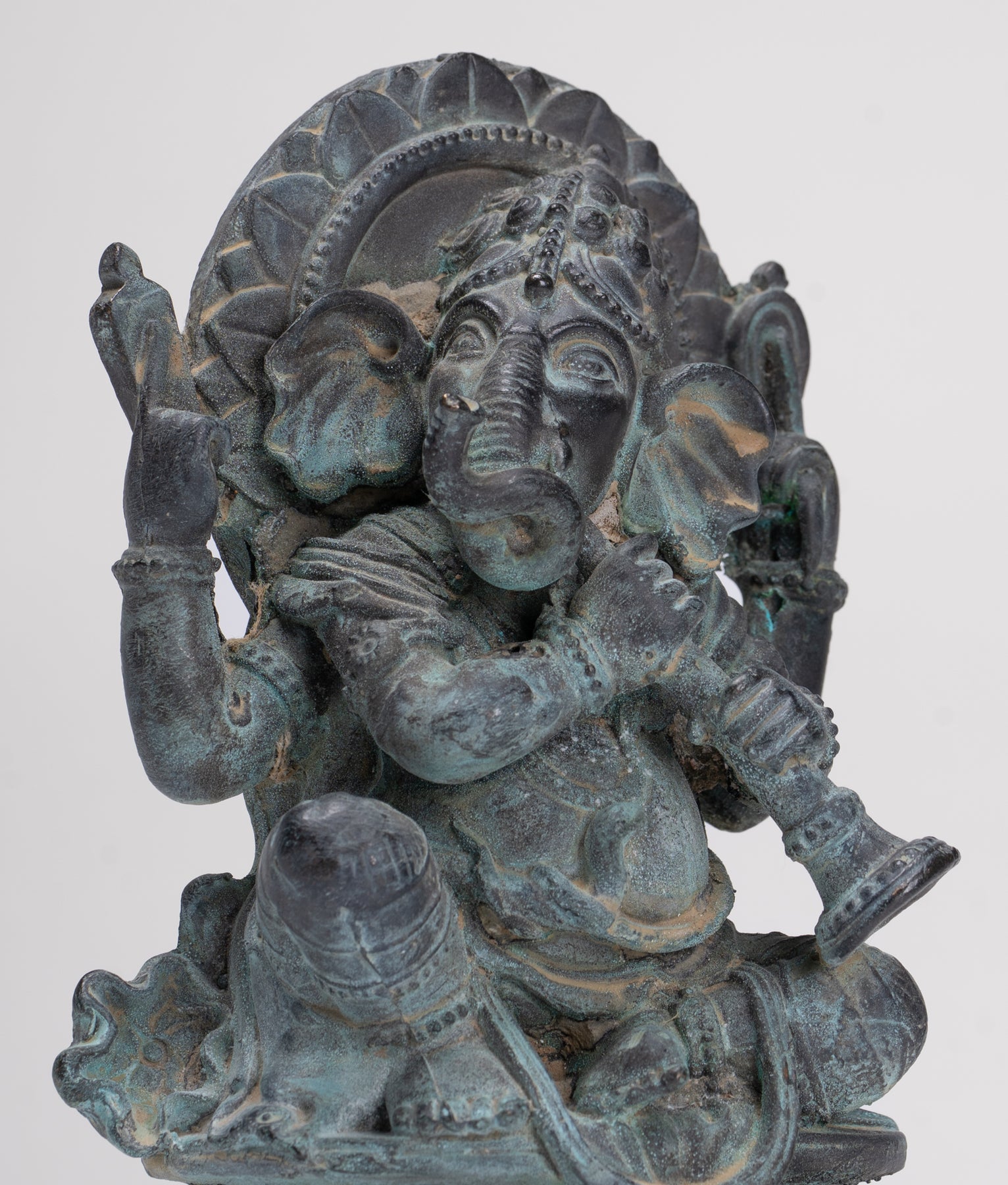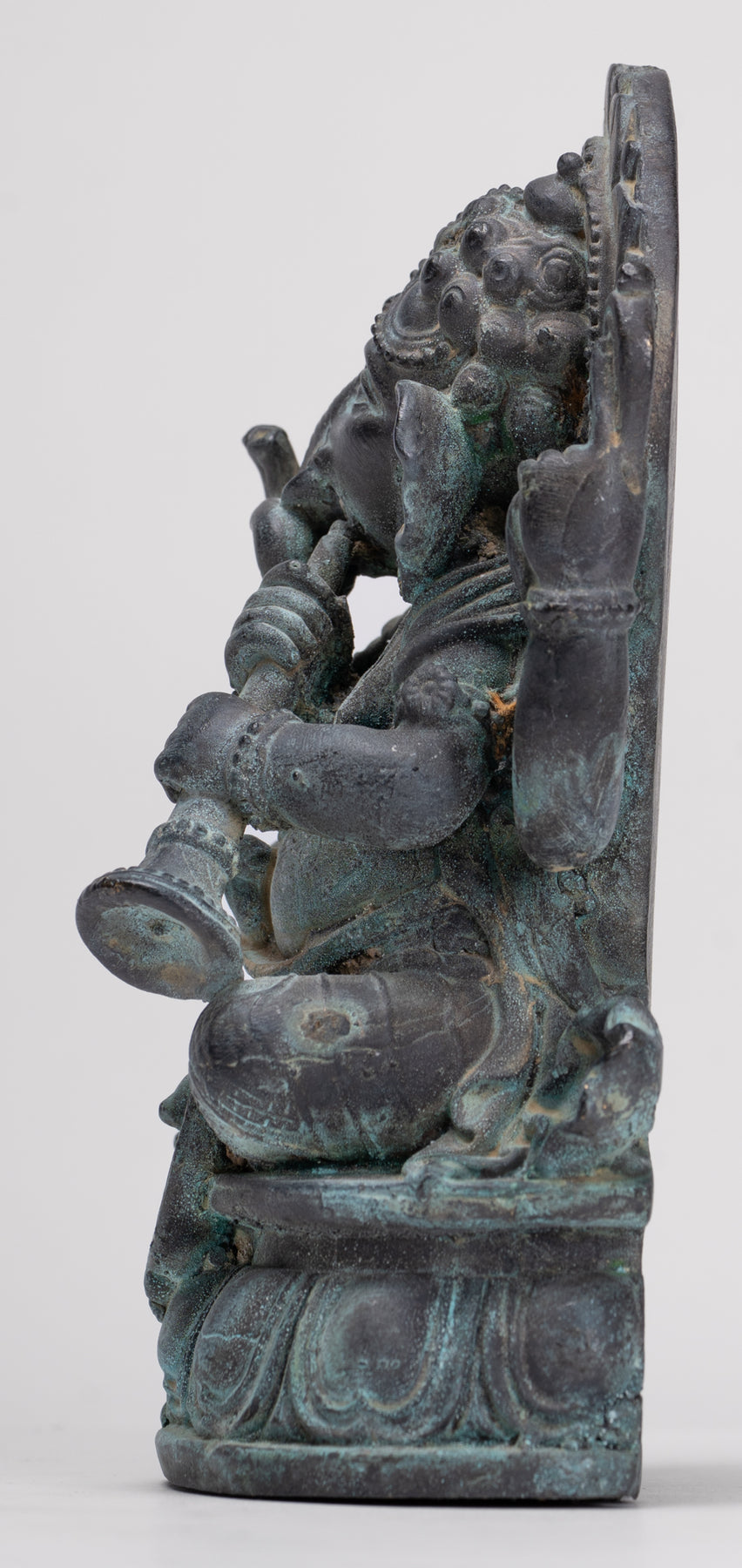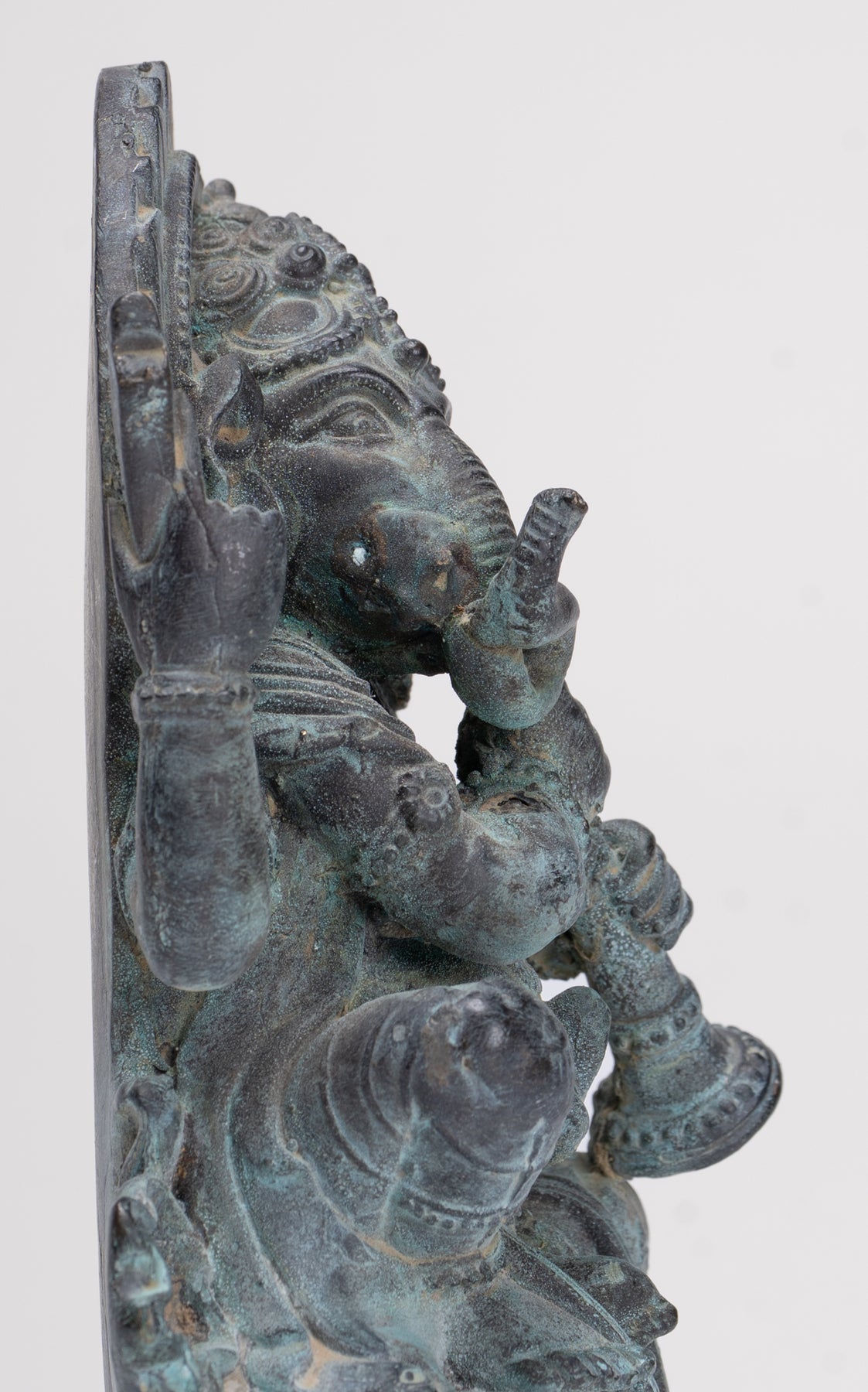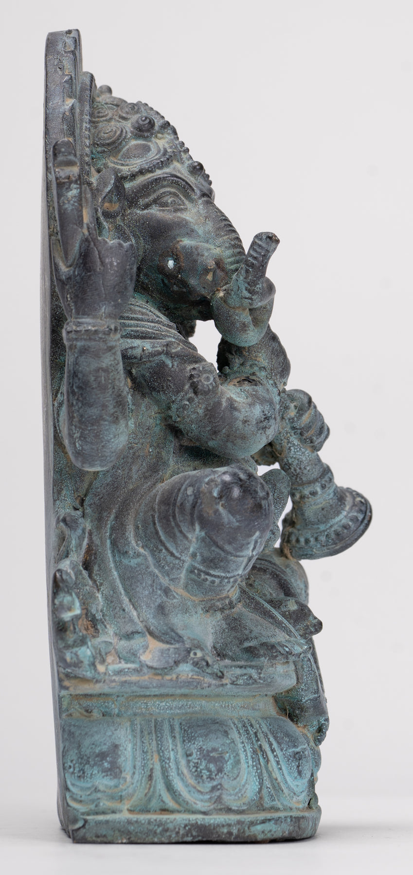 Ganesh - Antique Thai Style Bronze Seated Ganesh Statue - 15.5cm/6"