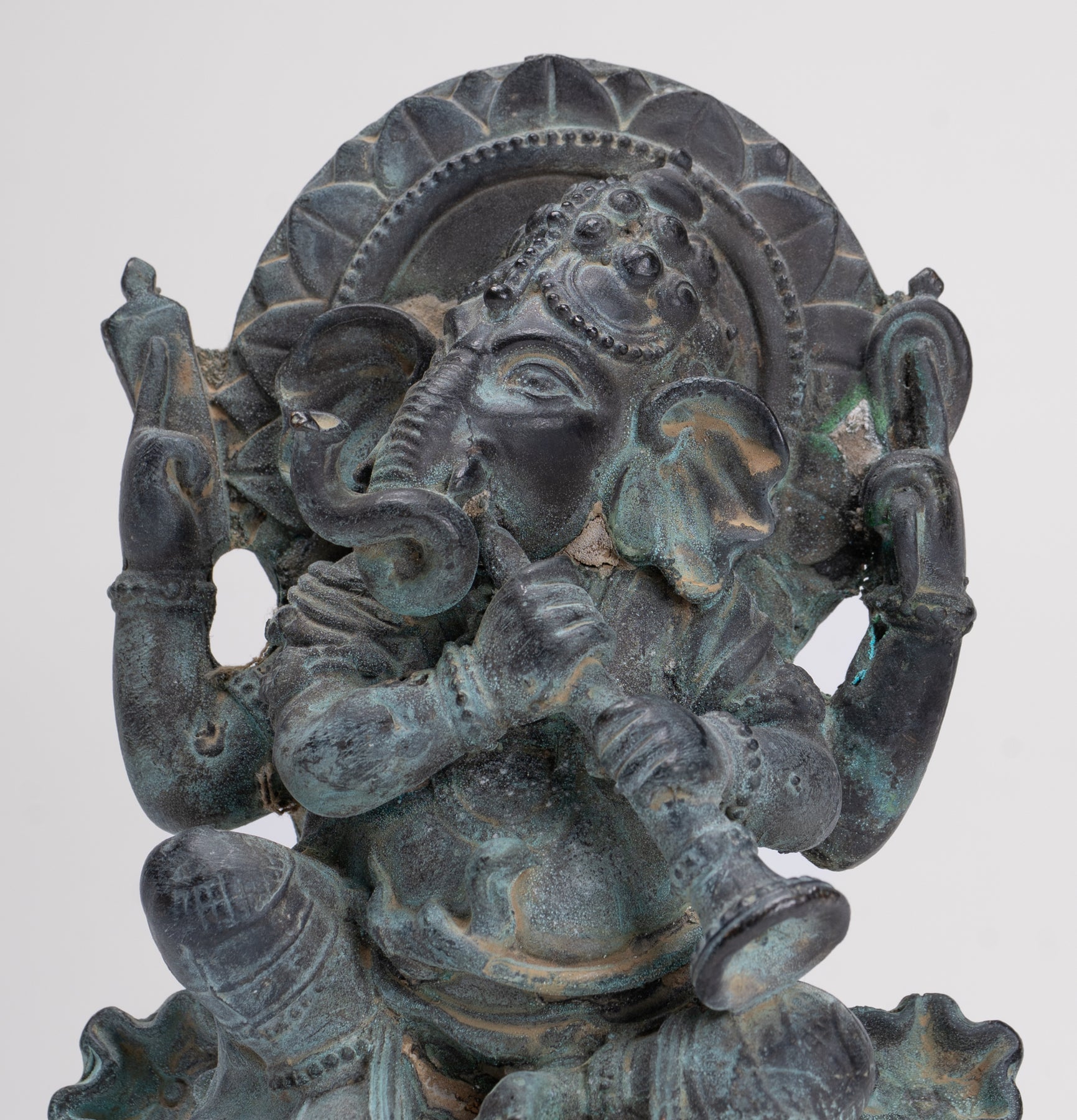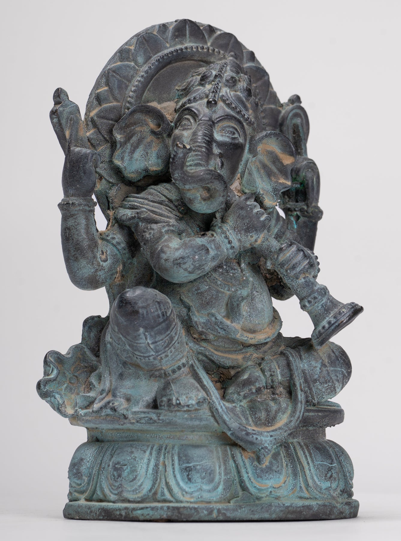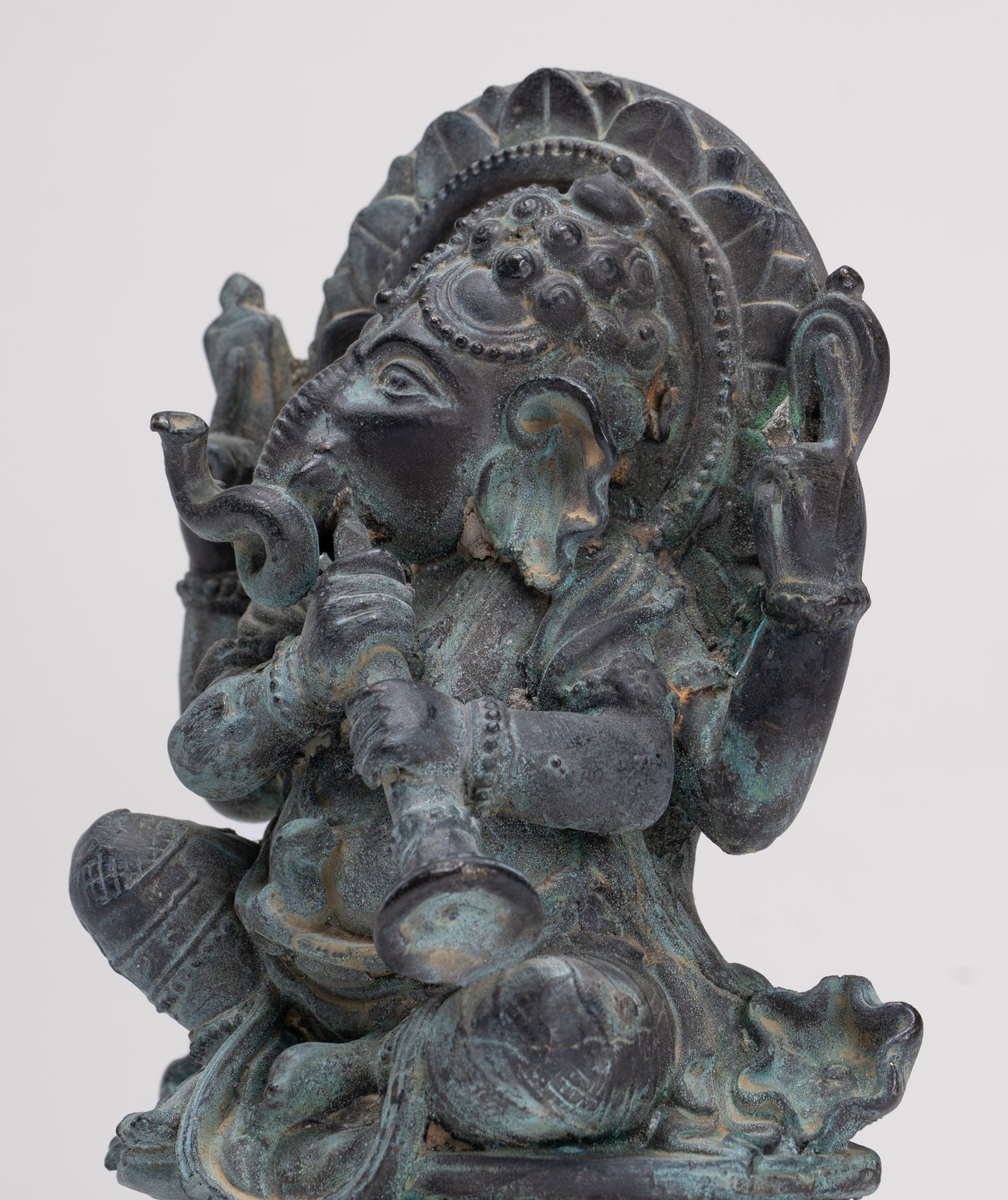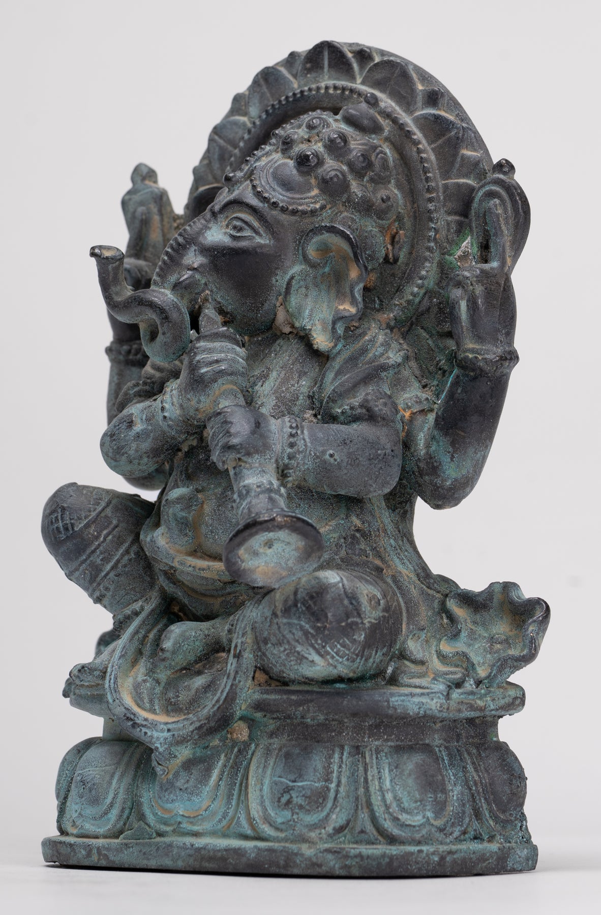 An antique Thai style bronze seated Ganesh playing his Trumpet.