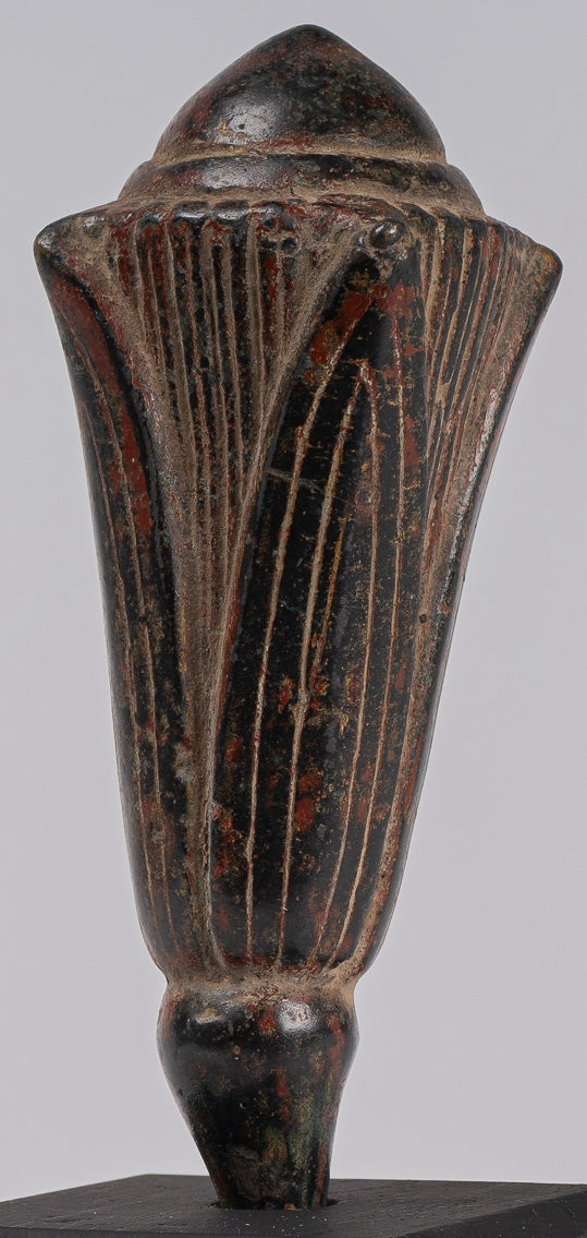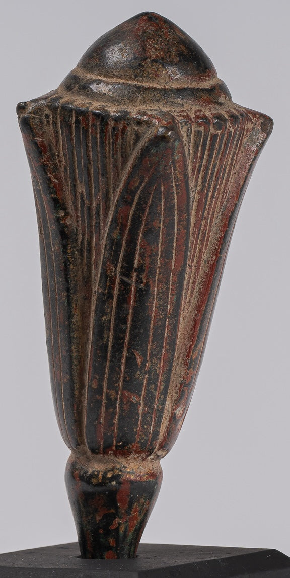 Mounted Antique Khmer Style Bronze Lotus Bud - 22cm/9"