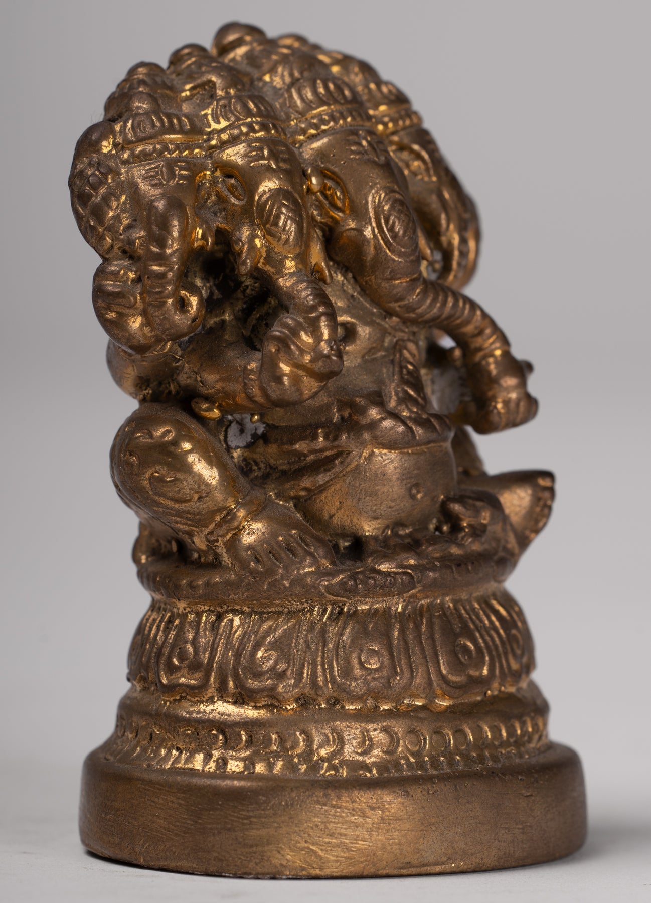 Ganesh - Antique Thai Style Brass Seated Gold Heramba Ganapati Statue - 8cm/3"
