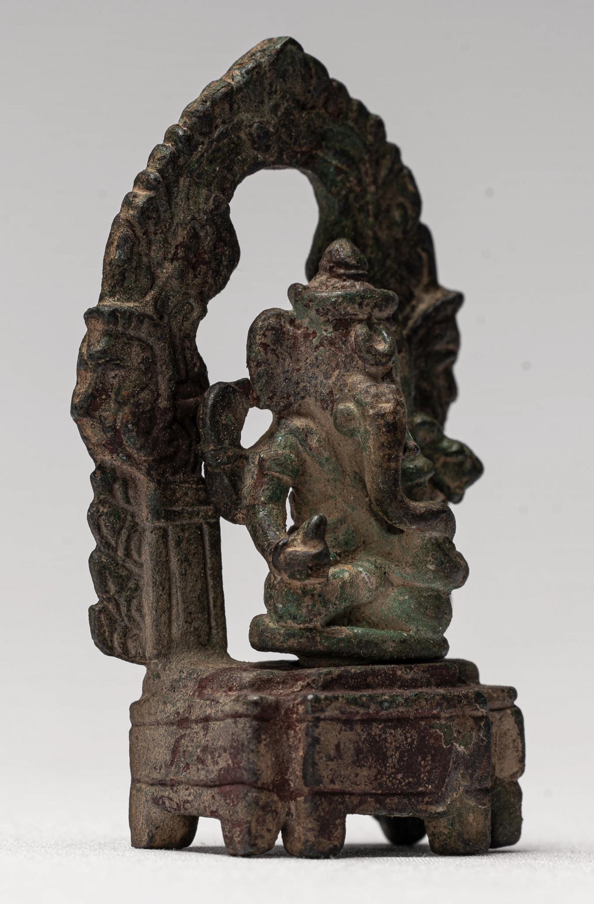 Ganesha Statue - Antique Thai Style Enthroned Bronze Seated Ganesha Statue - 6.5cm/3"