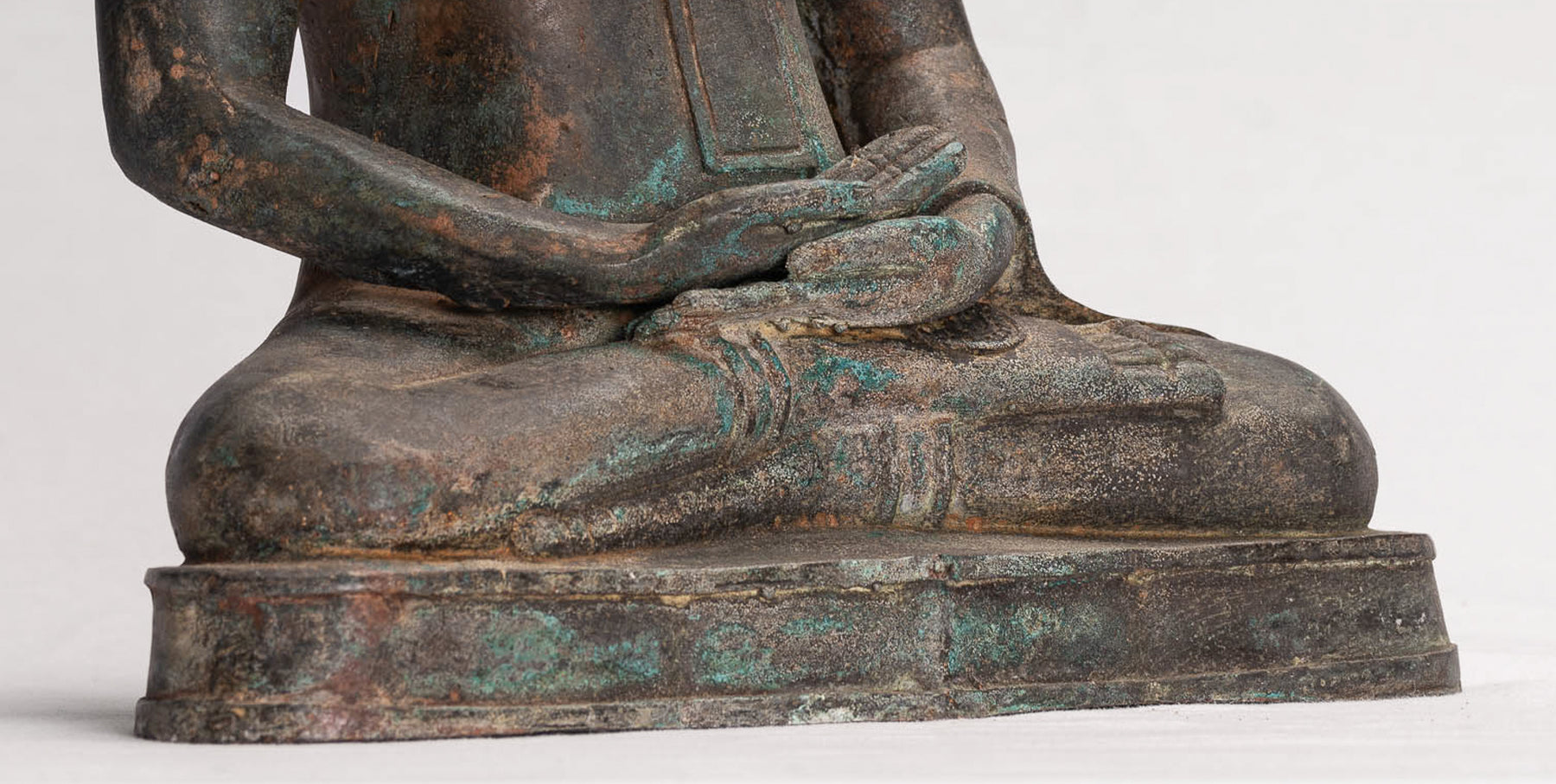 An antique Thai style bronze Dvaravati Meditation Buddha.