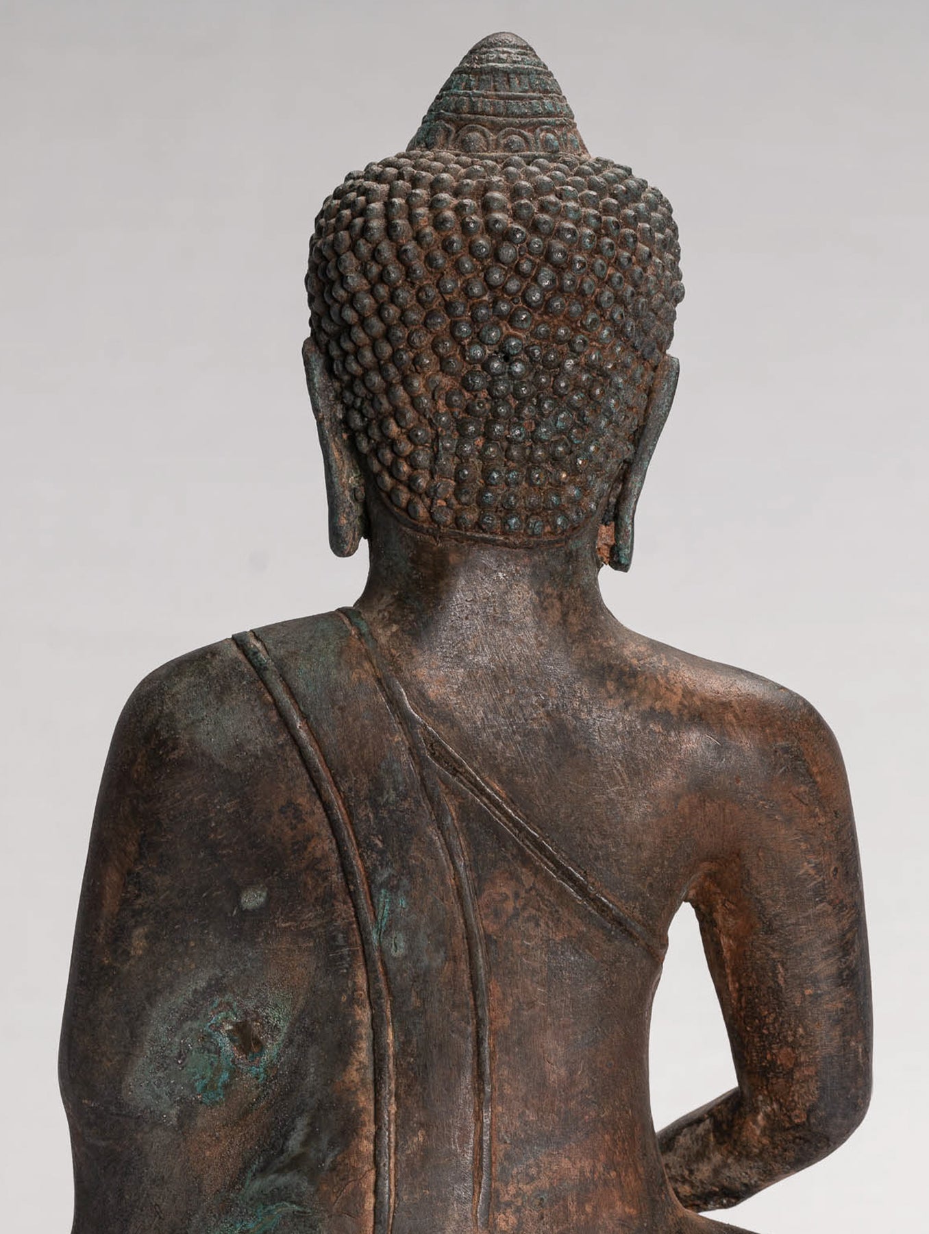 Antique Thai Style Bronze Dvaravati Meditation Buddha Statue - 29cm/12"