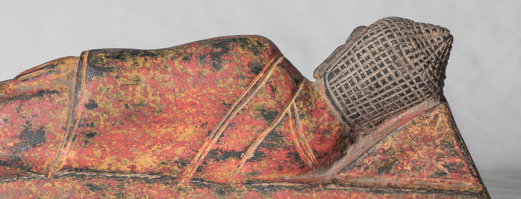 • Antique Thai Style Wood Reclining Nirvana Buddha Statue - 30cm/12" Long