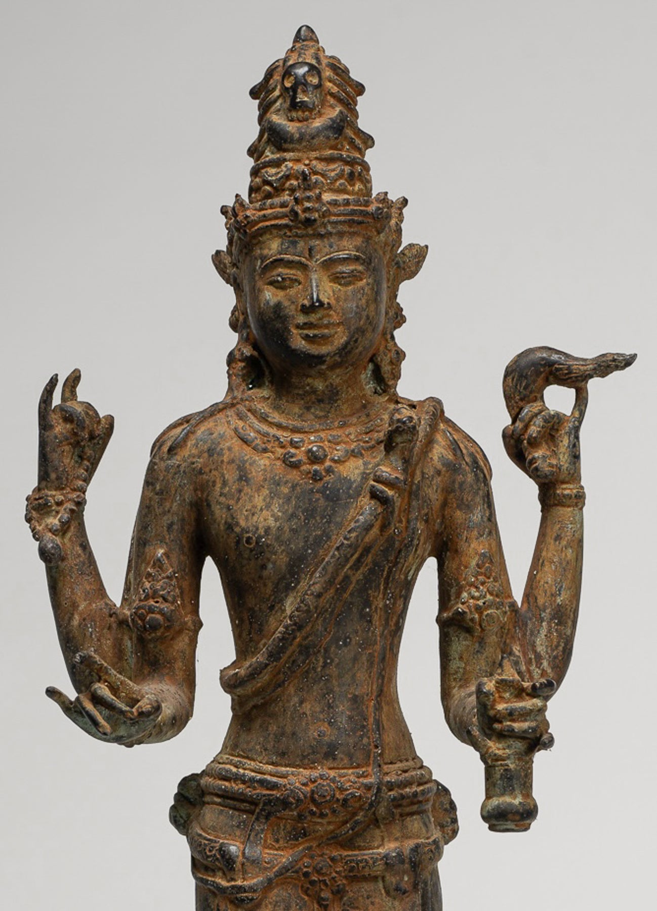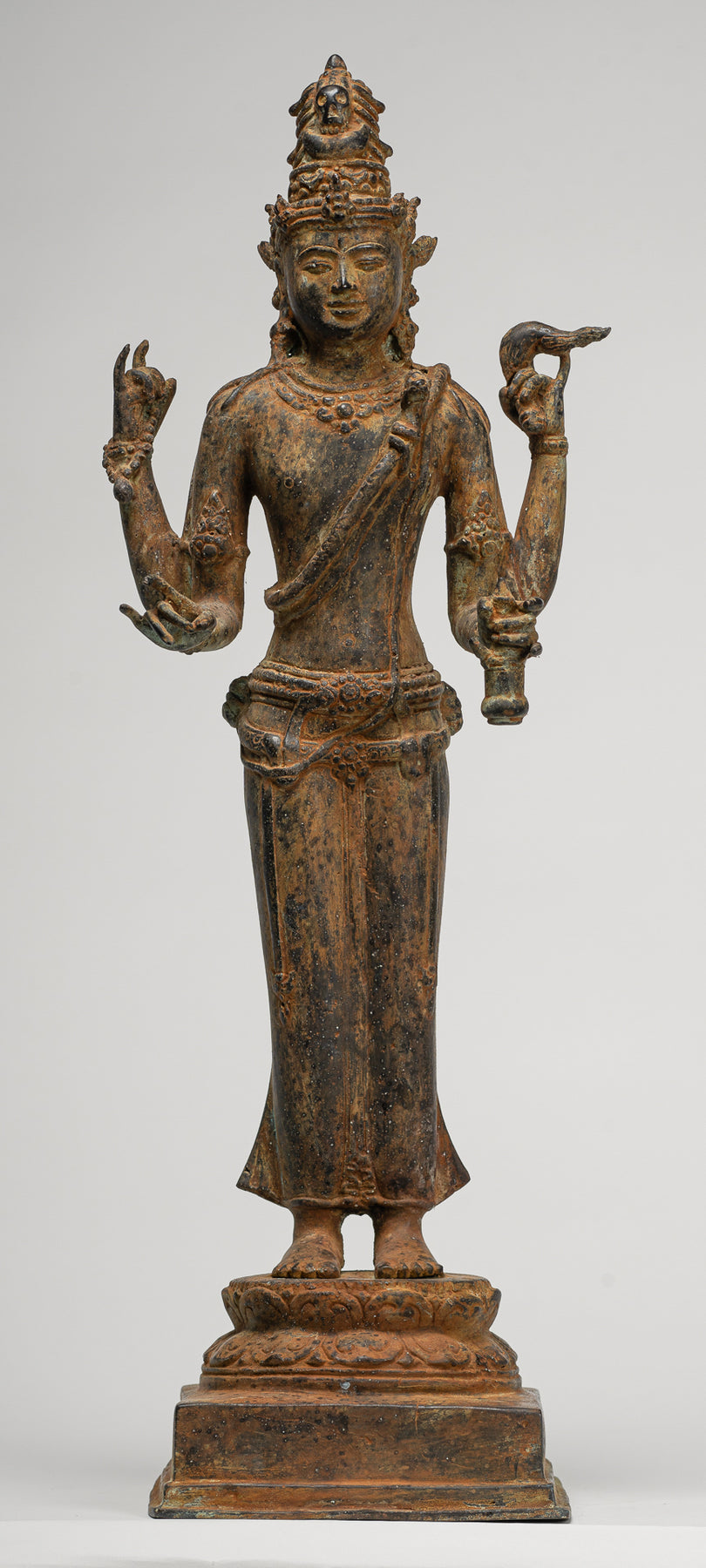 Shiva Statue - Antique Indonesian Style Bronze Javanese Standing 4-Arm Shiva Statue - 52cm/21"