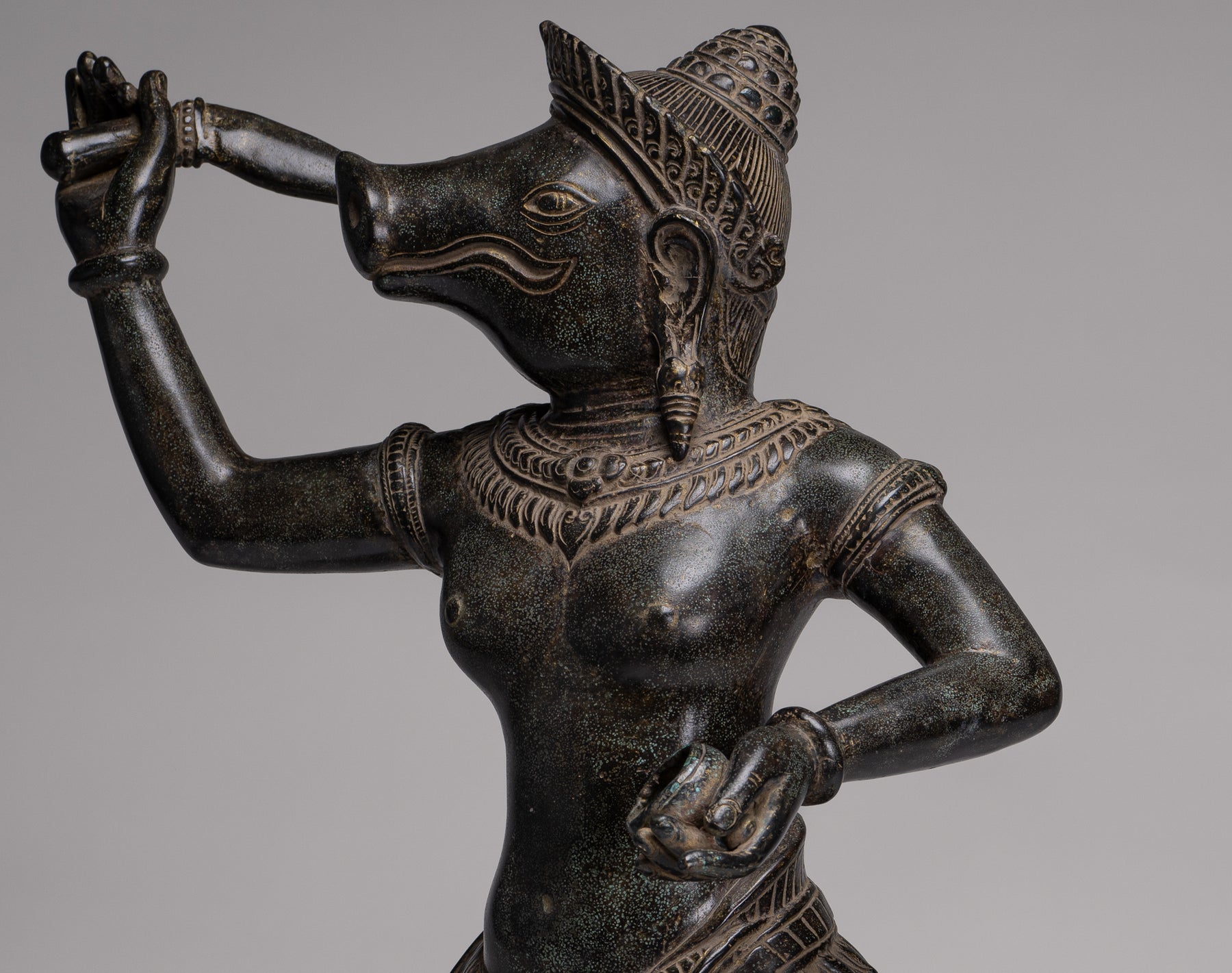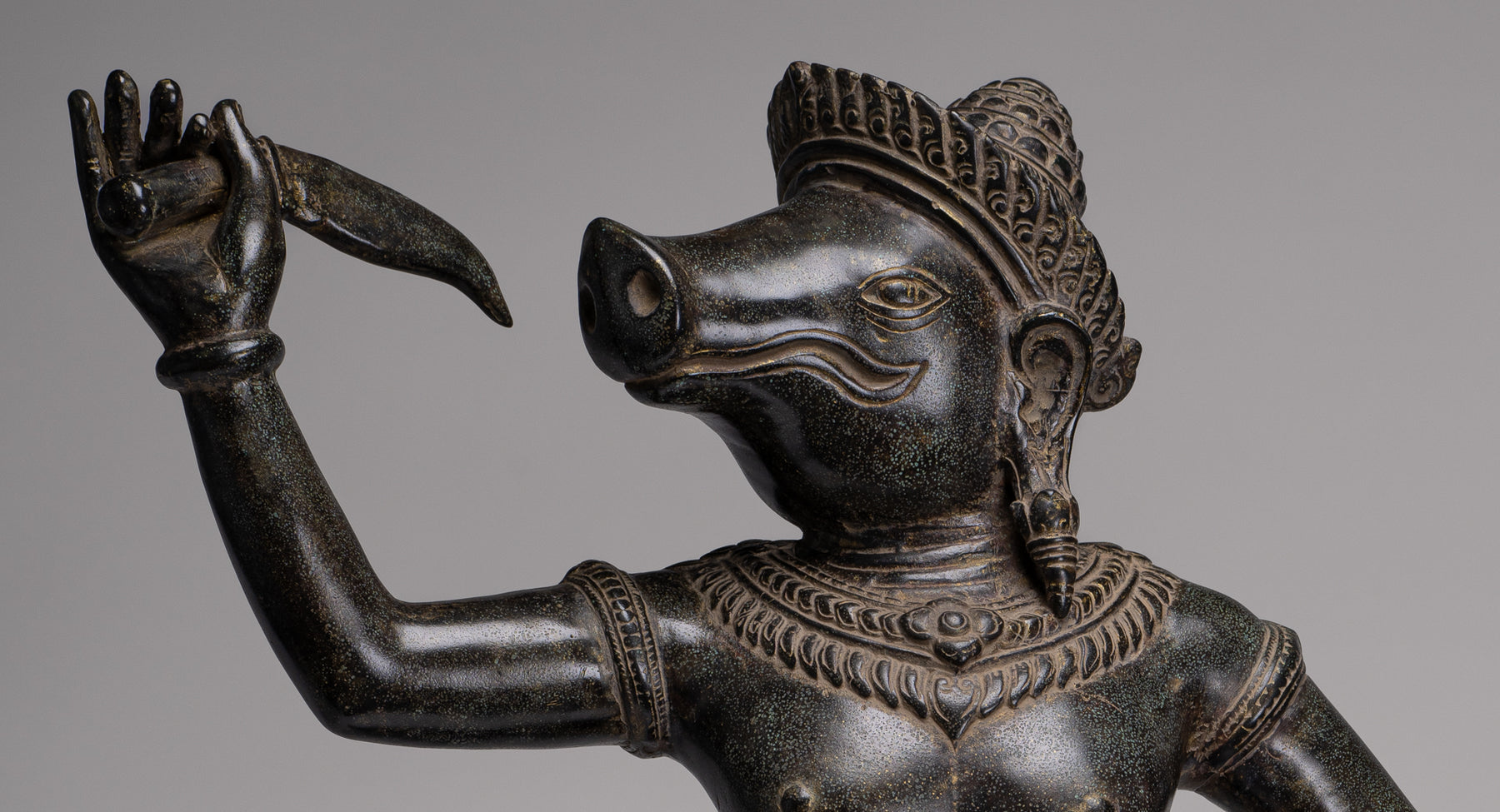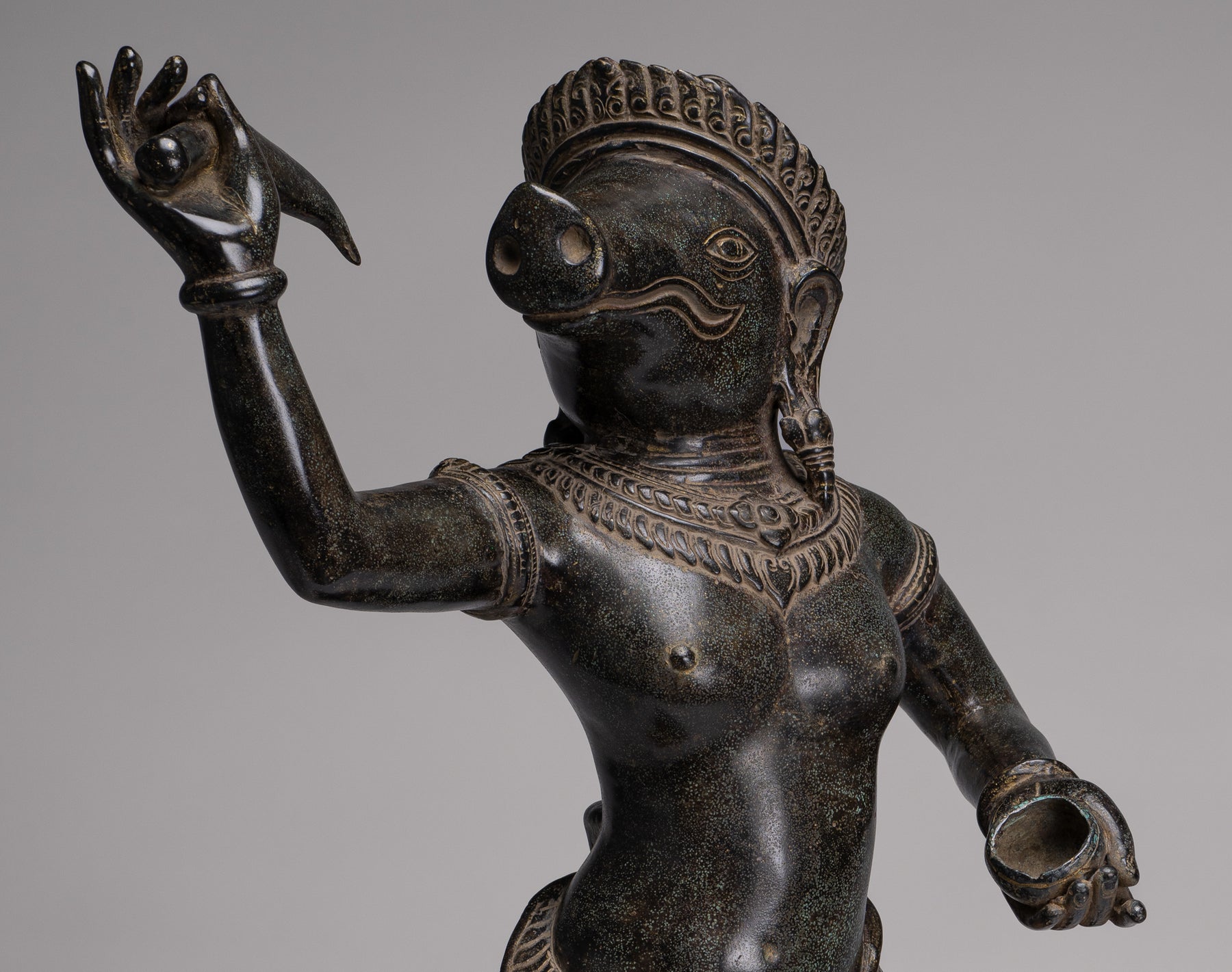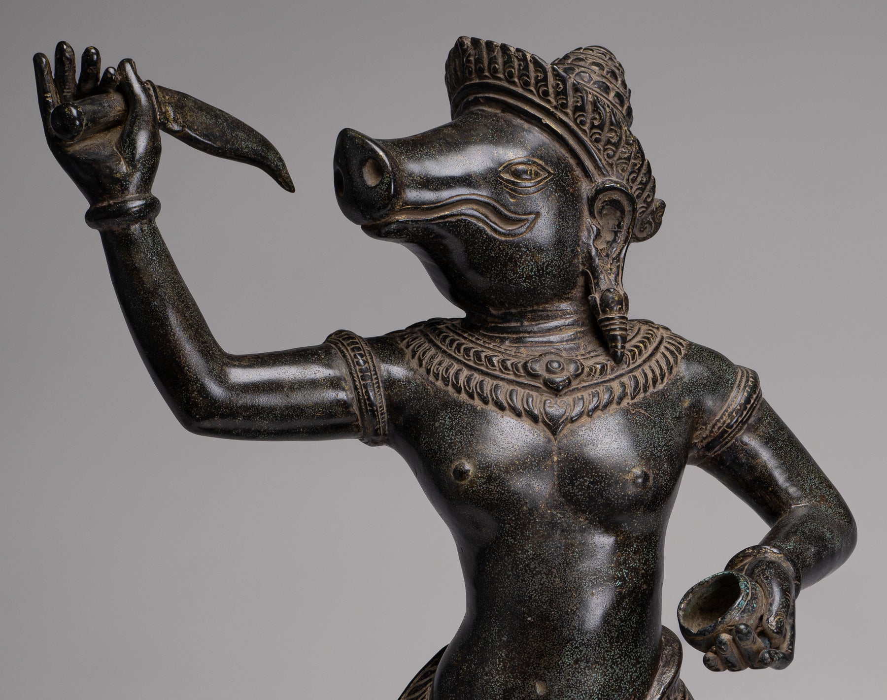 An antique Angkor Wat style Khmer bronze 2-arm sculpture of Varaha.