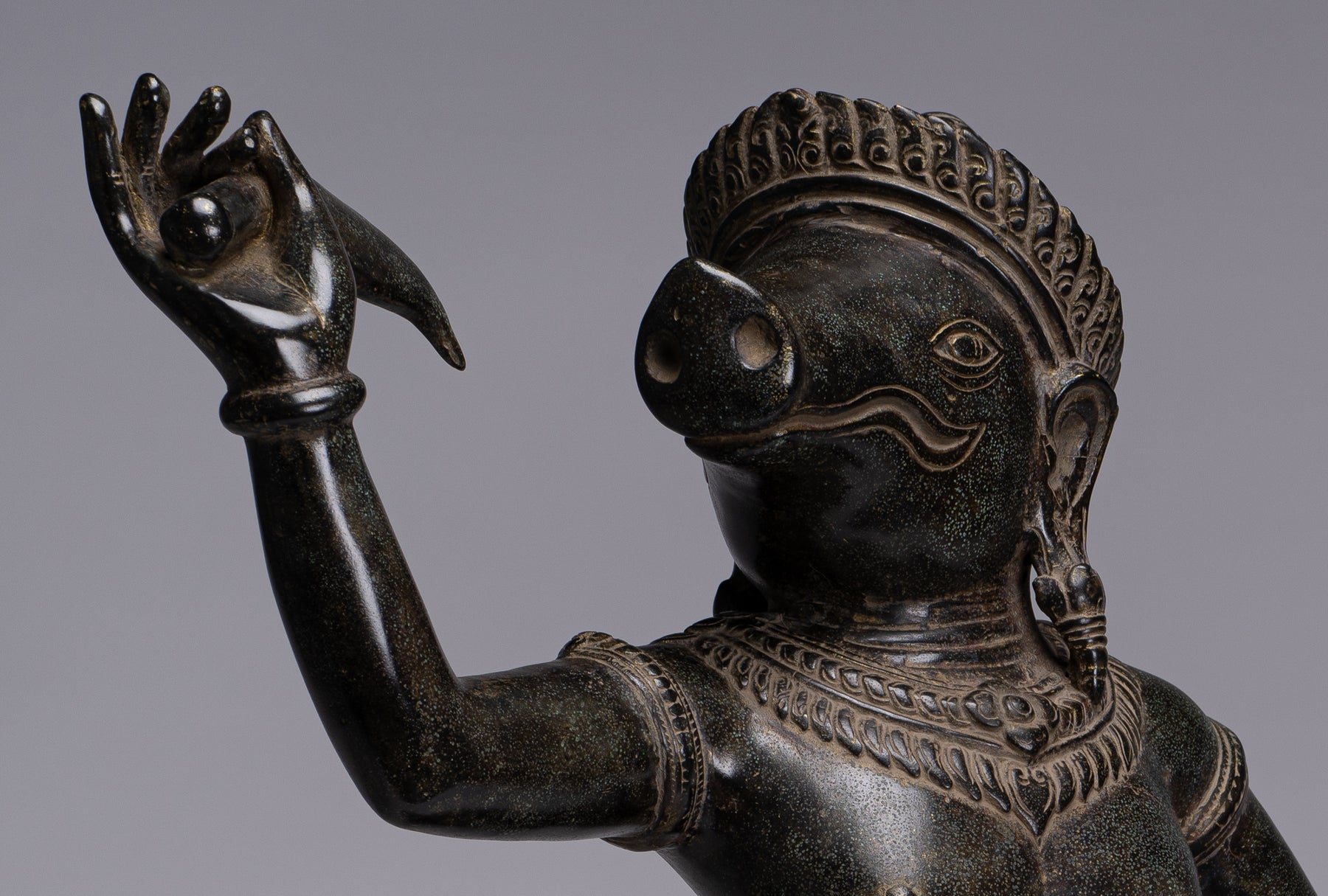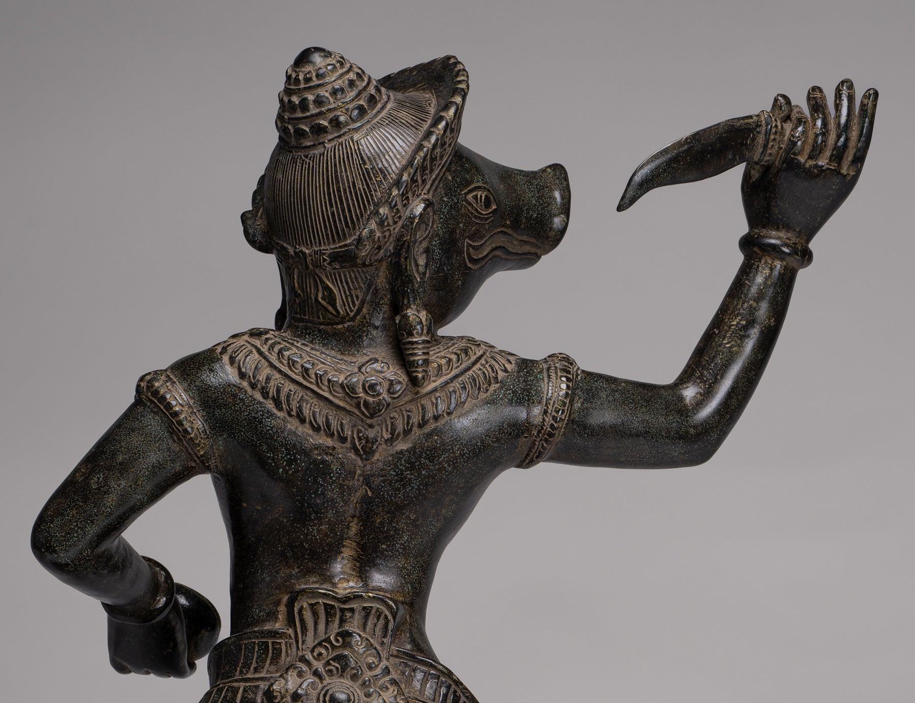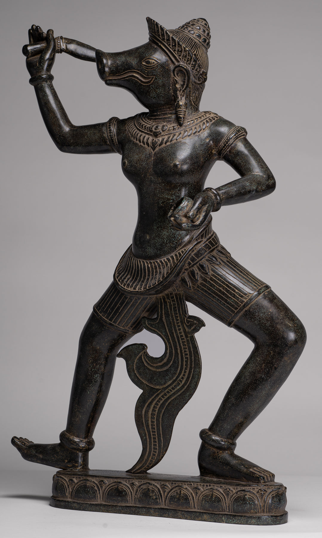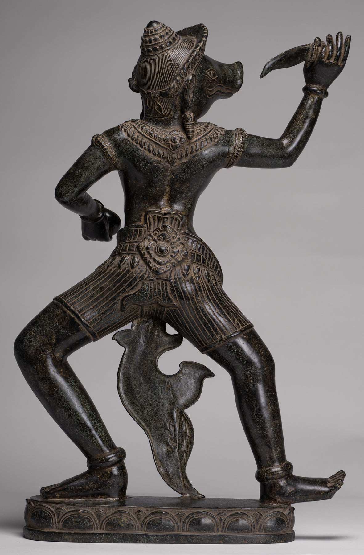 An antique Angkor Wat style Khmer bronze 2-arm sculpture of Varaha.