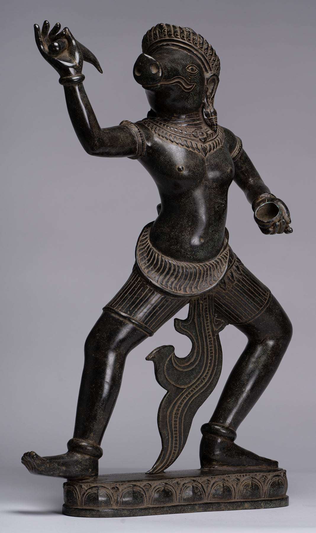 Varaha Statue - Antique Khmer Style Standing Bronze Varaha Boar Avatar of Vishnu - 62cm/25"