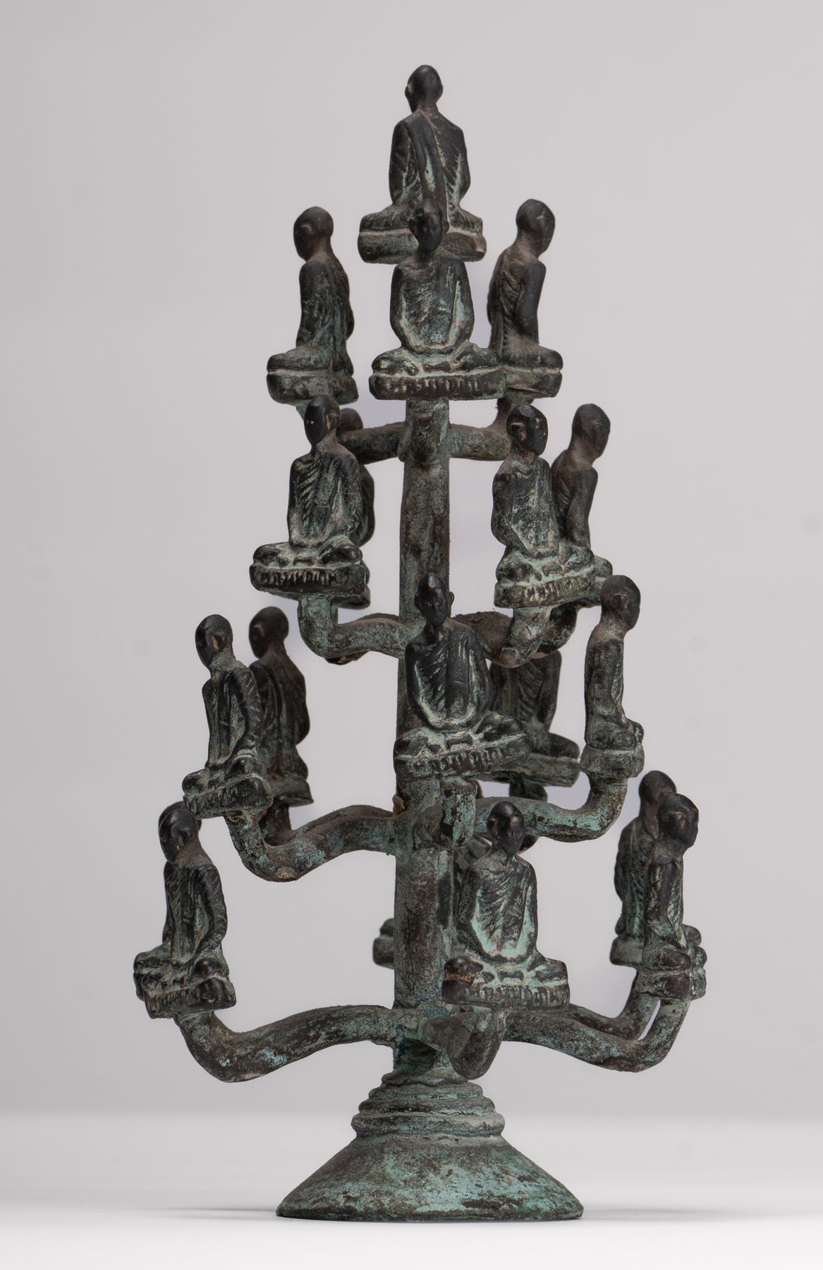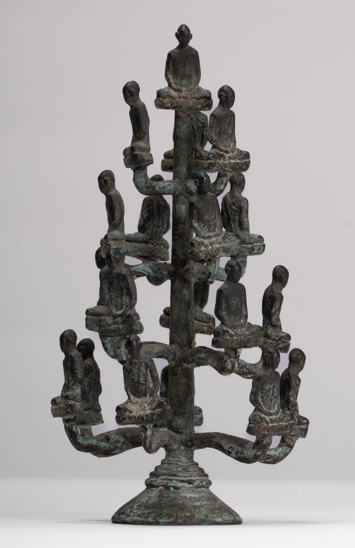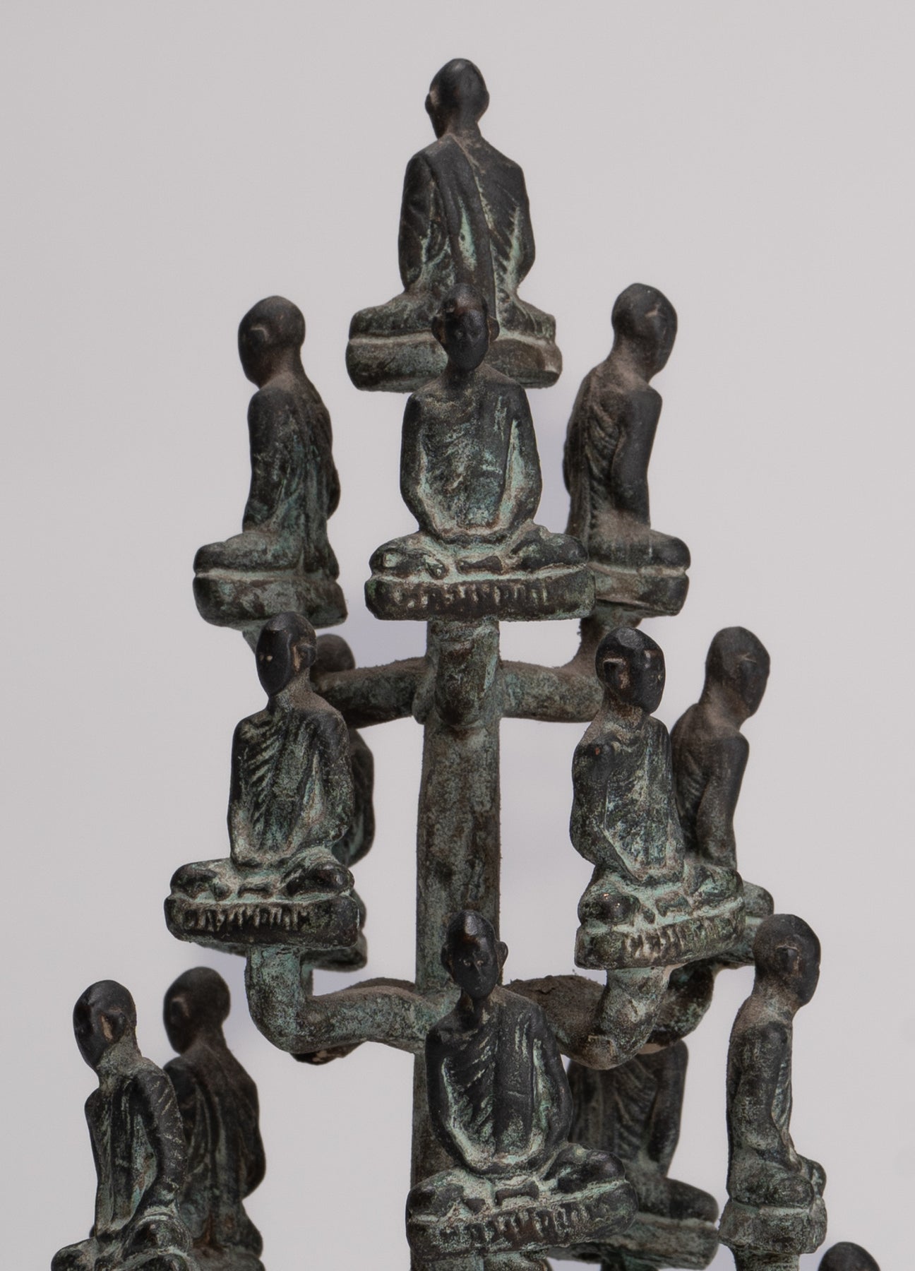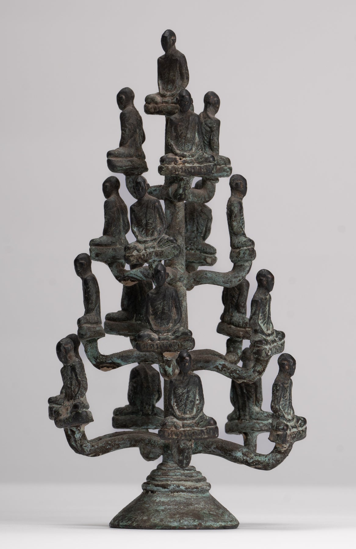 Antike thailändische sitzende Bronze -Meditationsmönche oder Jünger.