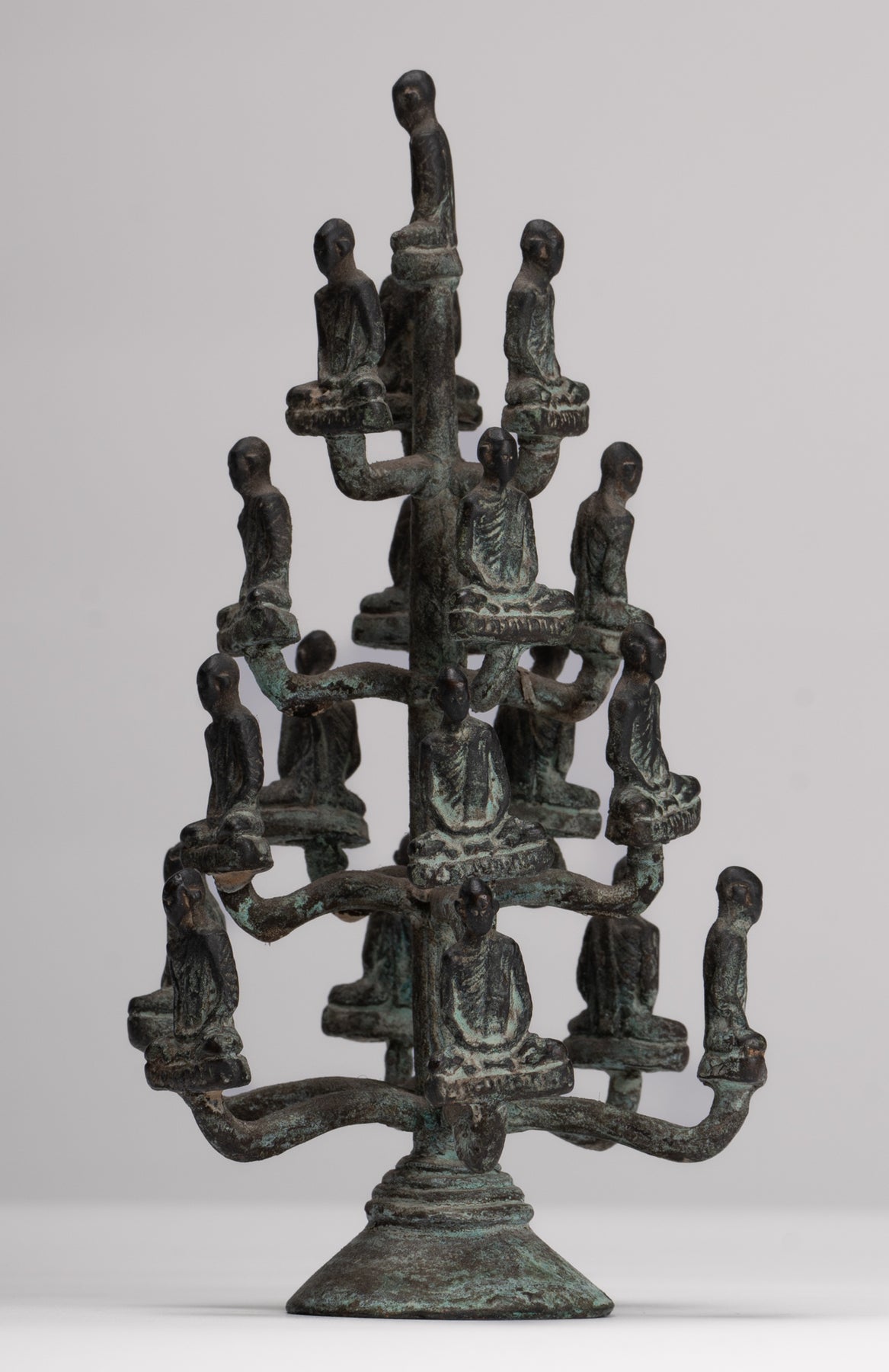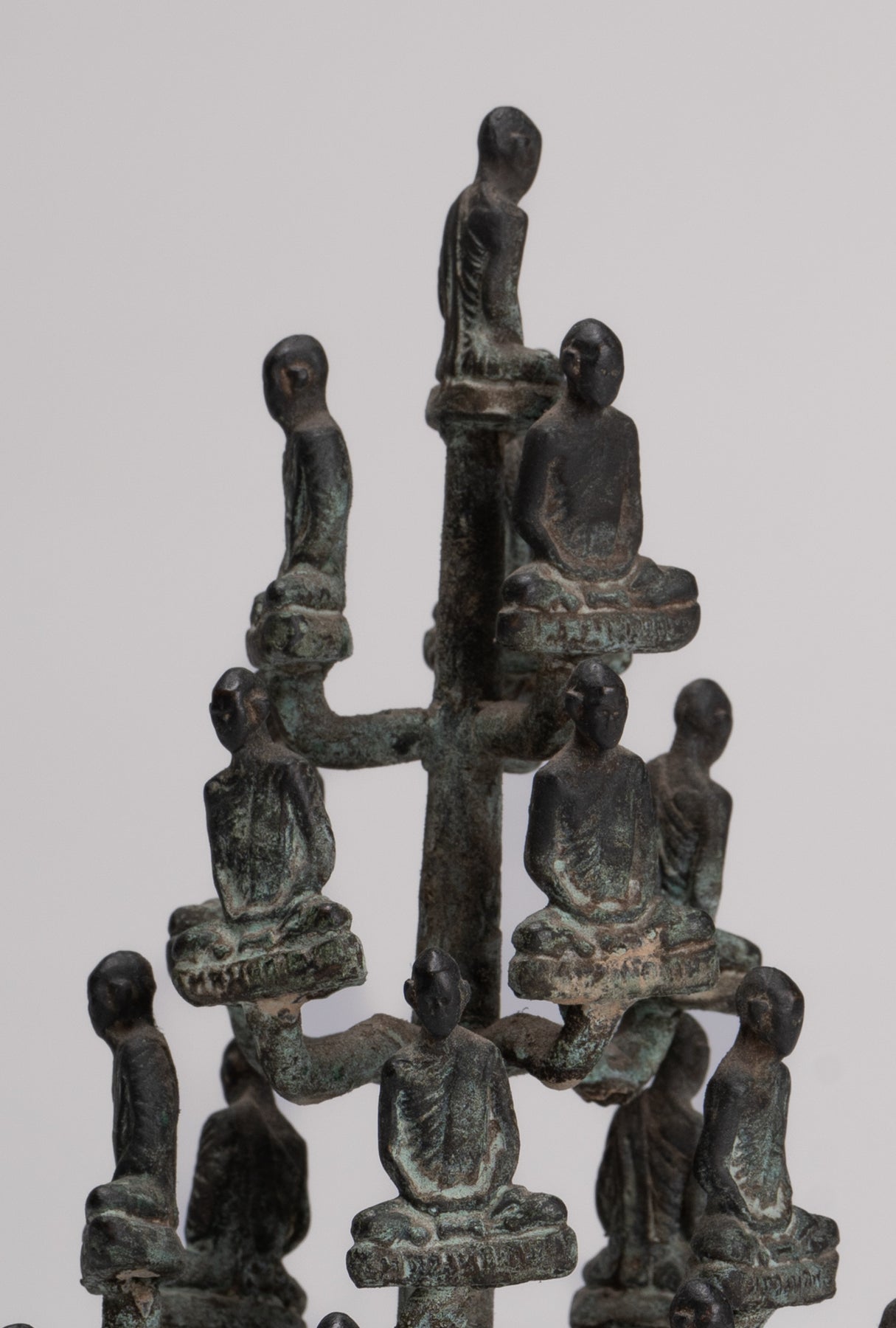 DIsciple Sculpture - Antique Thai Style Bronze Seated Meditation Monk Statues - 18cm/7"